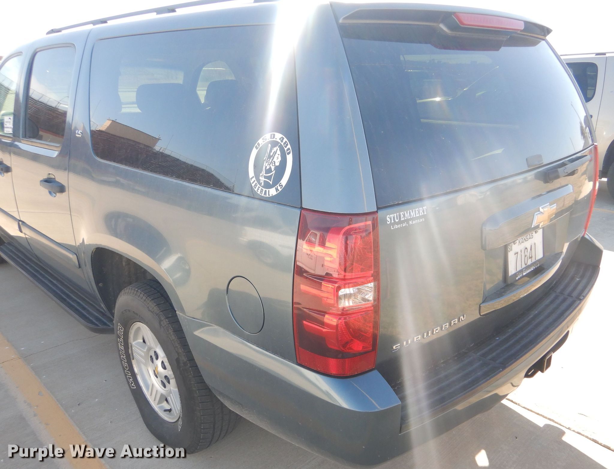 2008 Chevrolet Suburban 1500 LS SUV. 204,098 miles on odometer, 5.3L V8 OHV 16V FFV gas engine, Automatic transmission, AC and heat, Cruise, Power windows, locks, and seat, 265/70R17 tires, Check engine light on. Kansas title. 1GNFC16048R178913. Liberal School Bus Barn. 1703 W 4th St. Liberal, KS 67901