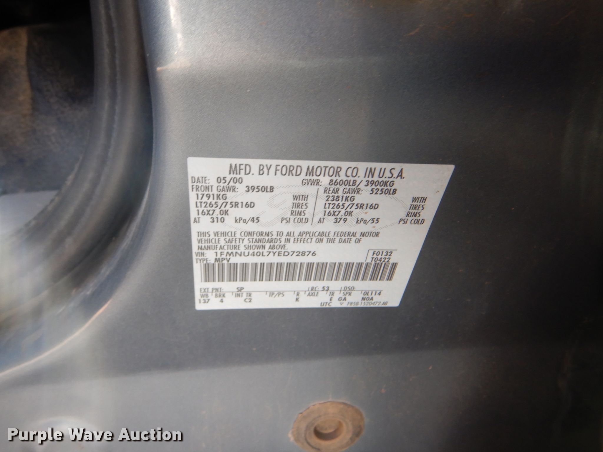 Purple Wave is selling a used Passenger Vehicle in Kansas. This item is a 2000 Ford Excursion SUV with the following: 189,429 miles on odometer, 5.4L V8 SOHC 16V gas engine, Automatic transmission, AC and heat, Cruise, Power windows and locks, 265/75R16 tires, Ignition column locked, Unit will not start or move, Unknown operating condition