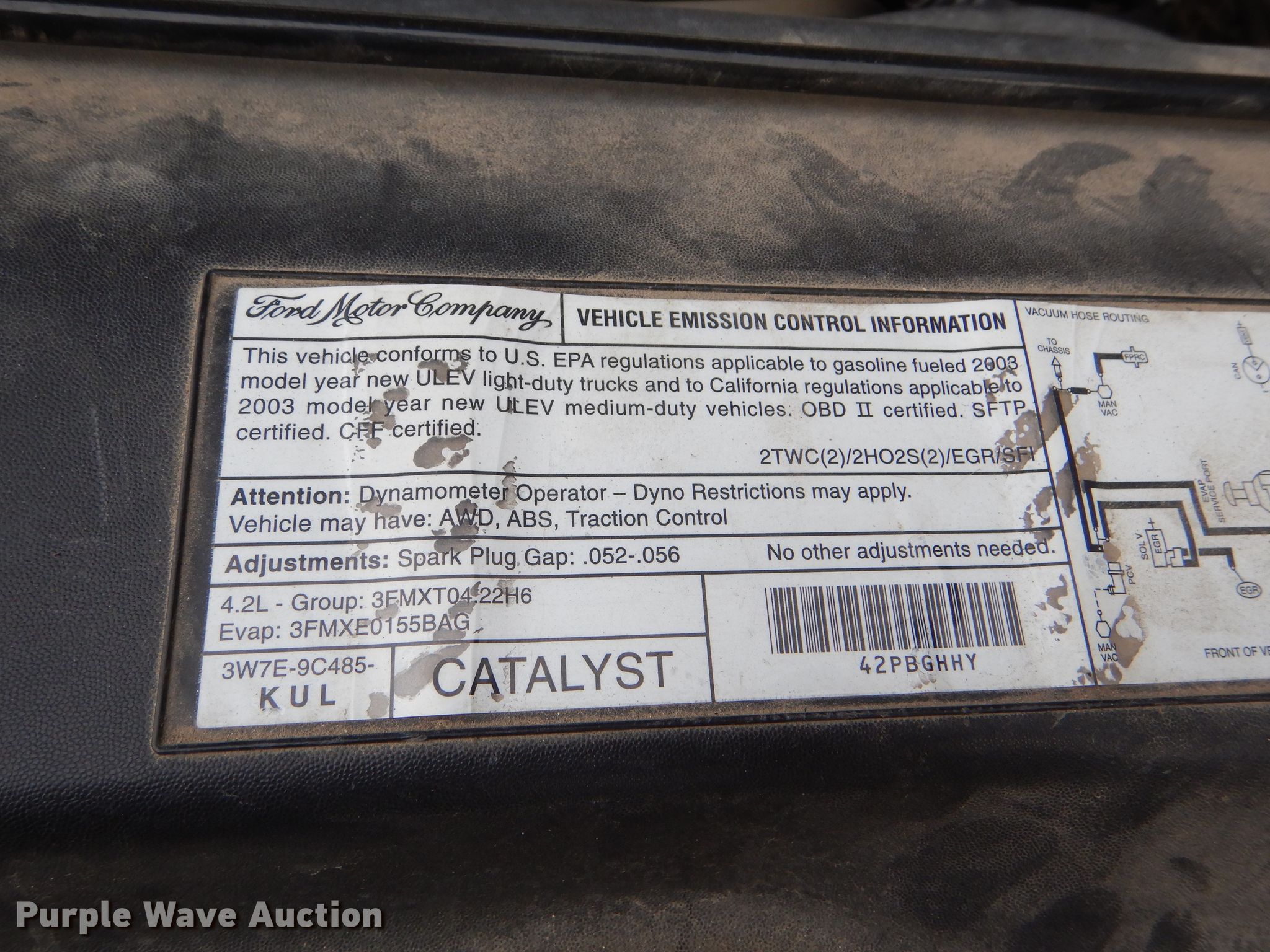 Purple Wave is selling a used 1/2 Ton Pickup or Van in Kansas. This item is a 2003 Ford F150 XL pickup truck with the following: 60,714 miles on odometer, 4.2L V6 OHV 12V gas engine, Automatic transmission, AC and heat, Cruise, 255/70R16 tires, Transmission issues, Non-operational unit
