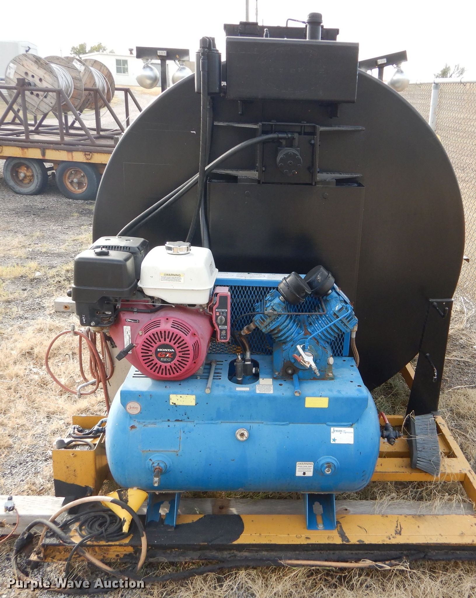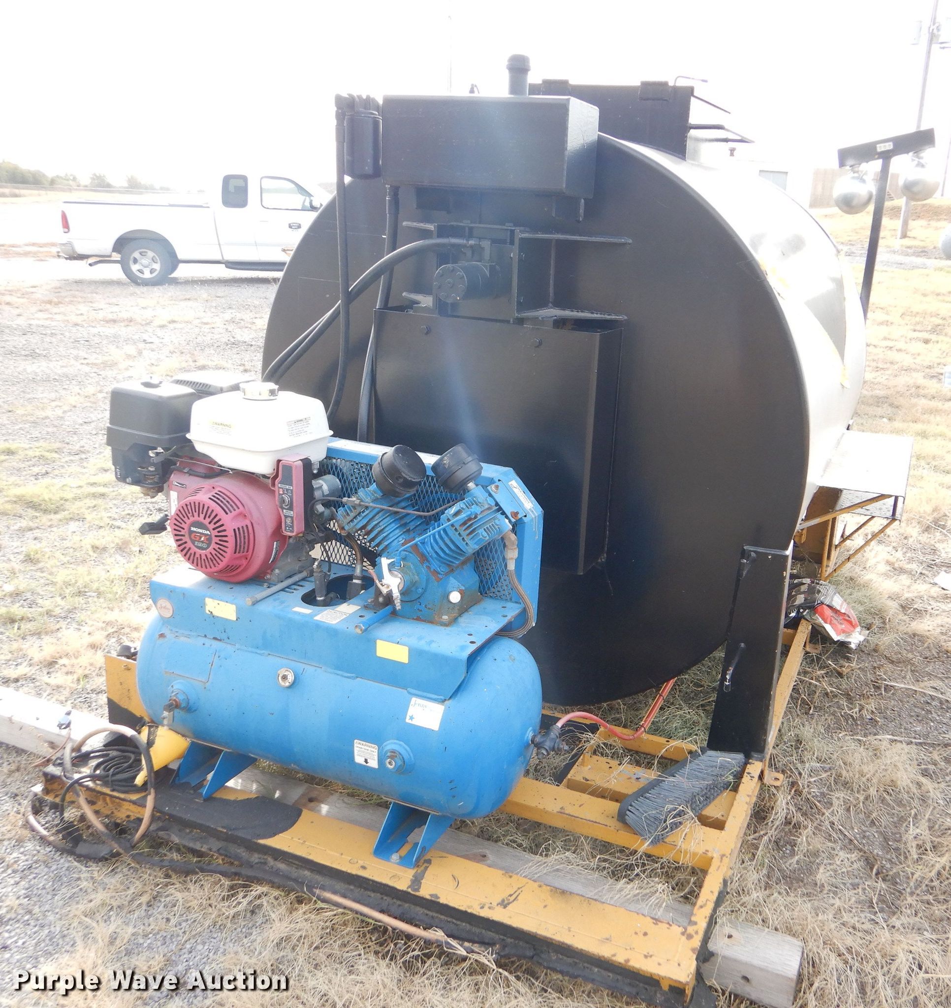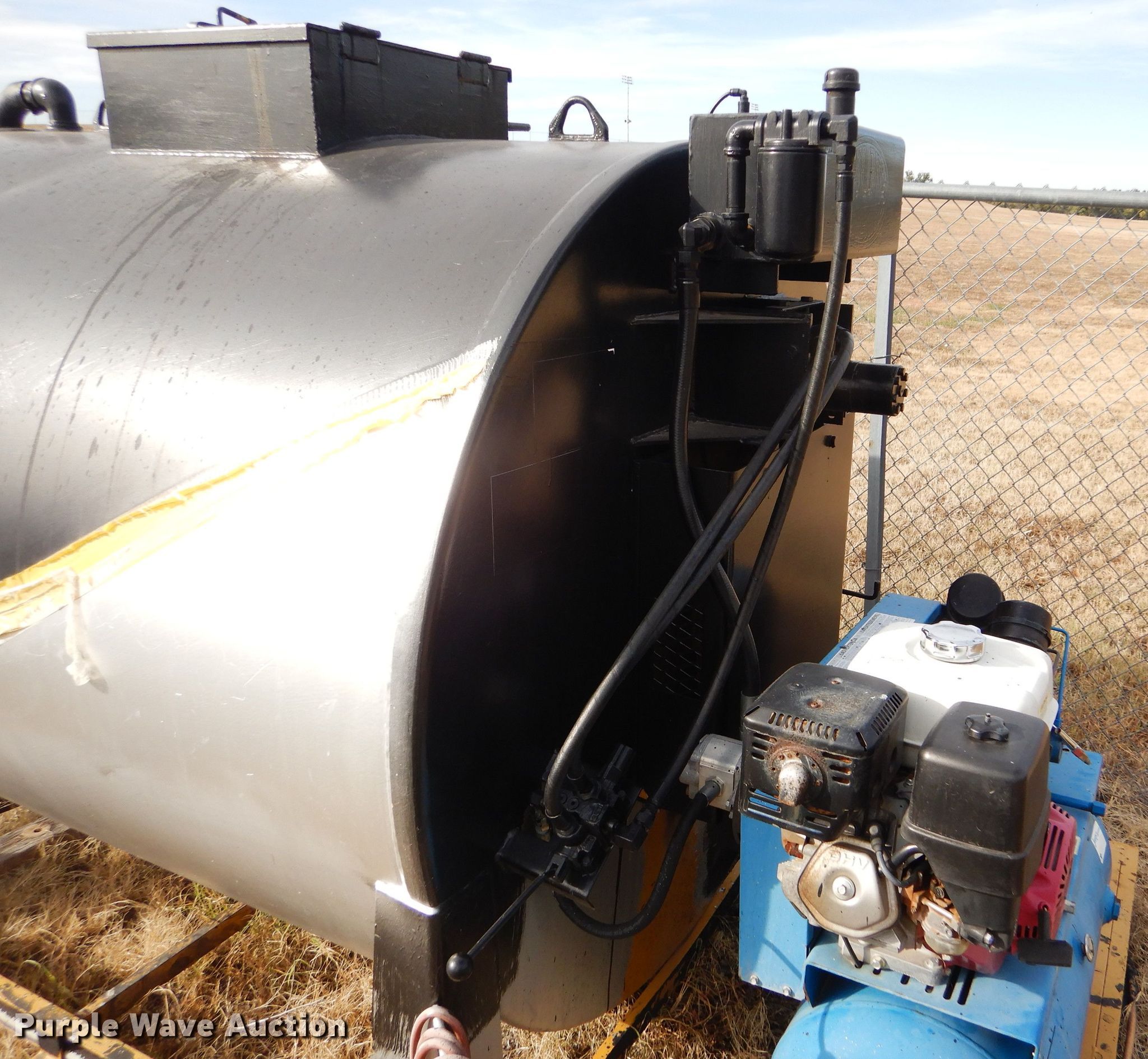 Purple Wave is selling a used Pot Hole Patcher in Kansas. This item is a Seal-rite SR-850 seal coater with the following: 130" x 74" x 73", 850 gallon tank, Jenny air compressor, Honda GX390 gas engine, Hydraulic agitation, 25"W manway, Hose reel with spray wand, Skid mounted, Dead battery, Unknown operating condition