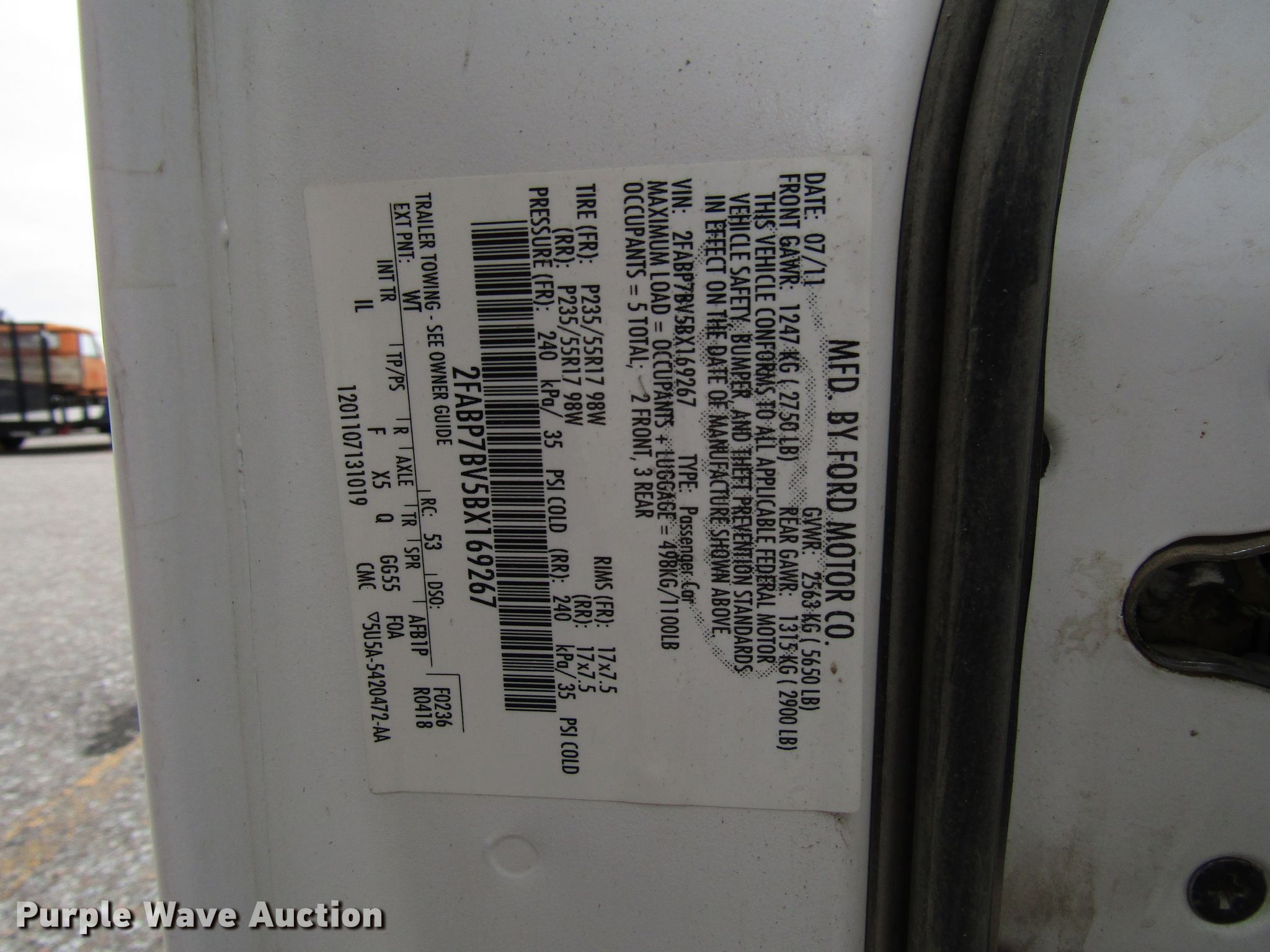 2011 Ford Crown Victoria Police Interceptor. 136,601 miles on odometer, 4.6L V8 SOHC 16V FFV gas engine, Automatic transmission, AC and heat, Power windows, locks, and seat, Heated mirrors, 235/55R17 tires, Battery dead, Unit# S-506. Nebraska title. 2FABP7BV5BX169267. Lancaster County Sheriff Dept. 444 Cherrycreek Road Bldg.B. Lincoln, NE 68528