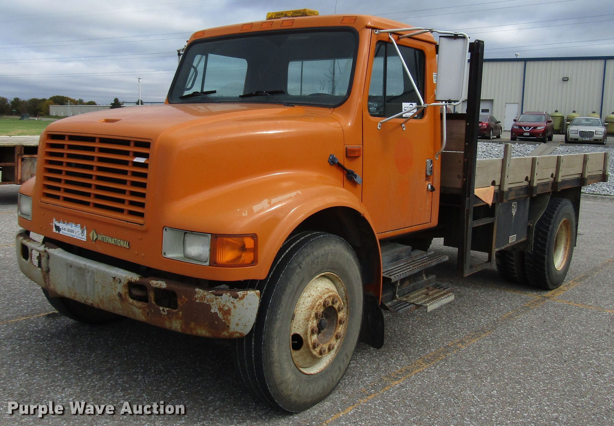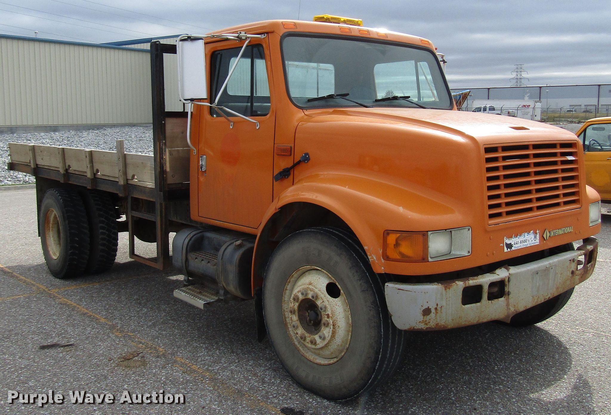 Purple Wave is selling a used Flat Bed Truck in Nebraska. This item is a 1992 International 4600 flatbed truck with the following: 116,211 miles on odometer, 6,317 hours on meter, International T444 7.3L V8 diesel engine, Spicer 10 speed manual transmission, Two speed rear end, Single axle, Heat, 14'L x 96"W flatbed, Removable sides, Spring suspension, Hydraulic brakes, 176" wheelbase, 11R22.5 tires, Possible injector issues, Unit# 117