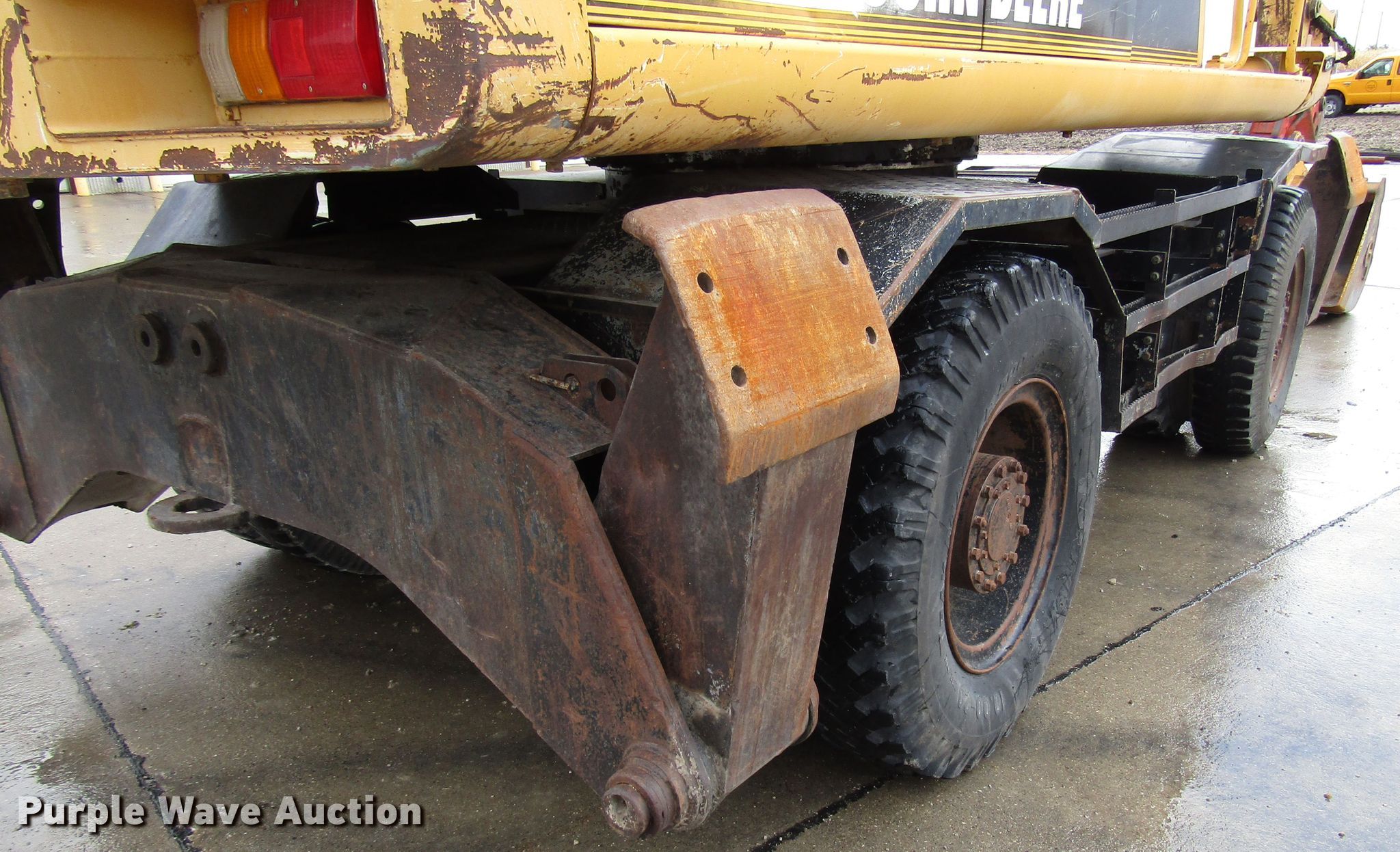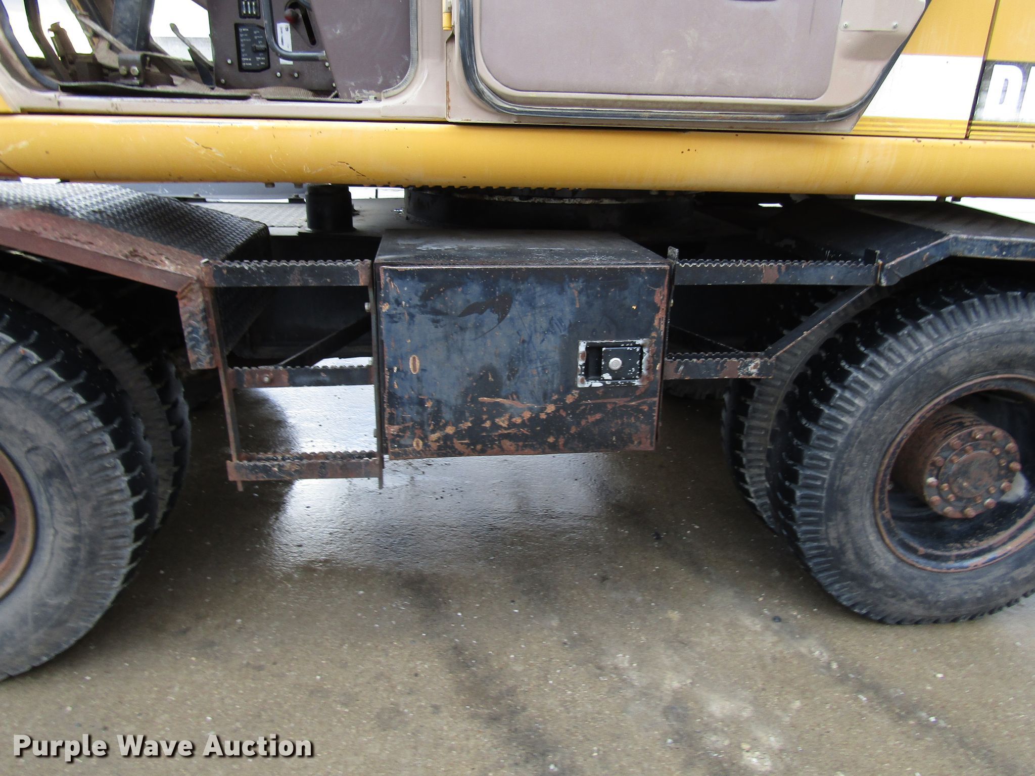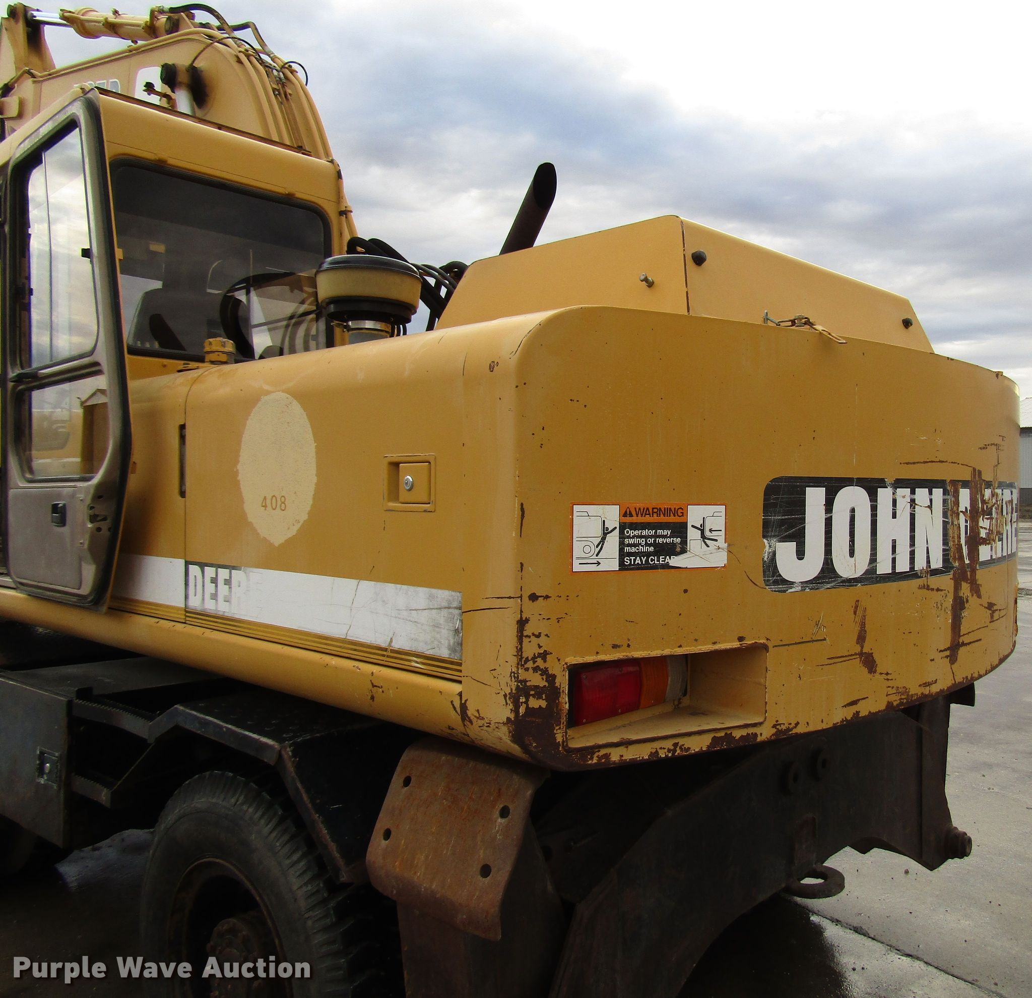 Purple Wave is selling a used Rubber Tired Excavator in Iowa. This item is a 1994 John Deere 595D rubber tire excavator with the following: 8,525 hours on meter, John Deere four cylinder diesel engine, Two speed hydrostatic transmission, EROPS, AC and heat, Pattern changer, Standard boom, 10'2" stick length, 60"W bucket, Weld-on cutting edge, Bucket rotation, Counter weights, 10.00-20 tires, Intermittent outrigger issues, Serial FF595DS001374
