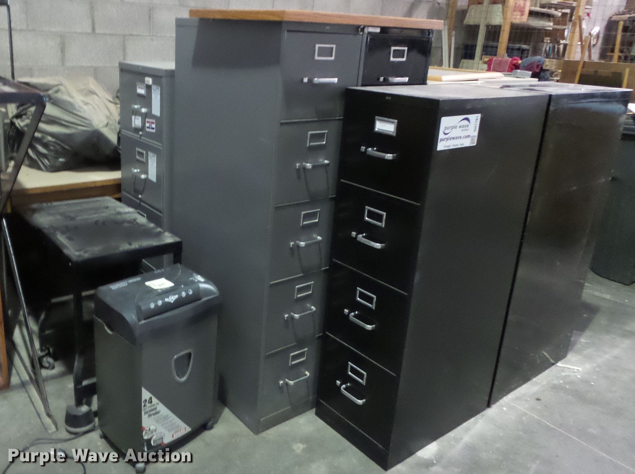 Purple Wave is selling a used Office Supplies and Equip. in Missouri. This item is a Office supplies and equipment with the following: Filing cabinets, Paper shredder, Shelving, Lights not included