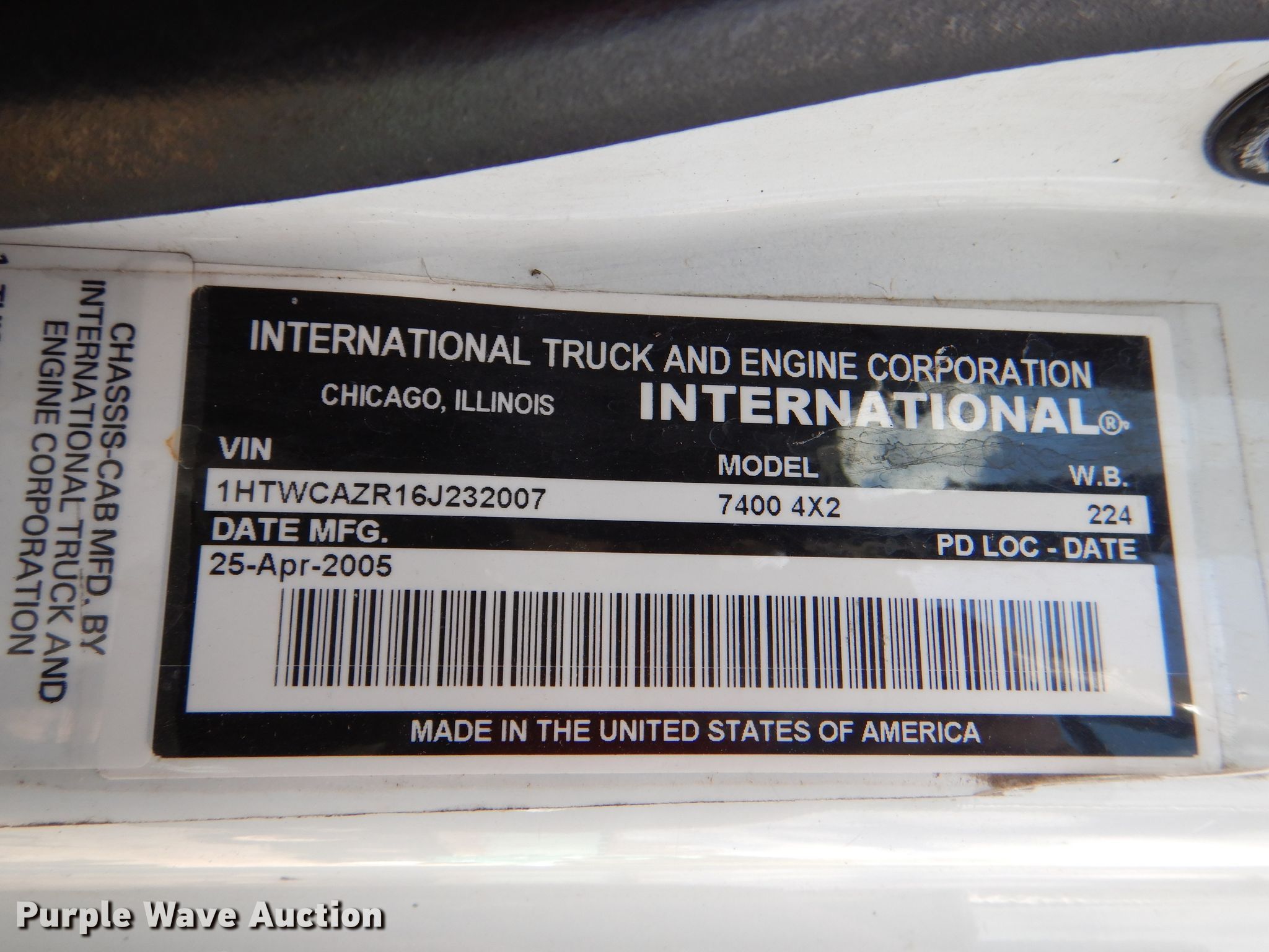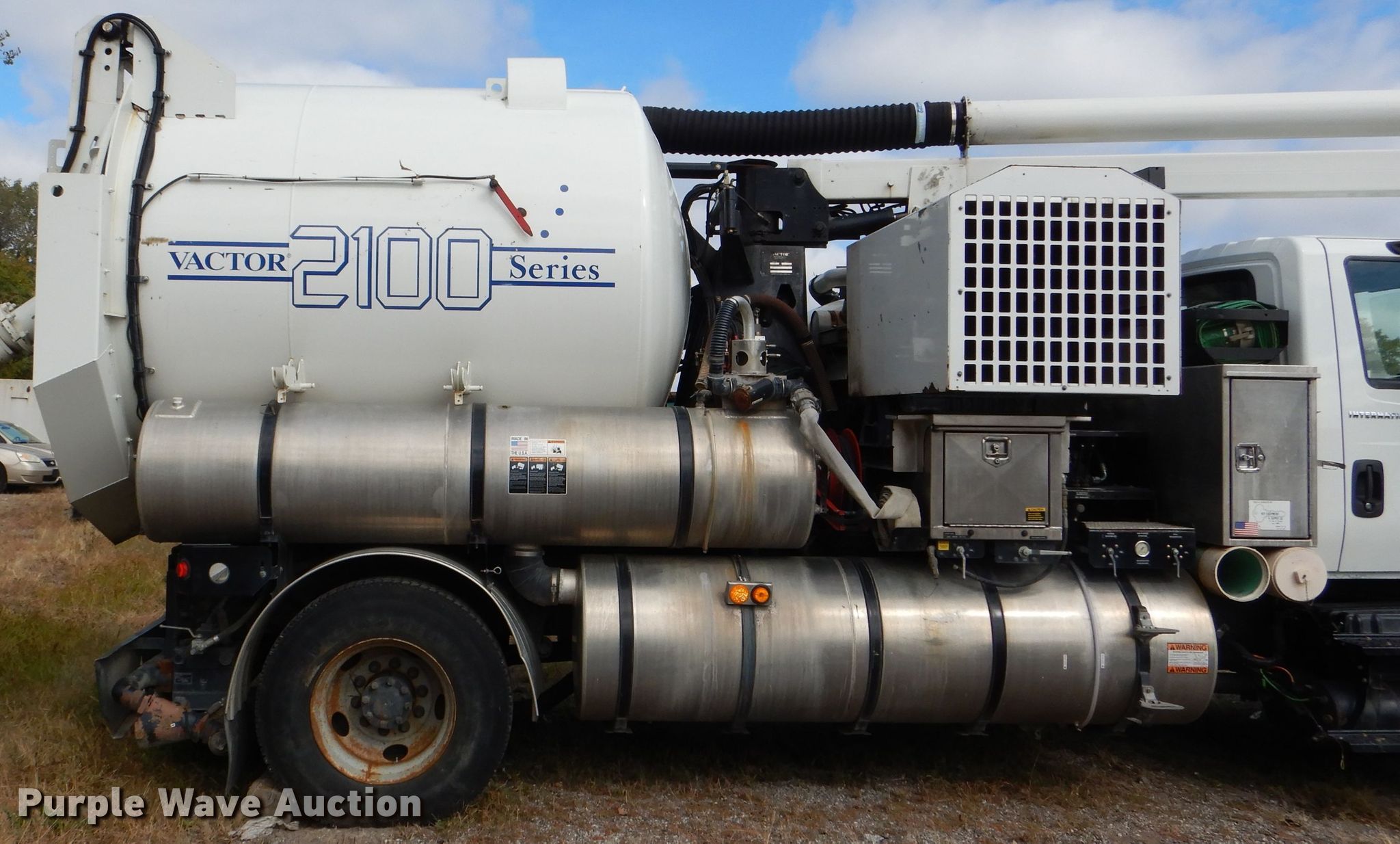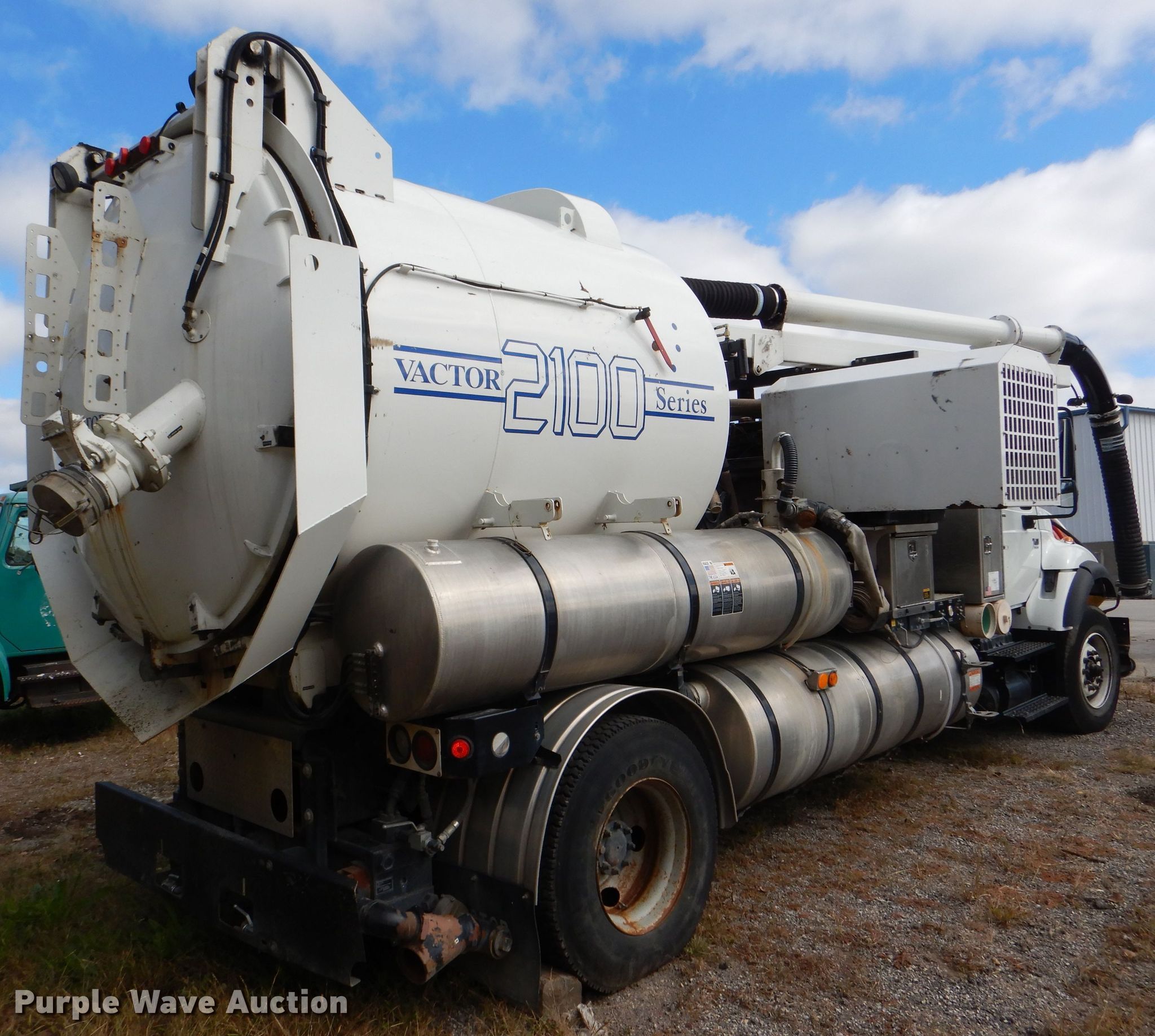 Purple Wave is selling a used Vacuum Truck in Kansas. This item is a 2006 International 7400 sewer jetter truck with the following: 73,212 miles on odometer, International DT570 9.3L L6 diesel engine, Allison 3500RDS automatic transmission, Single axle, AC and heat, Cruise, Heated mirrors, PTO, 2005 Vactor 2110J6 sewer jetter bed, 10 cu. yd. capacity, 6" rear outlet, John Deere 6068 6.8L six cylinder diesel engine, Serial PE6068H463981, Water pump, 2,500 psi, 80 gpm, Vactor S152130 vacuum pump, Hydraulic front hose reel, 1" diameter hose, 8" diameter telescopic boom, Spring suspension, Air brakes, 224" wheelbase, 385/65R22.5 front tires, 11R22.5 rear tires, GVWR 41,000 lbs, Transmission issues, Unknown operating condition of auxiliary engine, Unit# AA211812