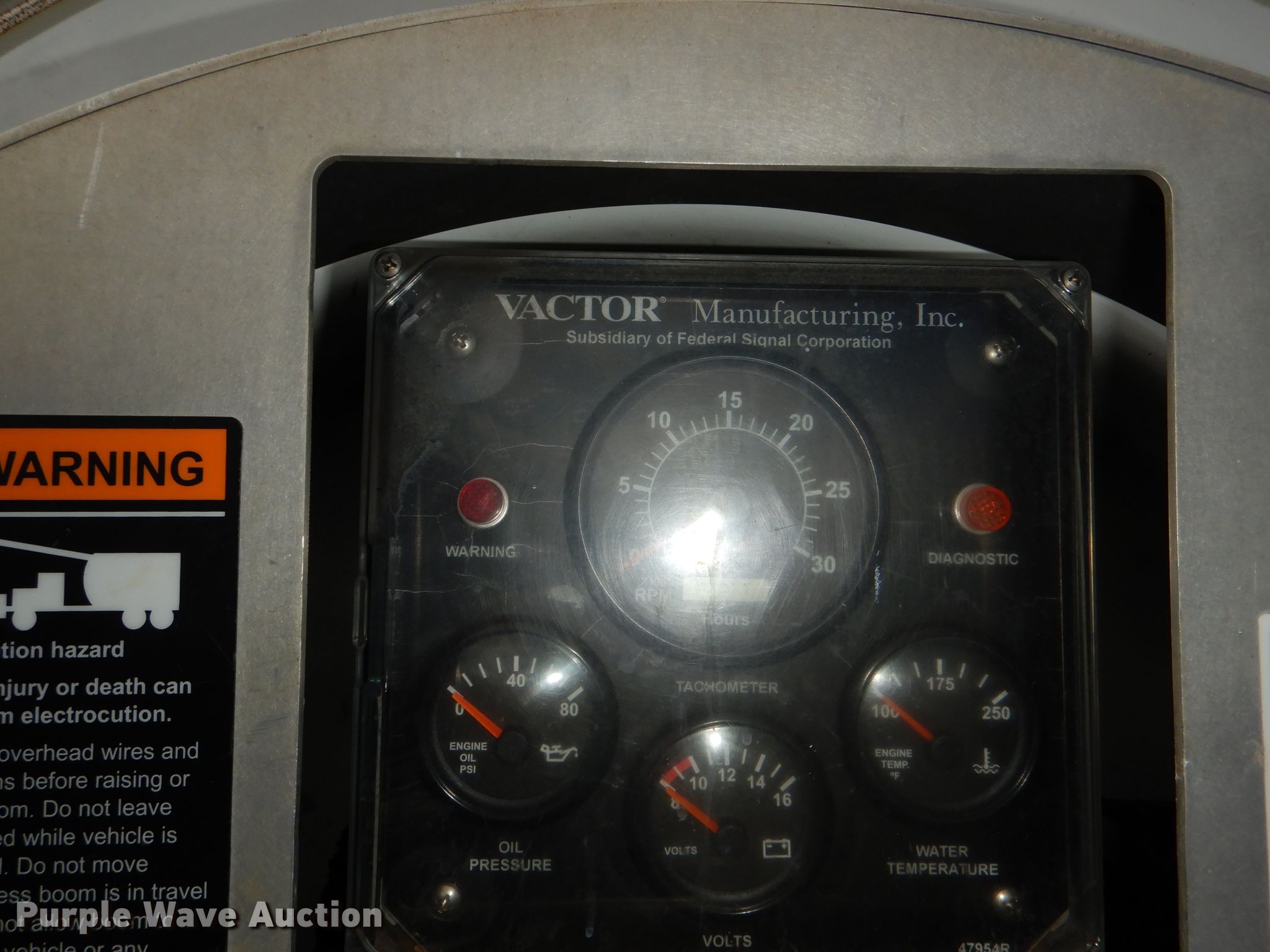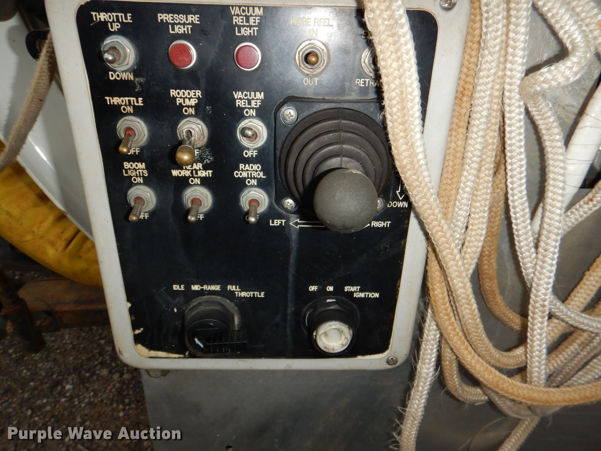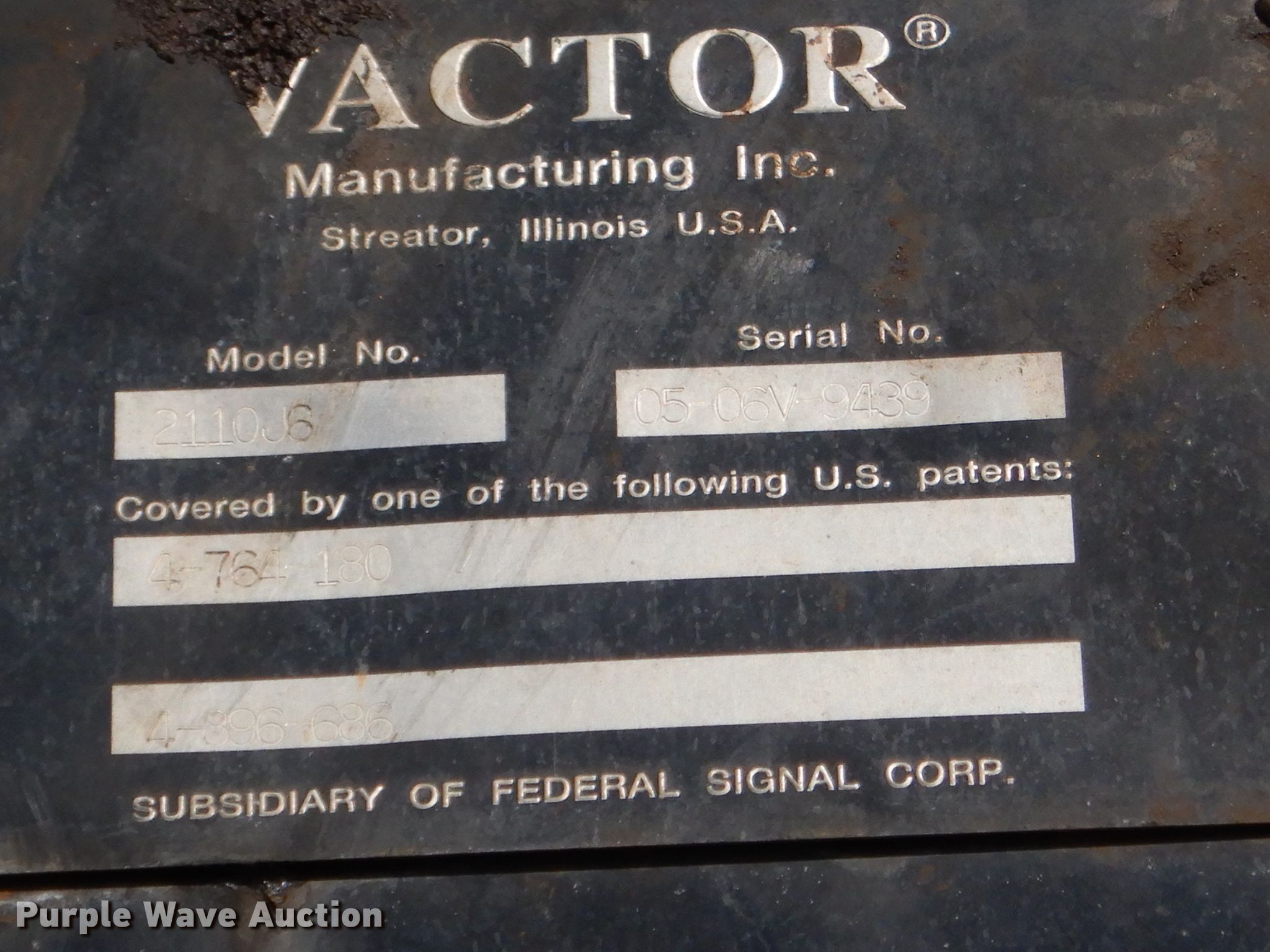 Purple Wave is selling a used Vacuum Truck in Kansas. This item is a 2006 International 7400 sewer jetter truck with the following: 73,212 miles on odometer, International DT570 9.3L L6 diesel engine, Allison 3500RDS automatic transmission, Single axle, AC and heat, Cruise, Heated mirrors, PTO, 2005 Vactor 2110J6 sewer jetter bed, 10 cu. yd. capacity, 6" rear outlet, John Deere 6068 6.8L six cylinder diesel engine, Serial PE6068H463981, Water pump, 2,500 psi, 80 gpm, Vactor S152130 vacuum pump, Hydraulic front hose reel, 1" diameter hose, 8" diameter telescopic boom, Spring suspension, Air brakes, 224" wheelbase, 385/65R22.5 front tires, 11R22.5 rear tires, GVWR 41,000 lbs, Transmission issues, Unknown operating condition of auxiliary engine, Unit# AA211812