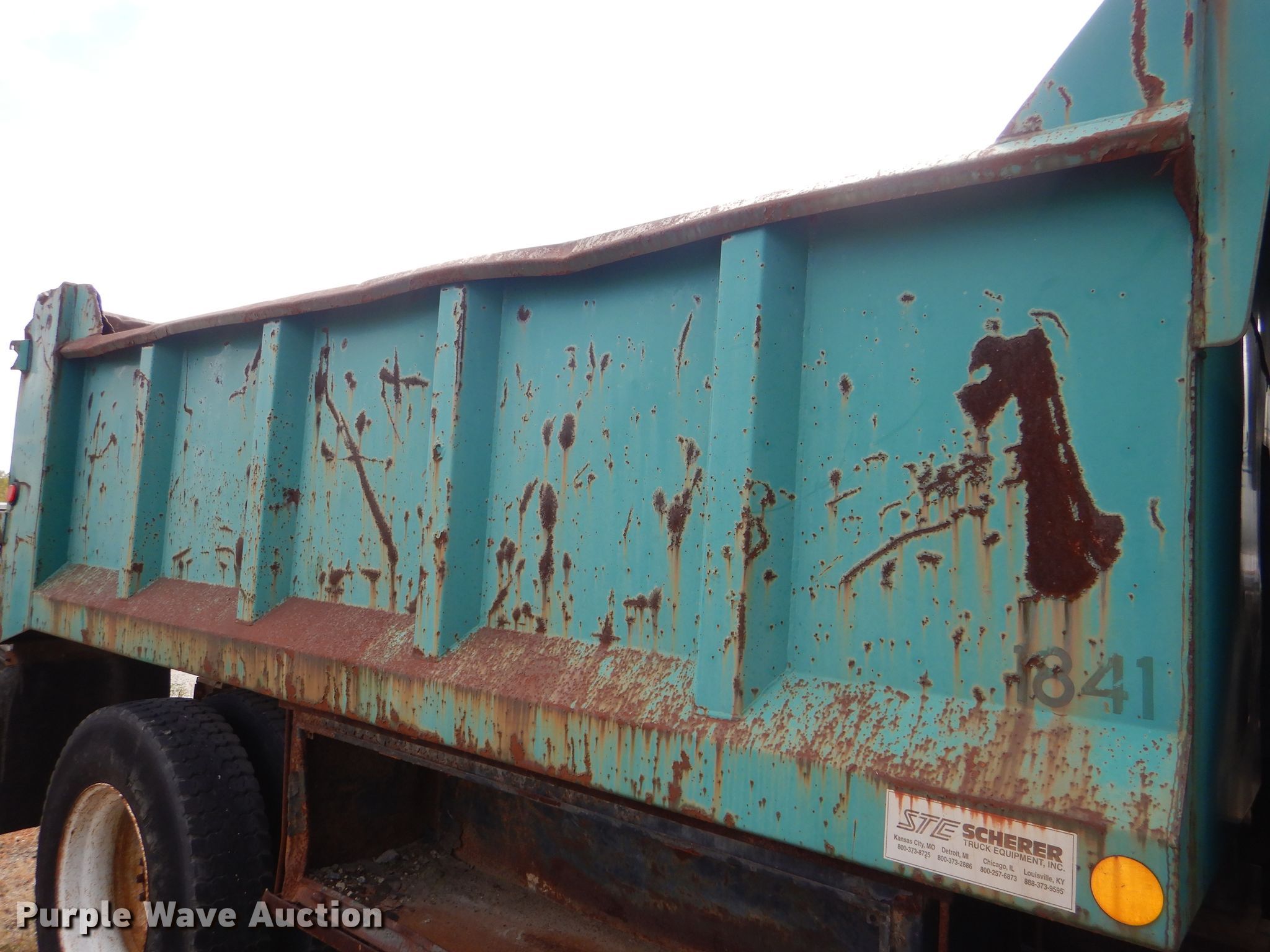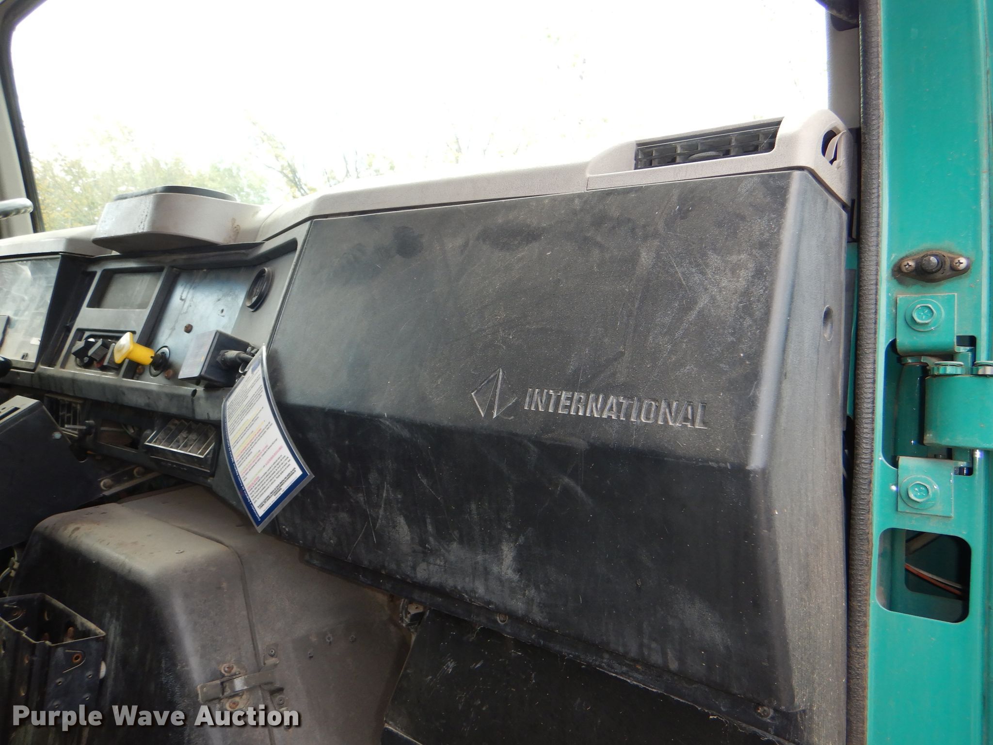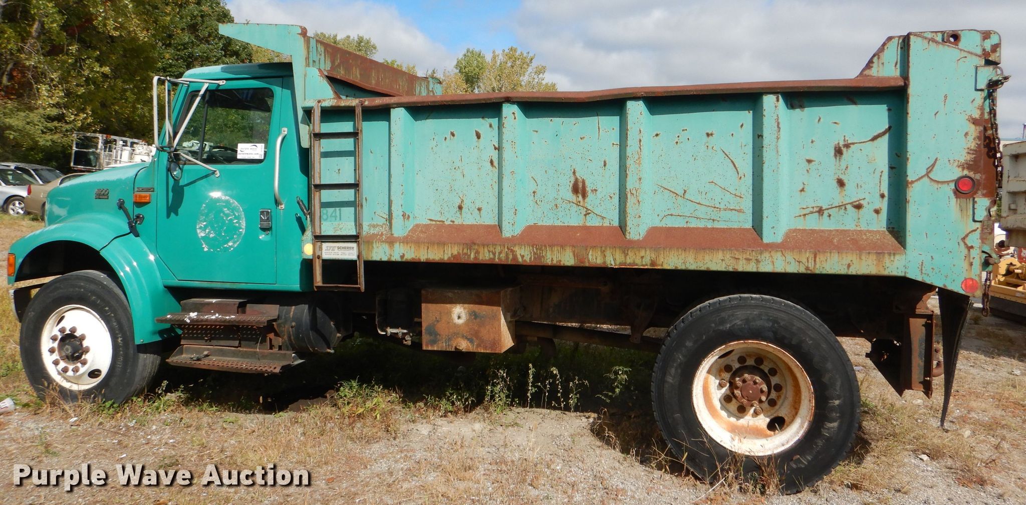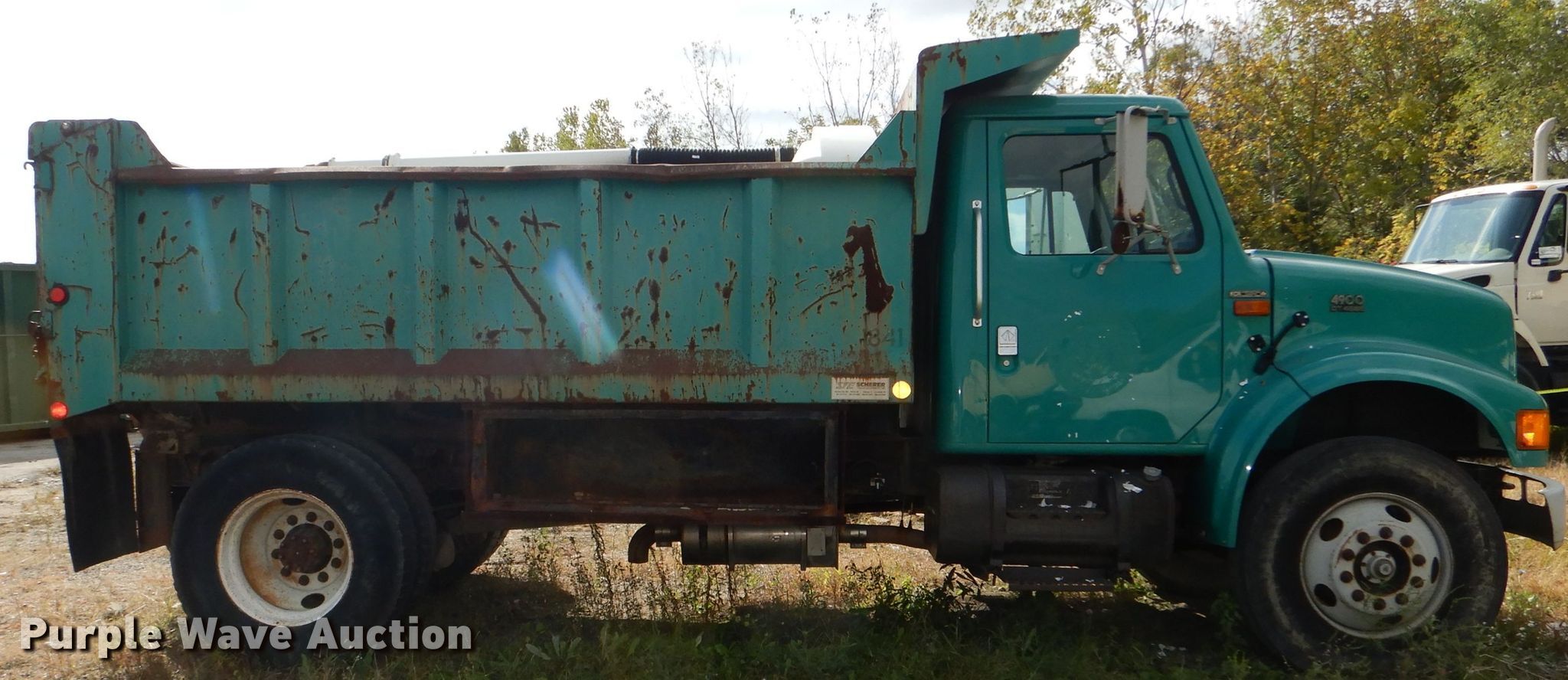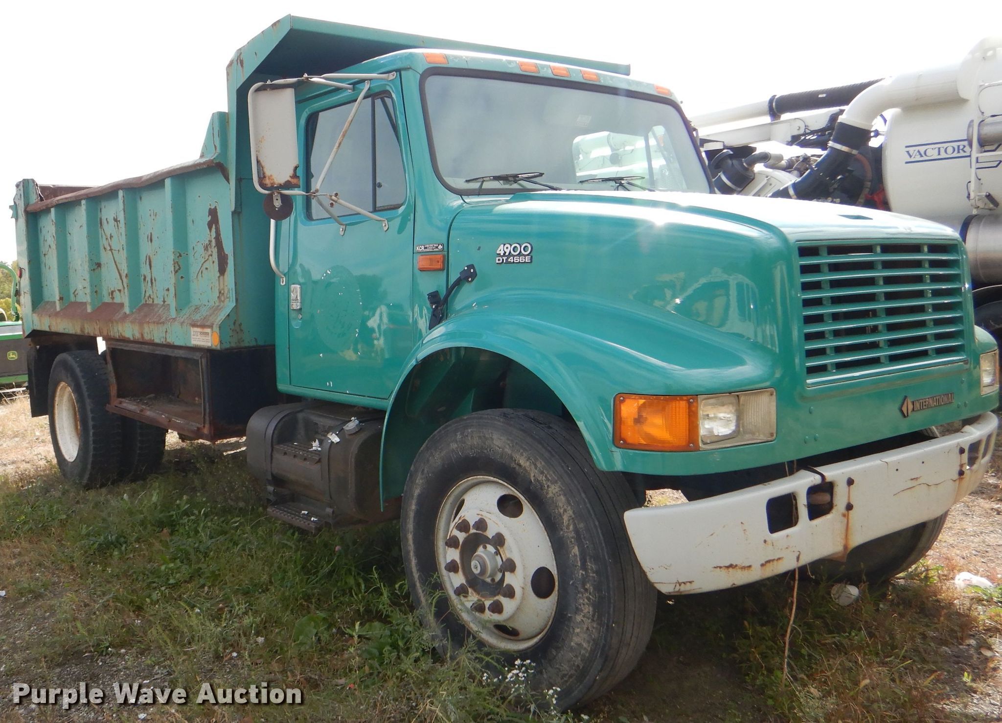 Purple Wave is selling a used Construction Dump Truck in Kansas. This item is a 2001 International 4900 dump truck with the following: 55,584 miles on odometer, International DT466E 7.6L L6 diesel engine, 215 HP, Allison automatic transmission, Single axle, Heat, Crysteel steel dump bed, 12'L x 96"W, 32" side height, Single ram hoist, DPF exhaust purifier system, Spring suspension, Air brakes, 176" wheelbase, 11R22.5 tires, Radiator cap missing, Unit# AAA211518