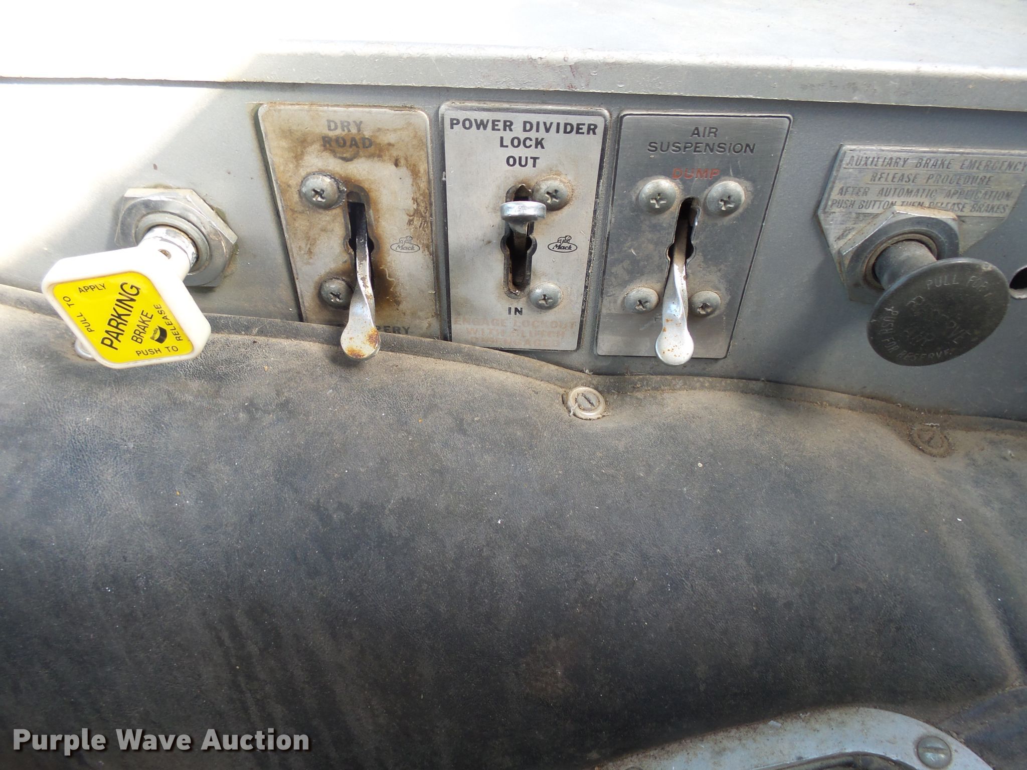 Purple Wave is selling a used Tank Truck or Water Truck in South Dakota. This item is a 1968 Mack FL711LST tank truck with the following: 76,319 miles on odometer, 3,643 hours on meter, Mack EMDLT6730 diesel engine, Eaton Fuller five speed manual transmission, Two speed rear end, Tandem axle, Heat, PTO, Heil tank, 2,600 gallon capacity, Rear drain, Top fill, Air suspension, Air brakes, 12R22.5 front tires, 10R22.5 rear tires, Dead battery, Pump on tank missing, Unknown operating condition