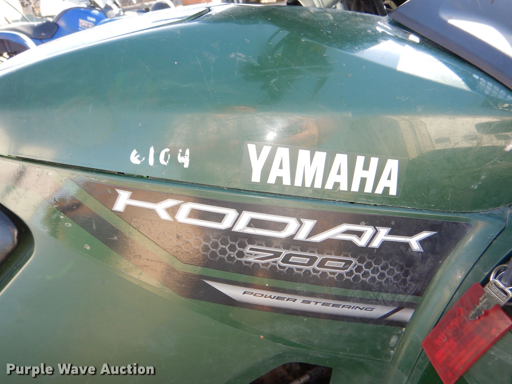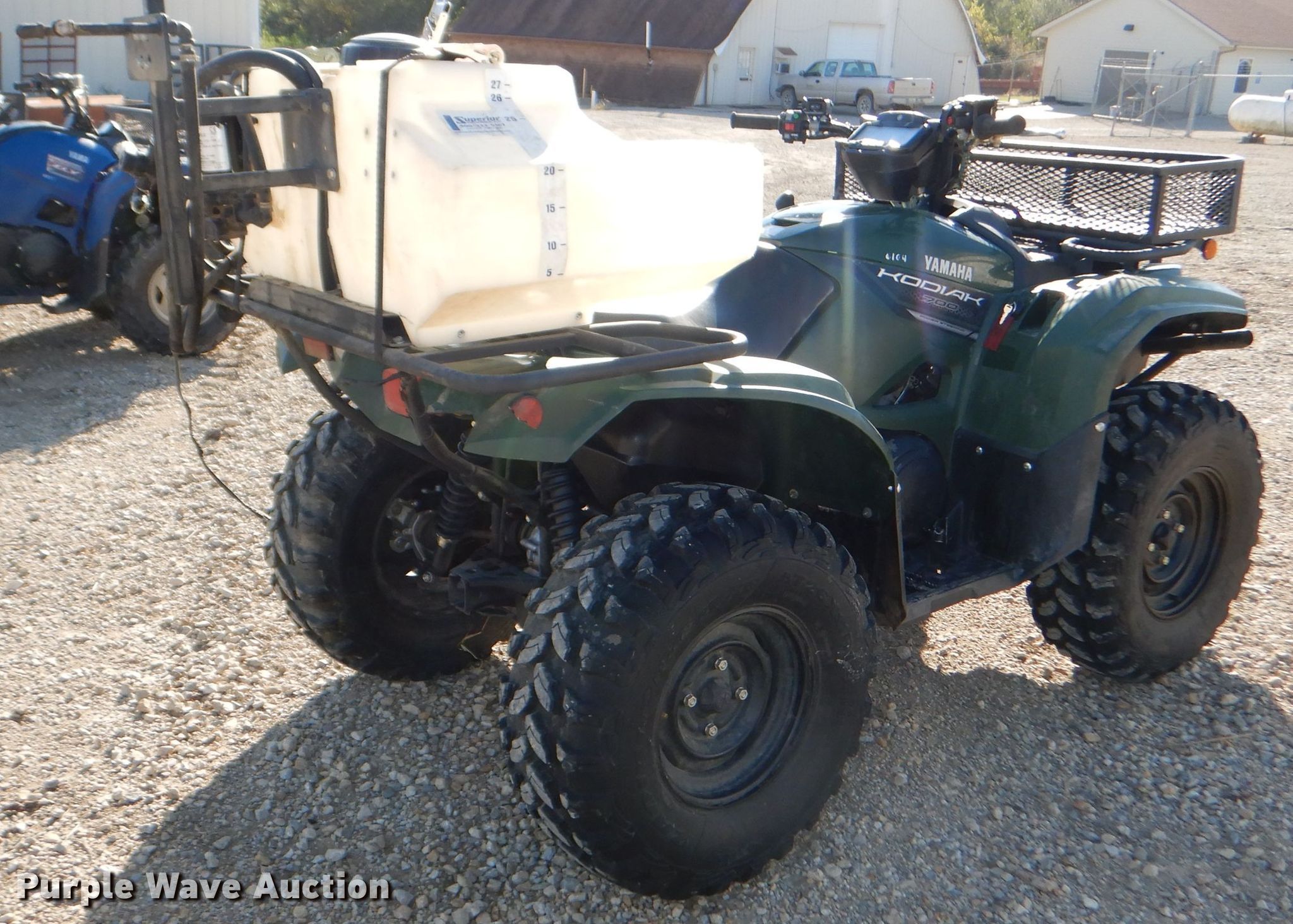 Purple Wave is selling a used ATV in Kansas. This item is a 2019 Yamaha Kodiak 700 ATV with the following: 563 miles on odometer, 137 hours on meter, Four wheel drive, Warn Pro Vantage winch, 2,500 lbs capacity, Boomless sprayer, 27 gallon capacity, Hose, Wand, Receiver hitch, 26x9R12 front tires, 26x11R12 rear tires, Sprayer pump needs to be replaced, broken fitting