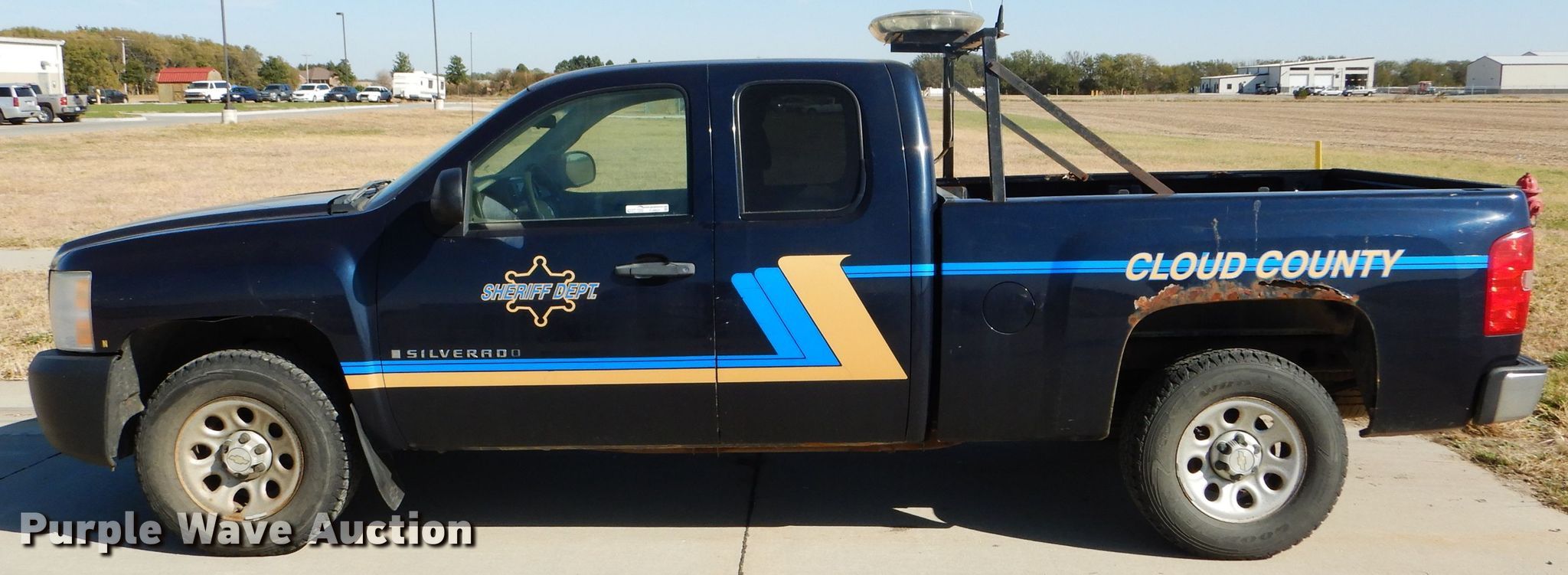 2007 Chevrolet Silverado 1500 Ext. Cab pickup truck. 196,826 miles on odometer, 5.3L V8 OHV 16V FFV gas engine, Automatic transmission, Four wheel drive, AC and heat, Cruise, Power windows and locks, 265/70R17 tires, Decals will be removed prior to auction. Kansas title. 1GCEK19077Z589983. Cloud County Sheriff. 2090 E Fort Kearney Rd. Concordia, KS 66901