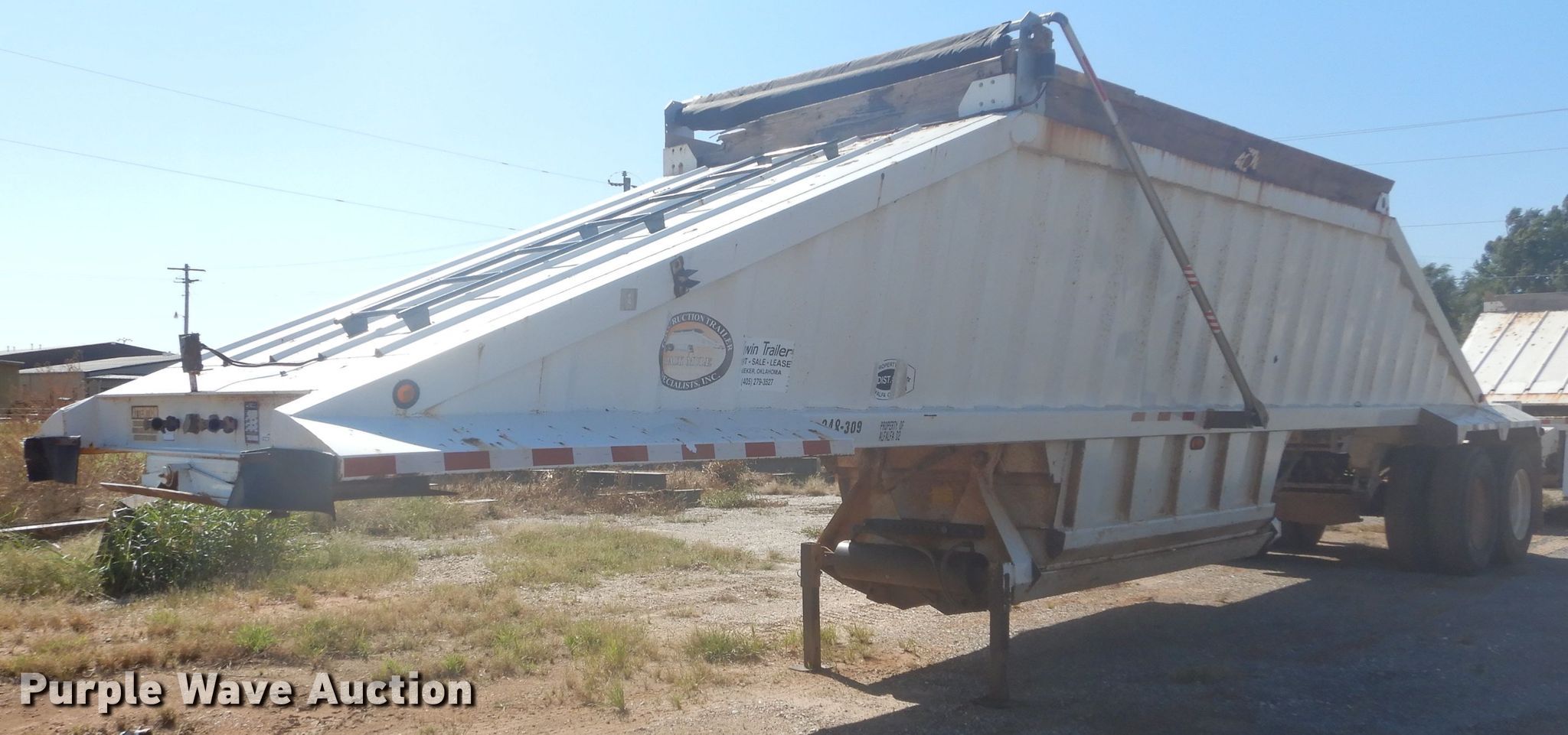 2009 CTS BDT-40 bottom dump trailer. 40'L x 102"W overall, Air operated clamshell gate, Electric roll tarp, Steel construction, Dual leg landing gear, Spring suspension, Air brakes, Tandem axle, 11R24.5 tires, GVWR 68,000 lbs. Oklahoma title. 5TU1140279S000520. Alfalfa County District 2. 315 S Euclid. Cherokee, OK 73728