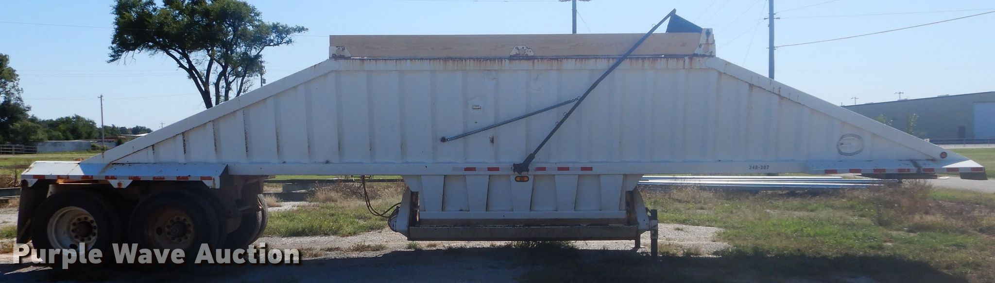 Purple Wave is selling a used Bottom Dump Trailer in Oklahoma. This item is a 2007 CTS BDT-40 bottom dump trailer with the following: 40'L x 102"W overall, Air operated clamshell gate, Electric roll tarp, Steel construction, Dual leg landing gear, Spring suspension, Air brakes, Tandem axle, 11R24.5 tires, GVWR 68,000 lbs