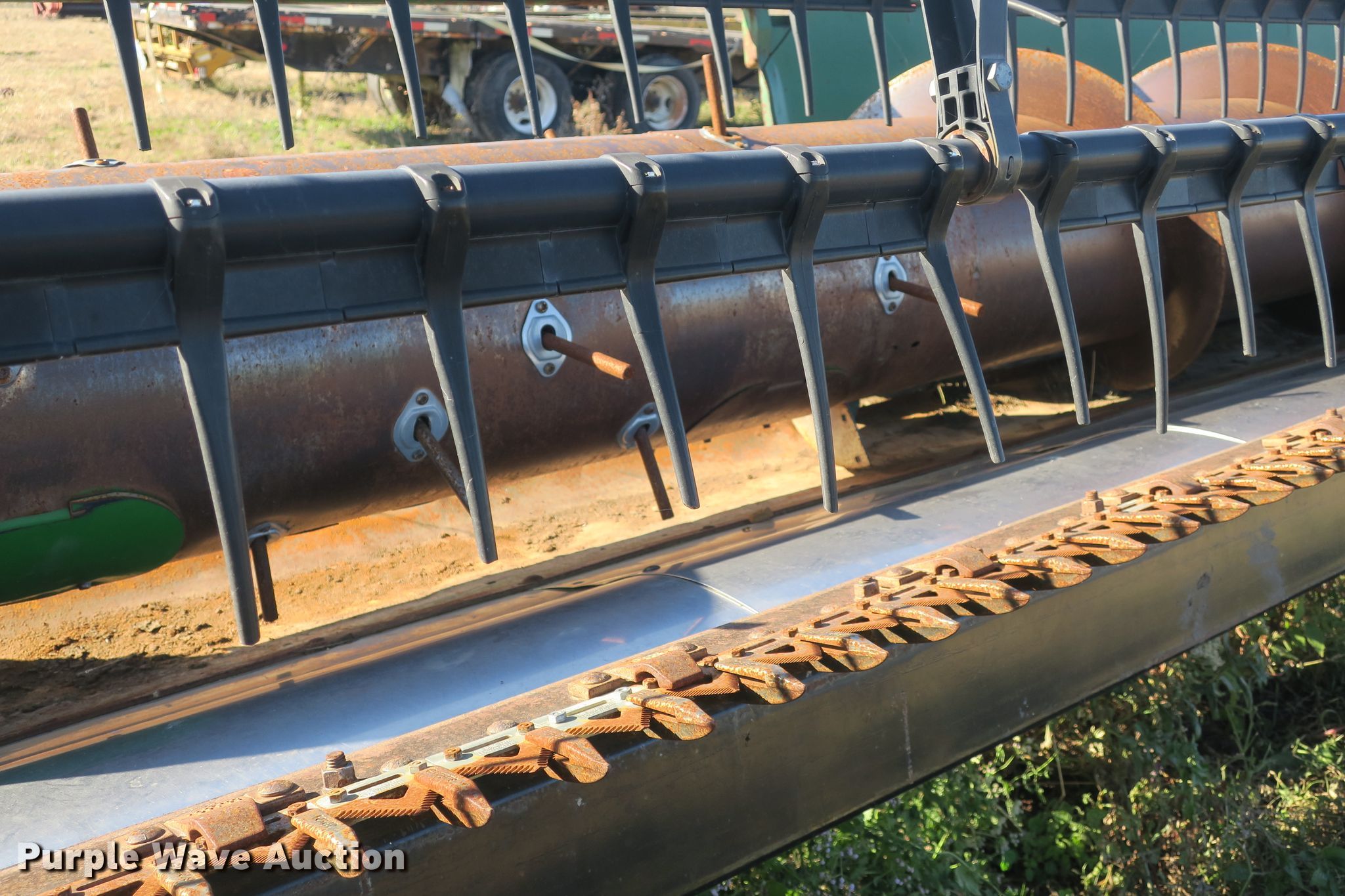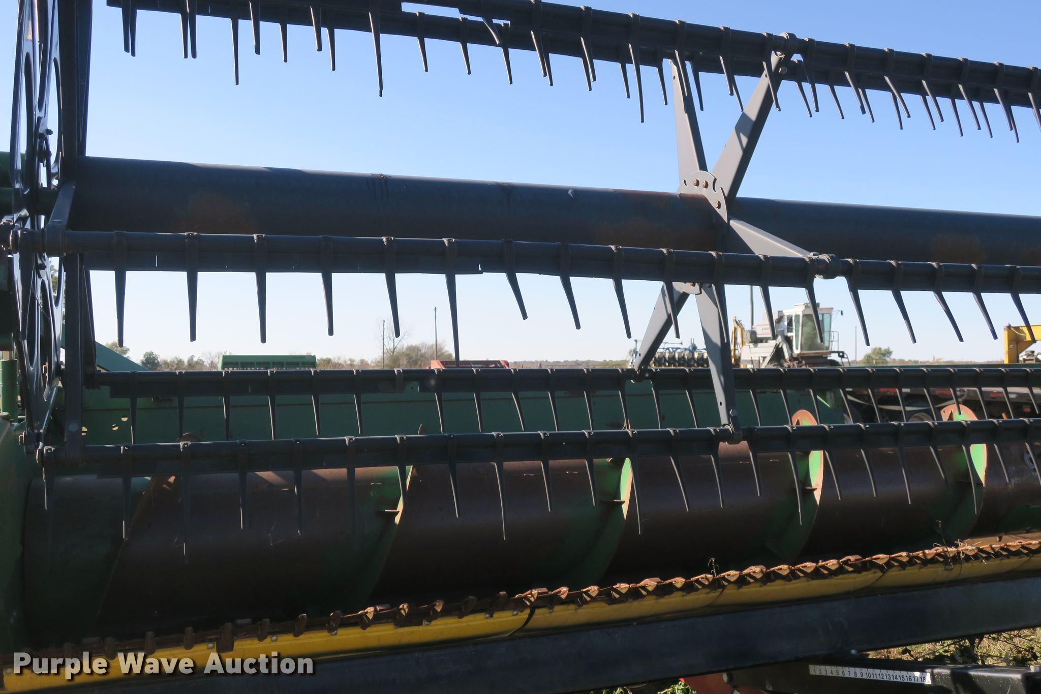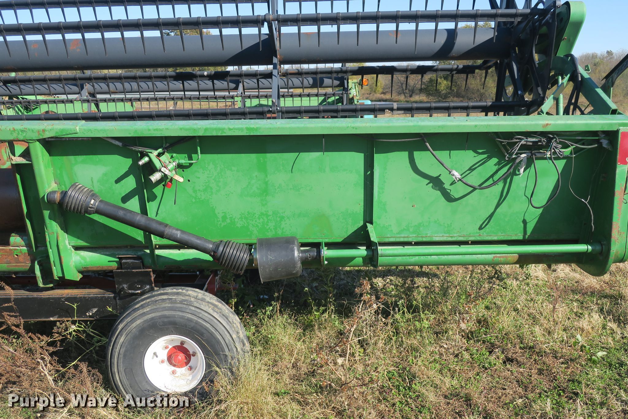 Purple Wave is selling a used Platform or Stripper Head in Missouri. This item is a 1992 John Deere 925 flex head with the following: 25'W, Finger reel, Hydraulic fore/aft, Hydraulic reel height control, Poly skid plates, Trailer not included