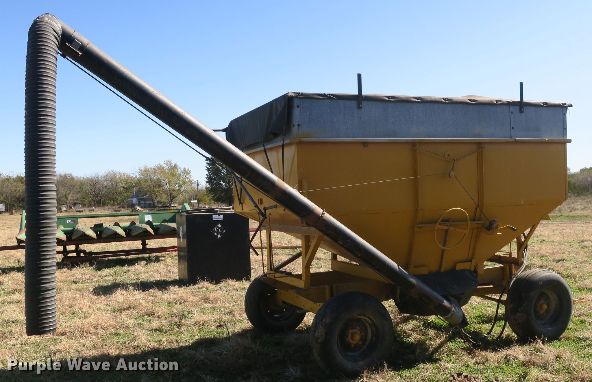 Purple Wave is selling a used Grain Cart or Gravity Wagon in Missouri. This item is a Gravity wagon with the following: 16'L overall, 10'L x 6'W, 38" side height, 13'L discharge auger, Roll tarp, Tandem axle, Steel wheels, 11-15 tires