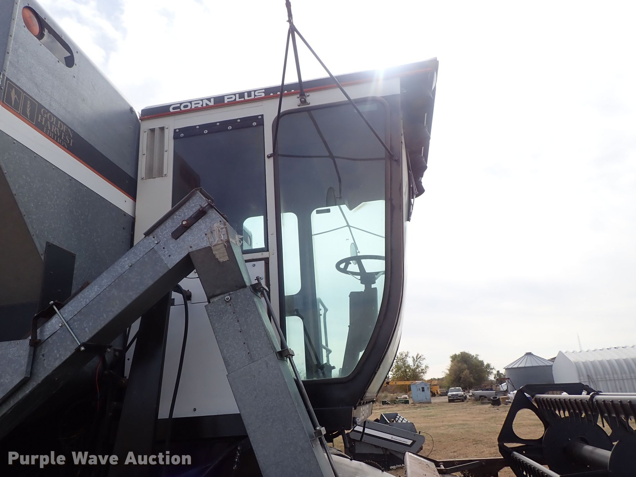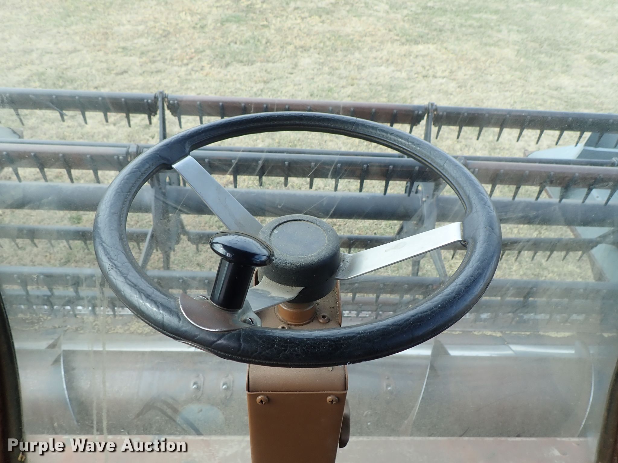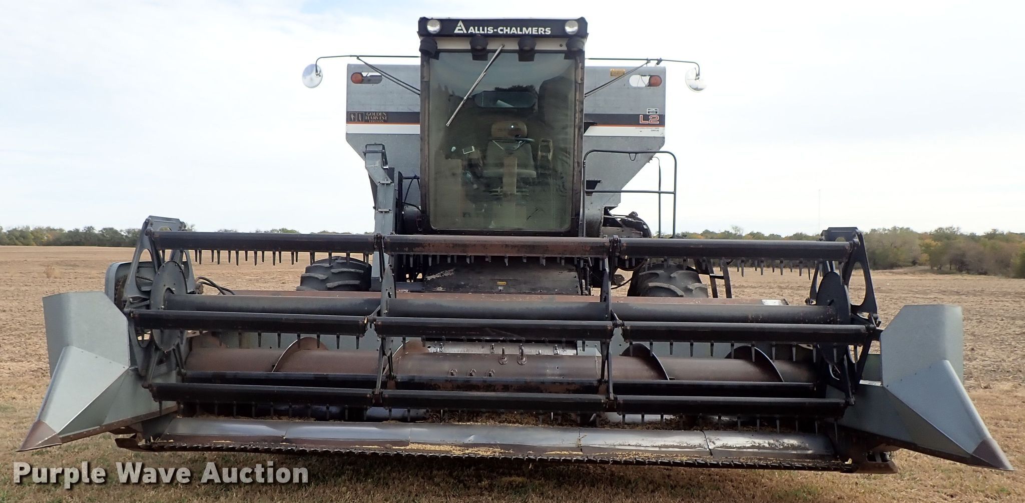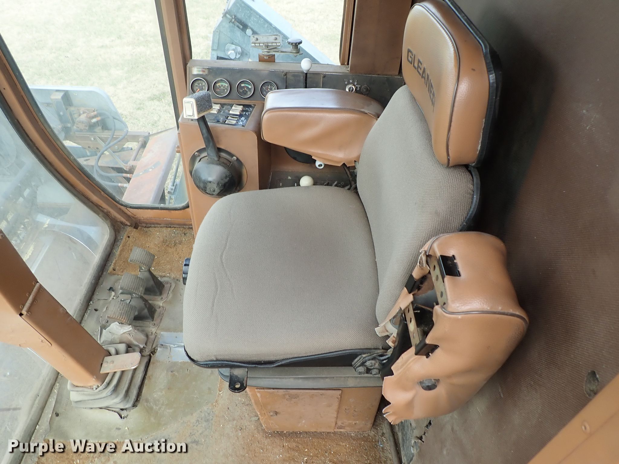 Purple Wave is selling a used Combine in Kansas. This item is a Gleaner L2 combine with the following: 845 engine hours on meter, 2,321 separator hours on meter, Six cylinder diesel engine, Hydrostatic transmission, Feederhouse, Variable speed, AC and heat, Chaff spreader, 14'L unloading auger, 23.1-34 front tires, 14L-16.1 rear tires, Head not included, Serial L-K24276H-GHF376