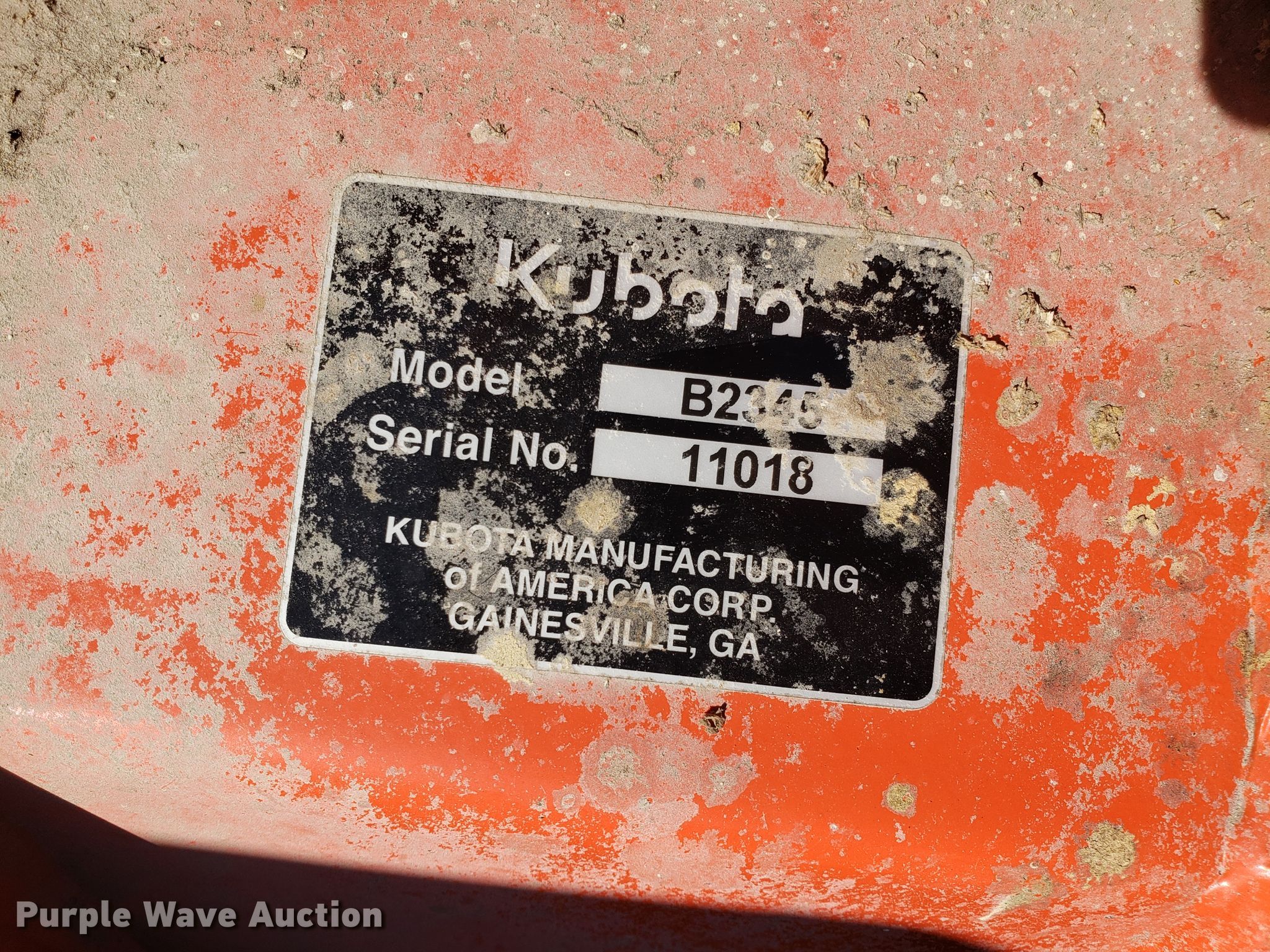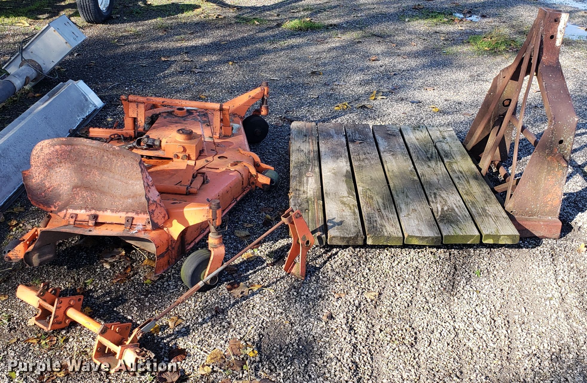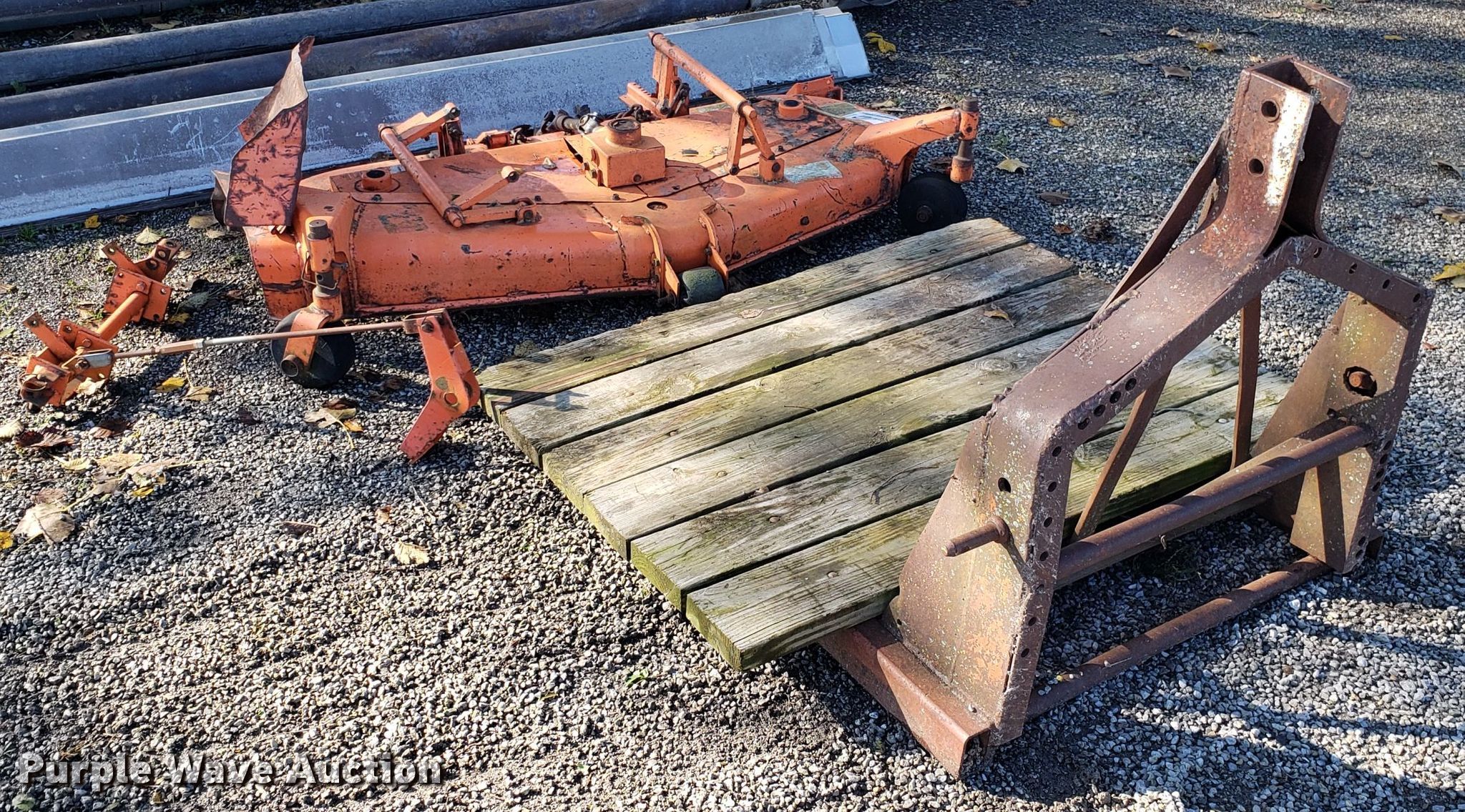 Purple Wave is selling a used Ag Tractor Loader or Attach. in Missouri. This item is a Kubota loader and mower deck with the following: 60"W deck, 53"W bucket, Model B2345, Loader, Brackets and hoses, Hydraulic filter, Valve, 48"W x 36" three point platform