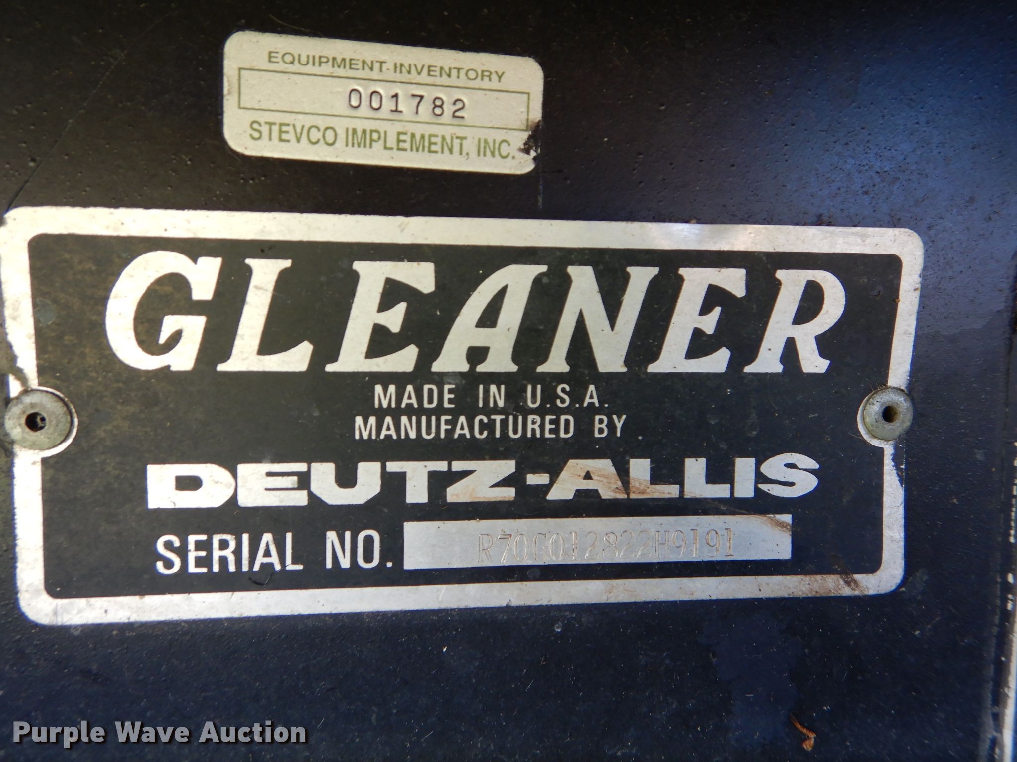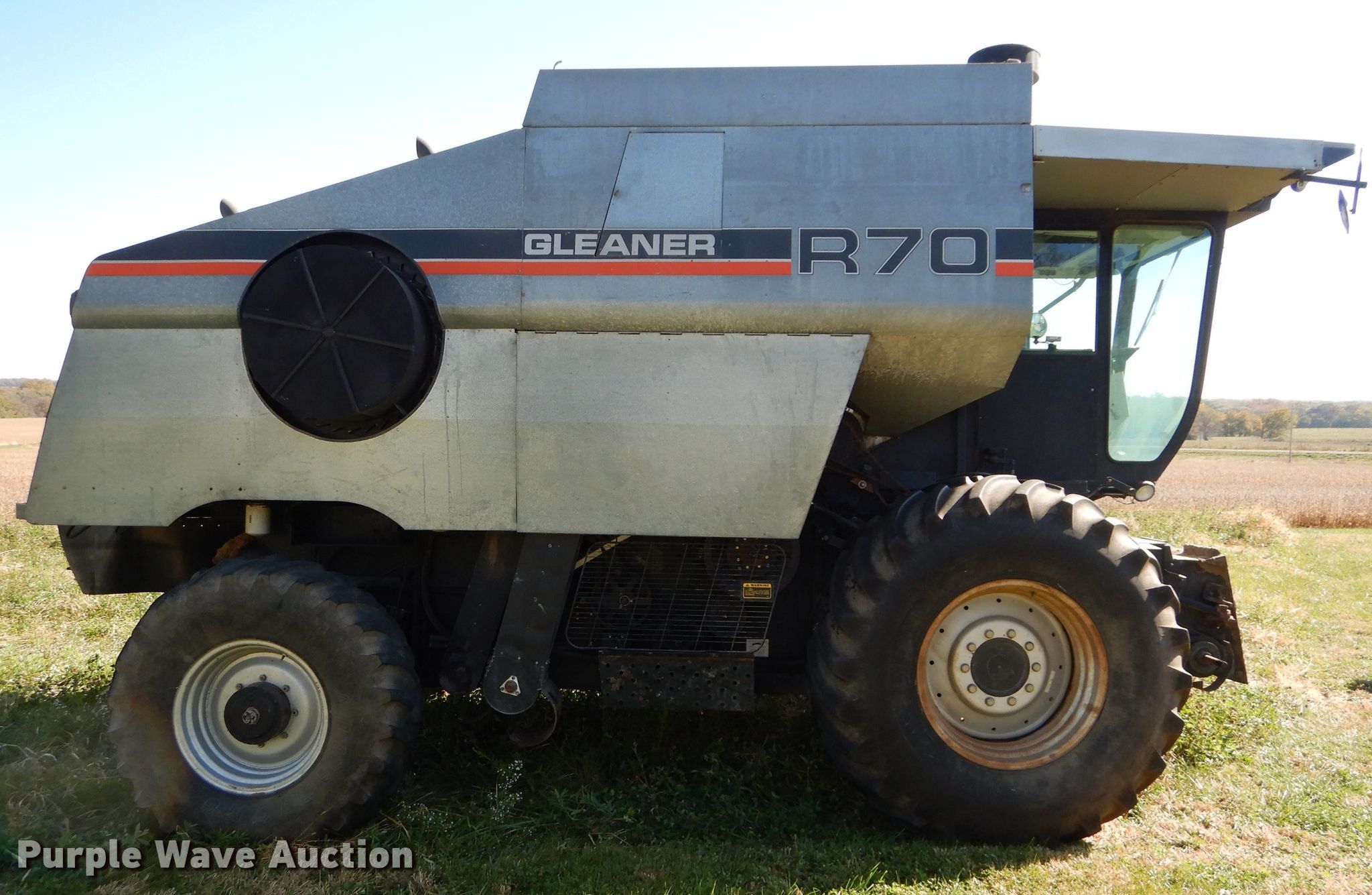 Purple Wave is selling a used Combine in Kansas. This item is a 1991 Gleaner R70 RWA combine with the following: 3,290 engine hours on meter, 2,171 separator hours on meter, Deutz BF8L513 eight cylinder diesel engine, Serial 7982234, Hydrostatic transmission, Feederhouse, Reverser, AC and heat, Chaff spreader, Straw chopper, Bin extensions, 15'L unloading auger, 30.5L-32 front tires, 18.4-26 rear tires, Reverse cylinder bars included, Additional parts included, Non-operational RWA, Serial R70G012822H9191