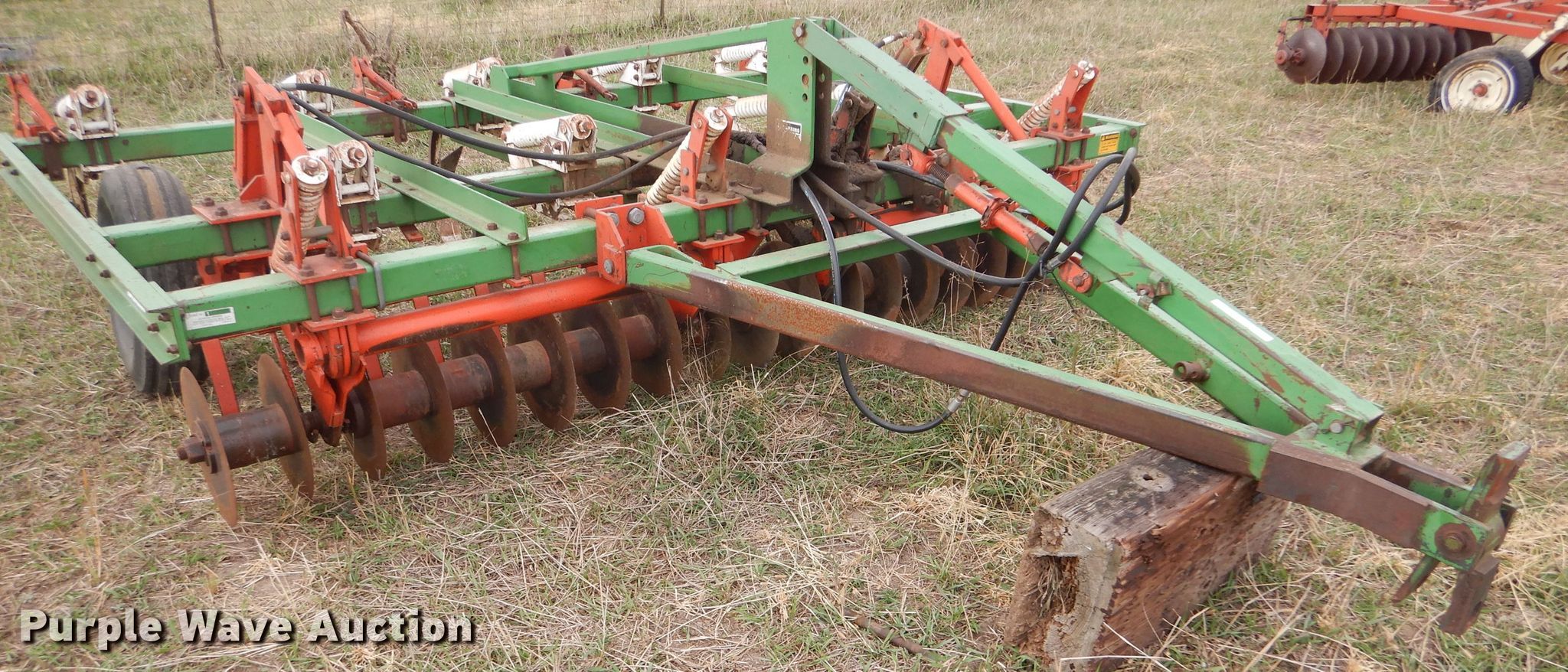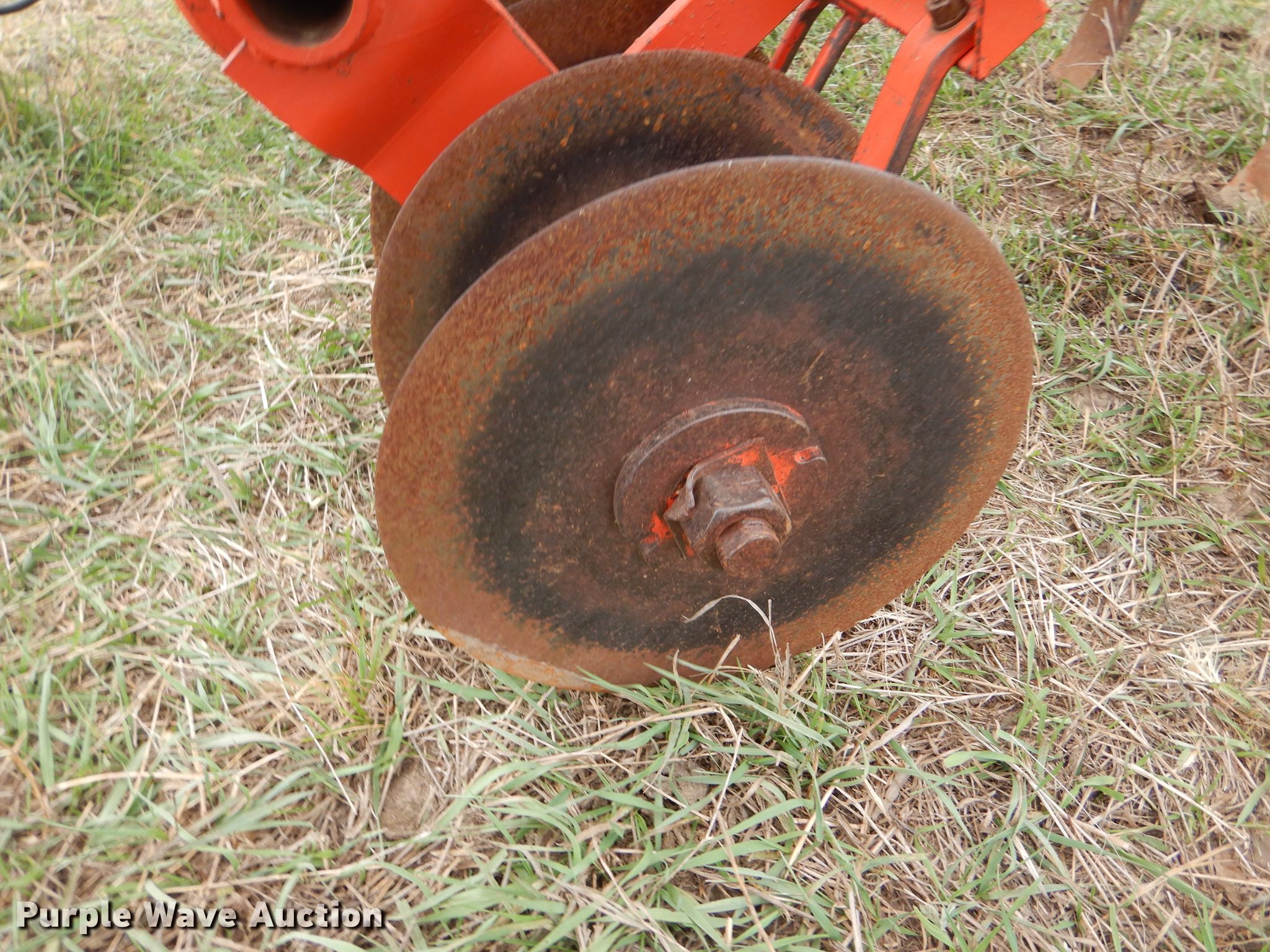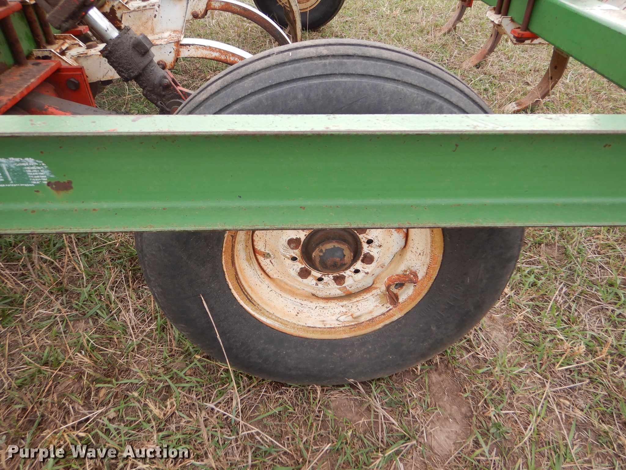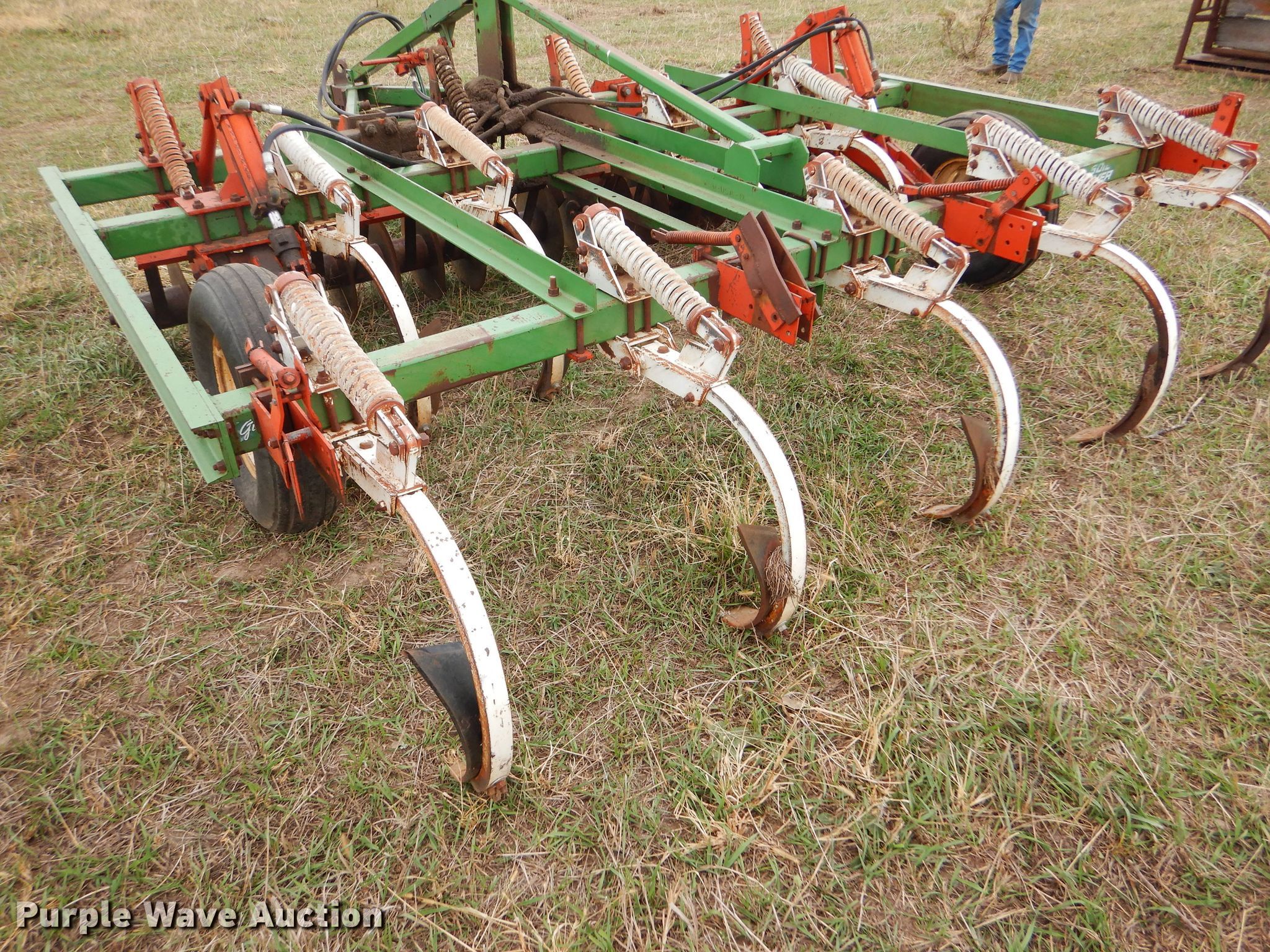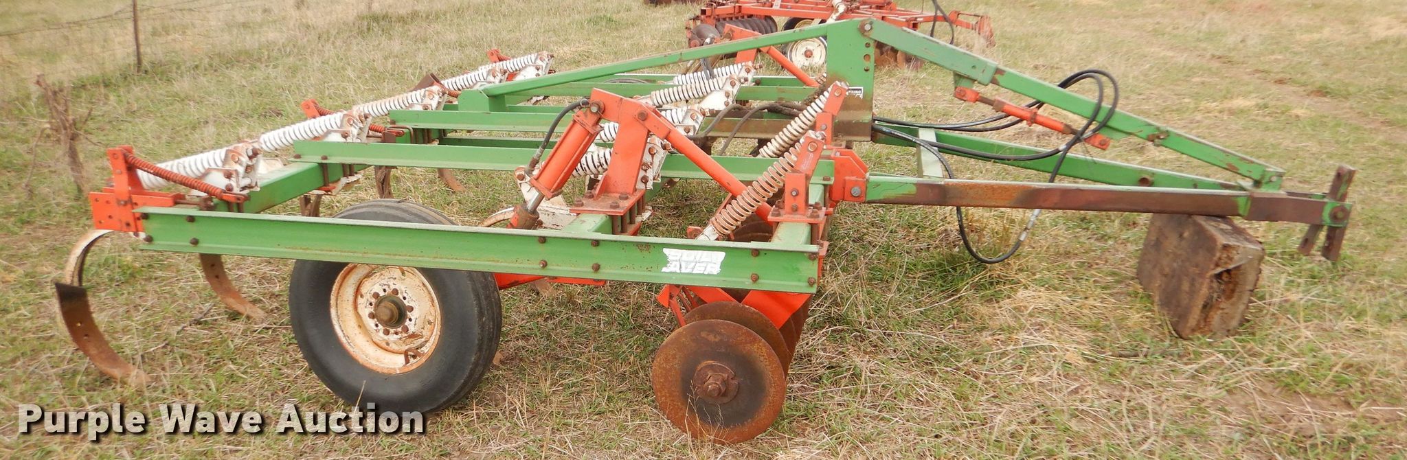 Purple Wave is selling a used Disk Ripper in Kansas. This item is a Glenco Soil Saver disk ripper with the following: 11'W, 17" diameter front disks, 8" spacing, (9) rippers, 15" spacing, 9.5L-15SL tires, Serial 153429