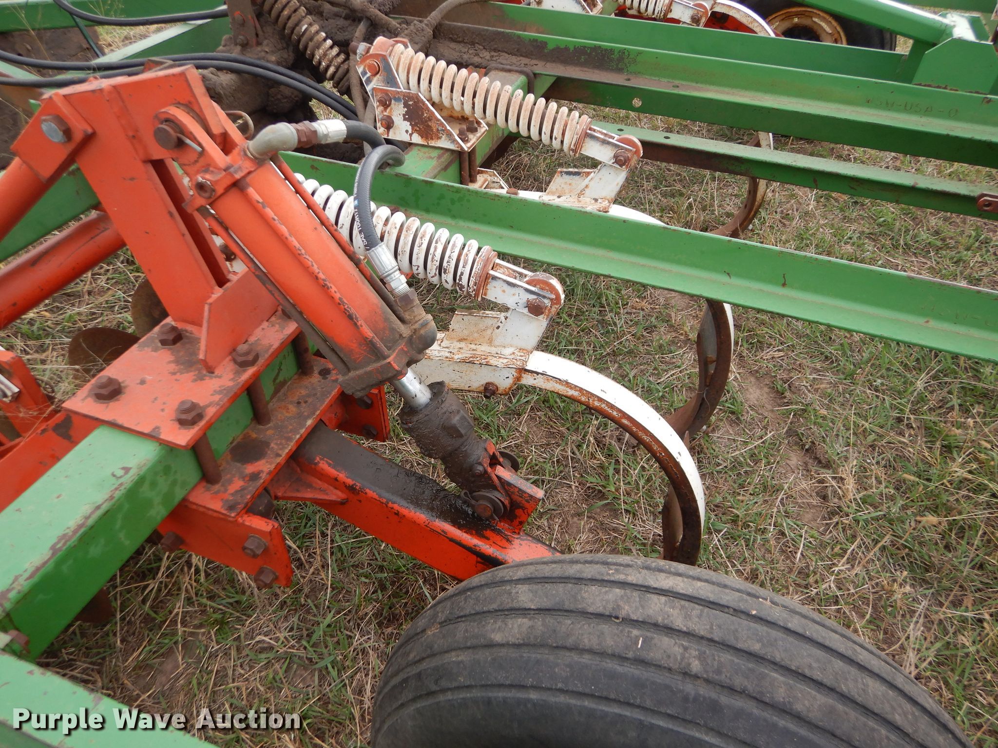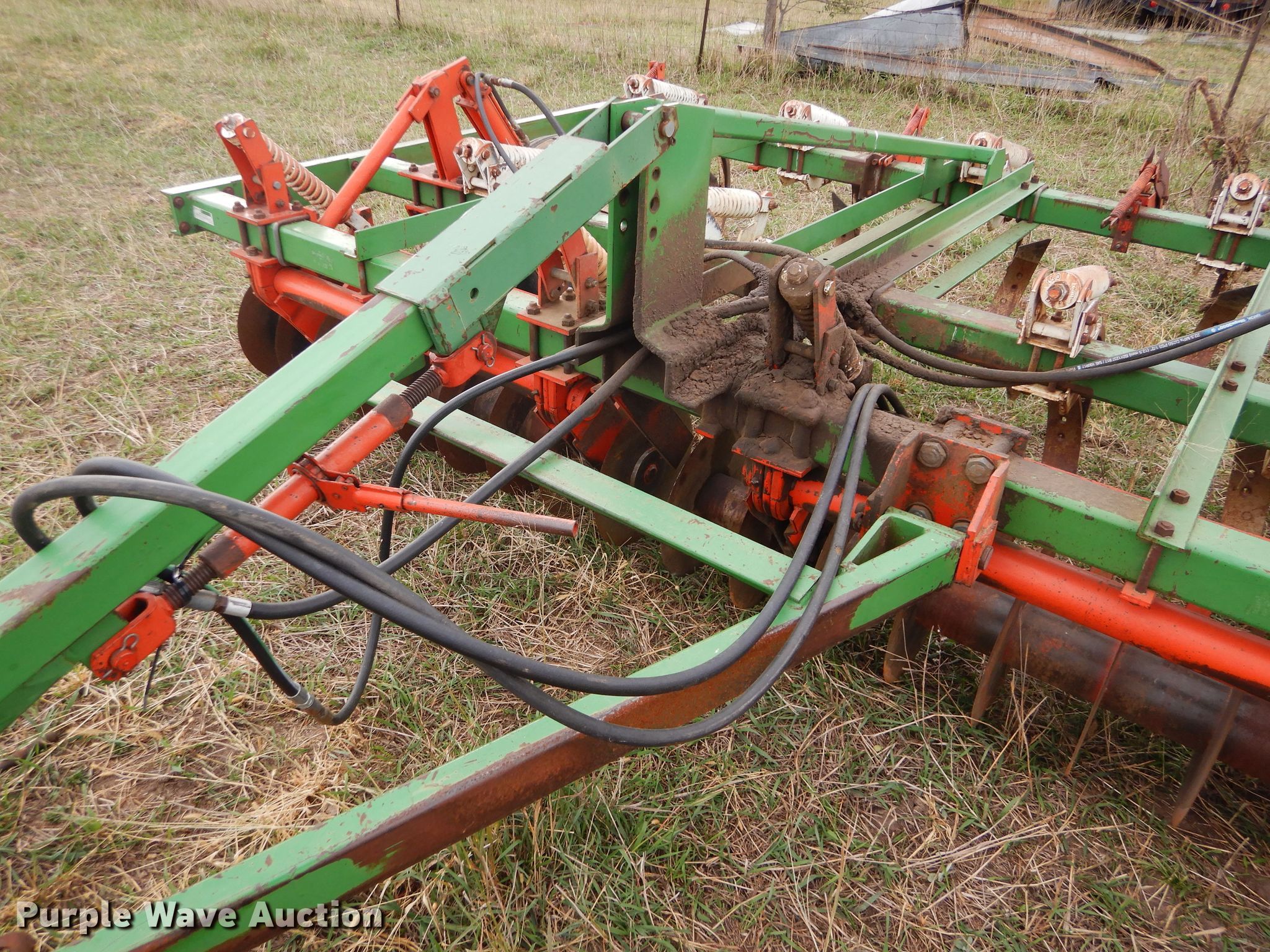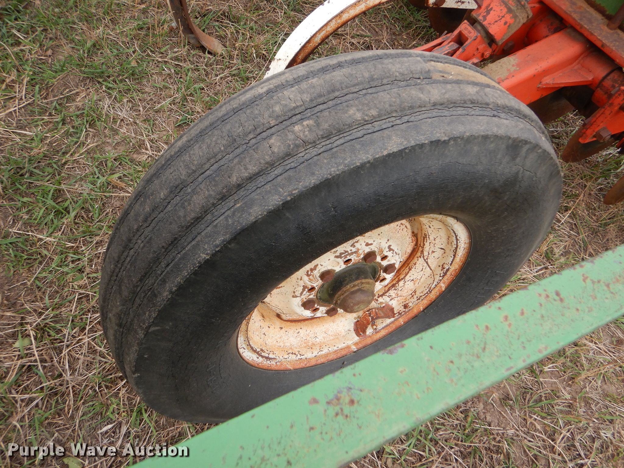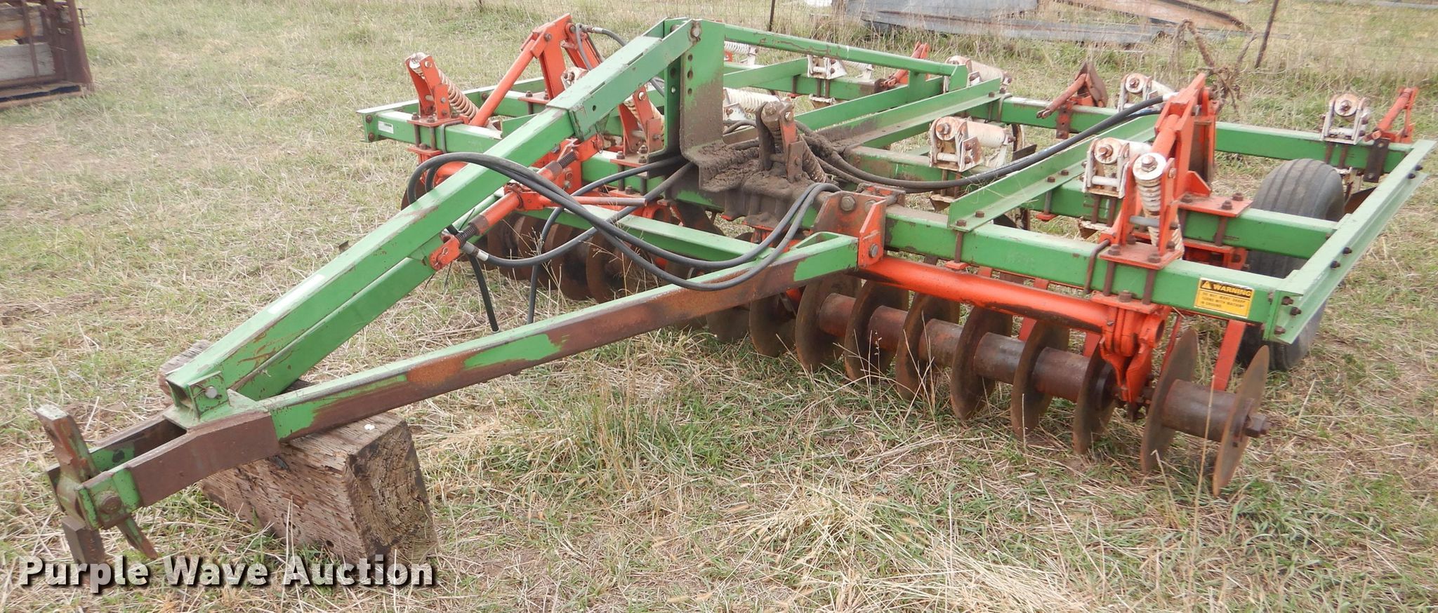 Purple Wave is selling a used Disk Ripper in Kansas. This item is a Glenco Soil Saver disk ripper with the following: 11'W, 17" diameter front disks, 8" spacing, (9) rippers, 15" spacing, 9.5L-15SL tires, Serial 153429