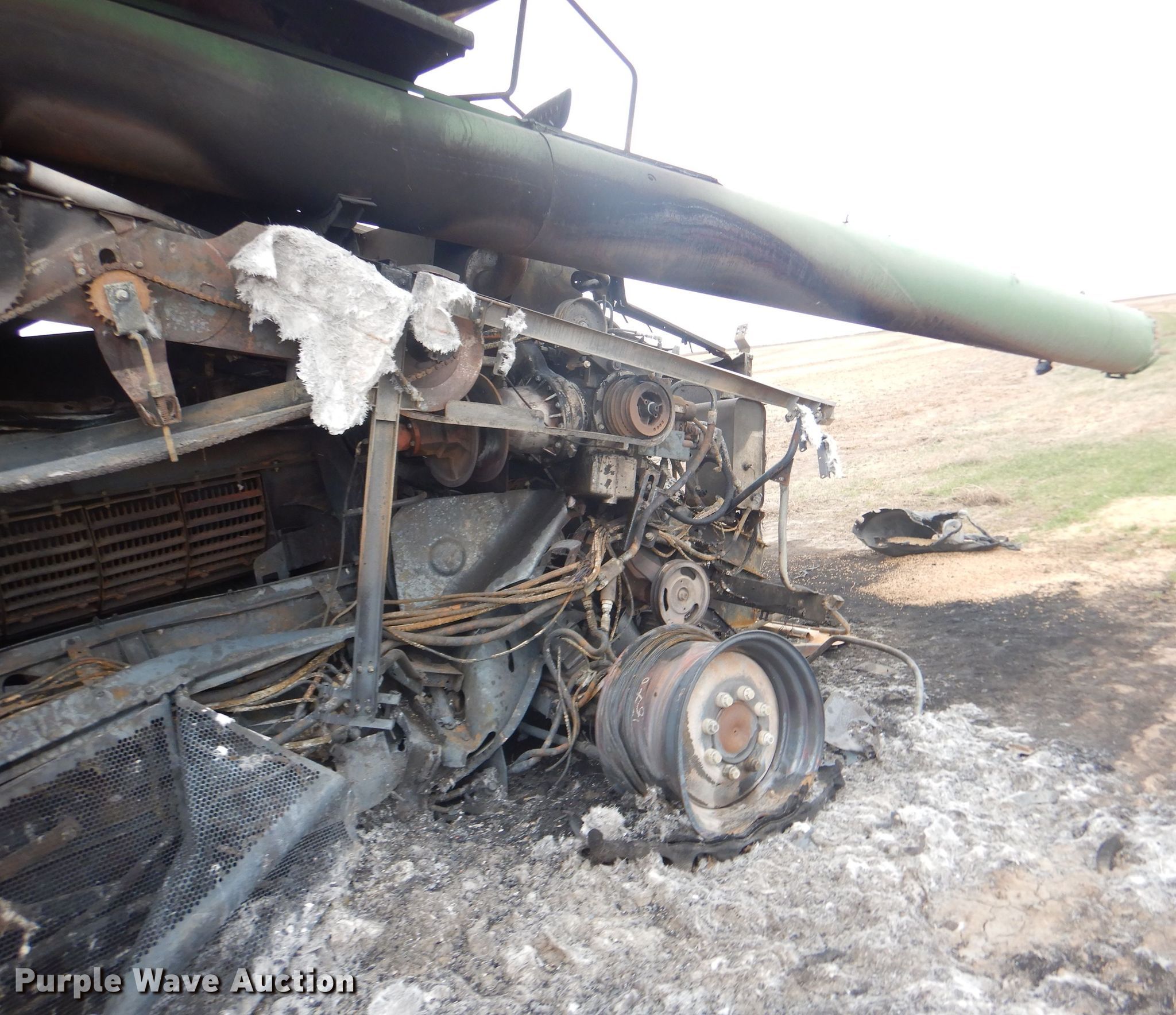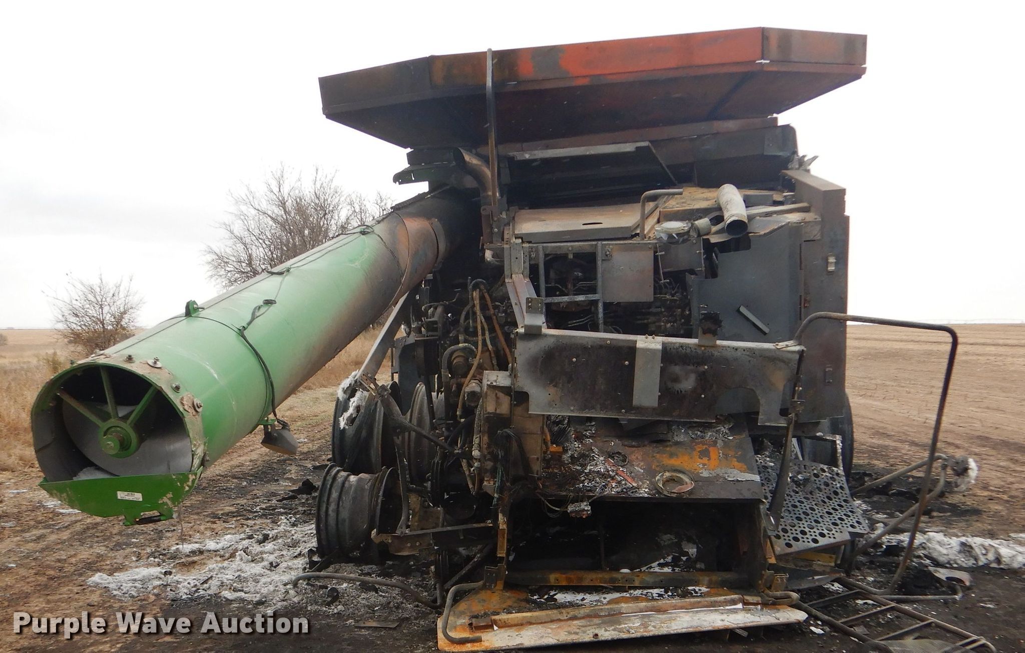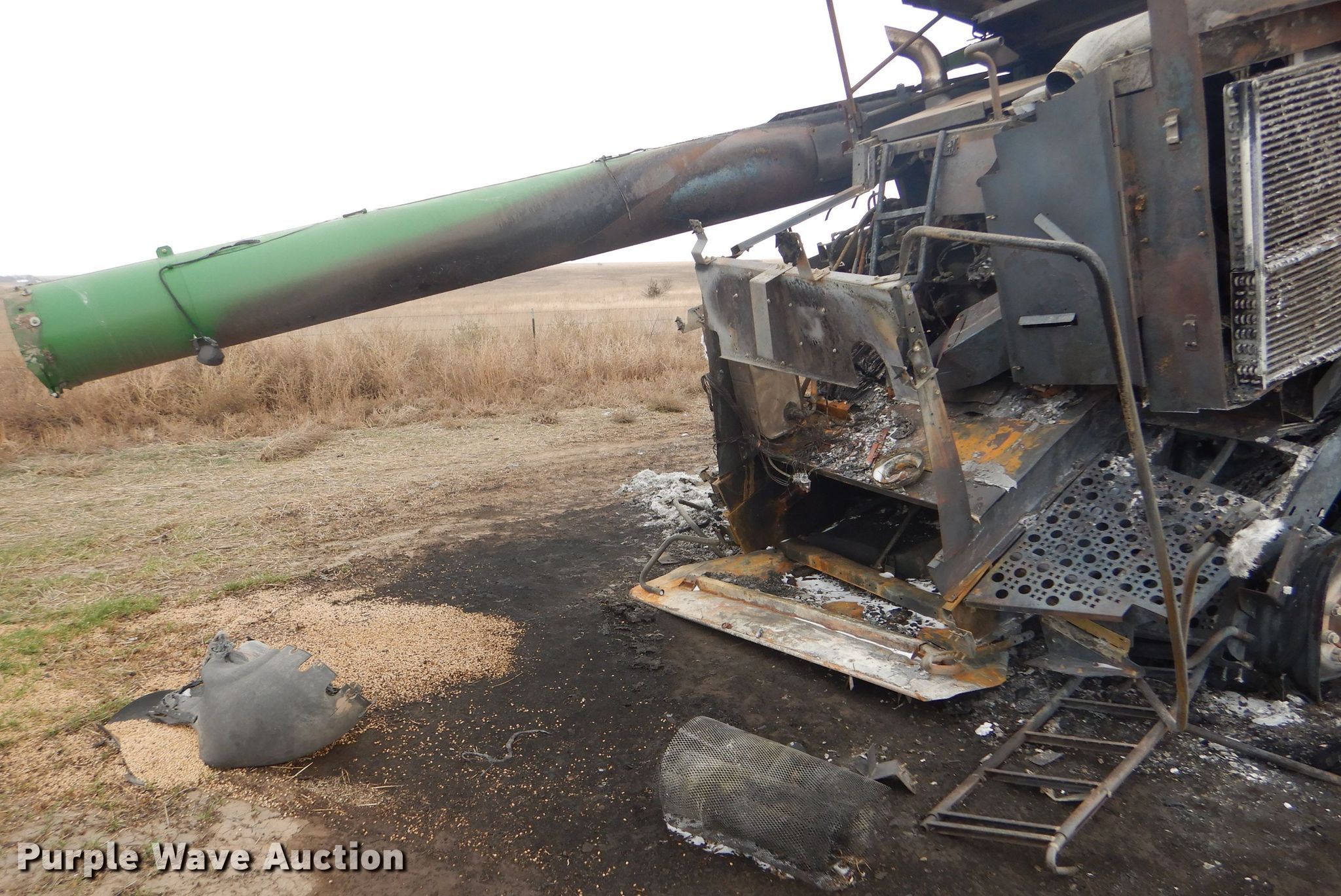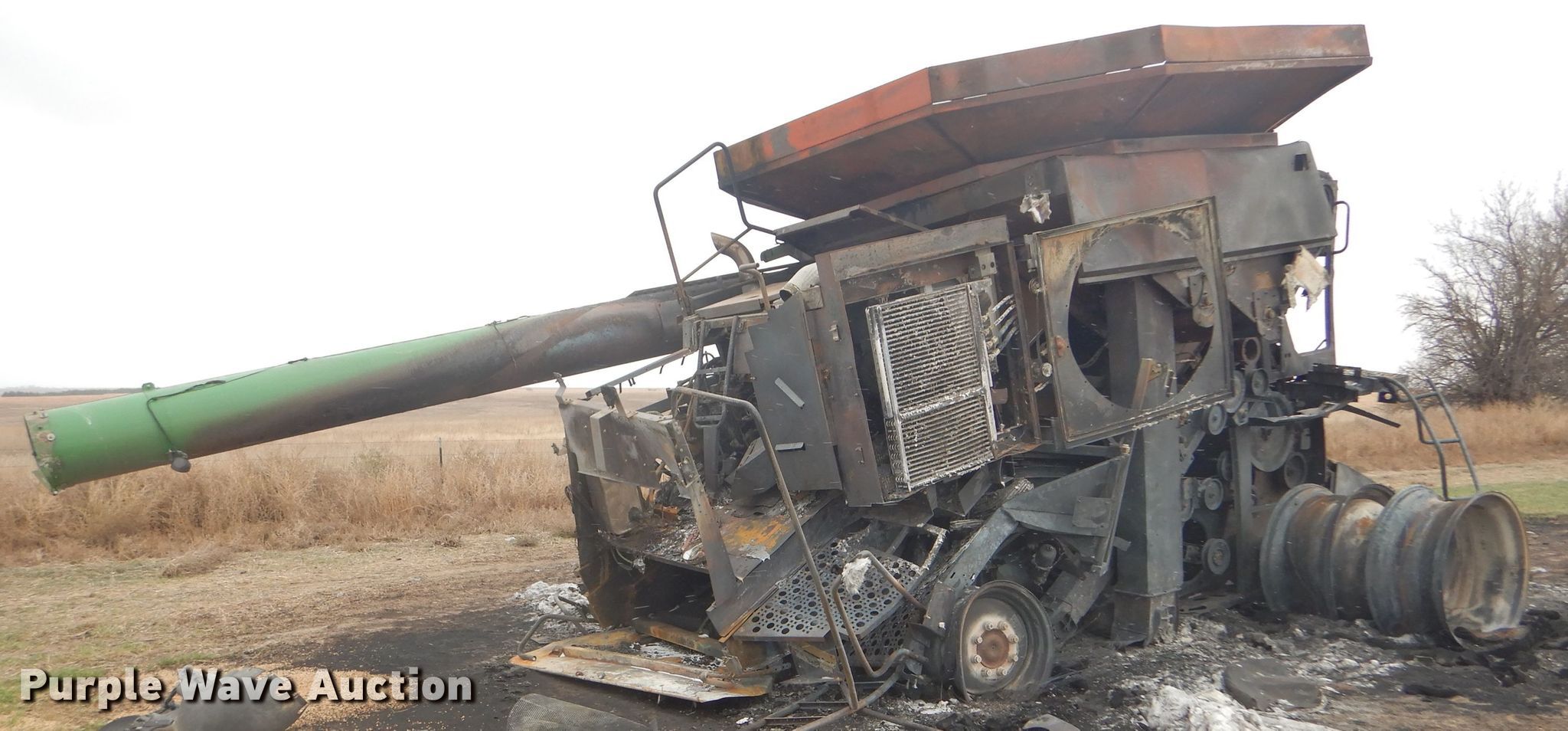 Purple Wave is selling a used Combine in Kansas. This item is a 2005 John Deere 9760 RWA combine with the following: Fire damage, Serial H09760S712477