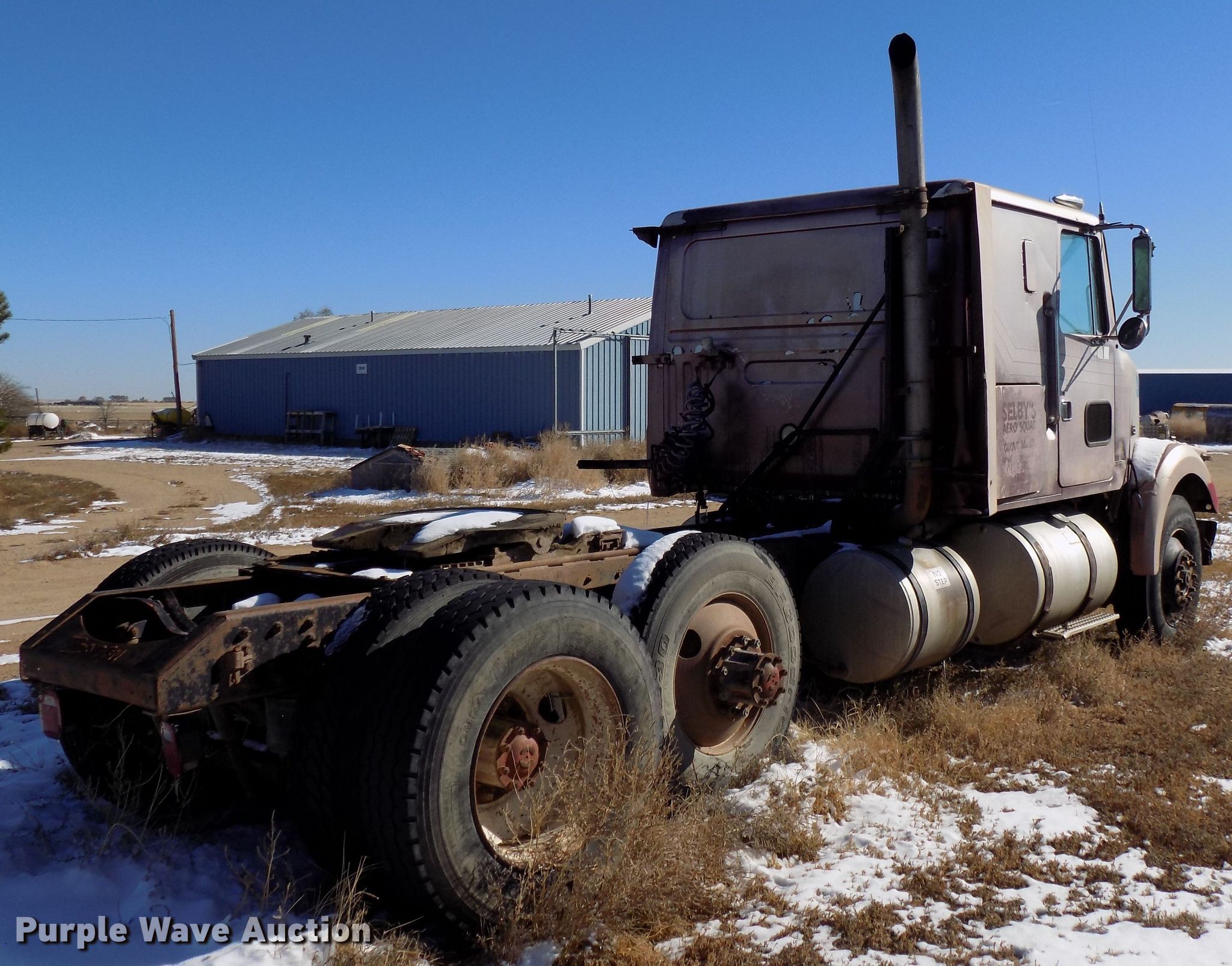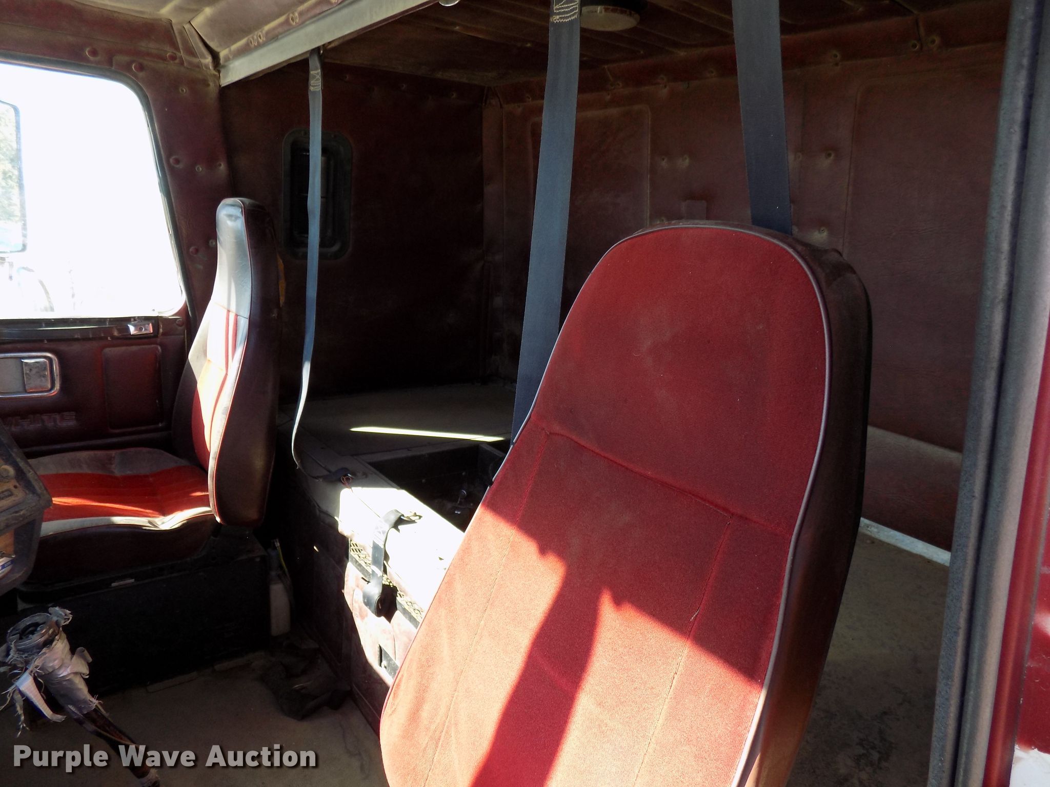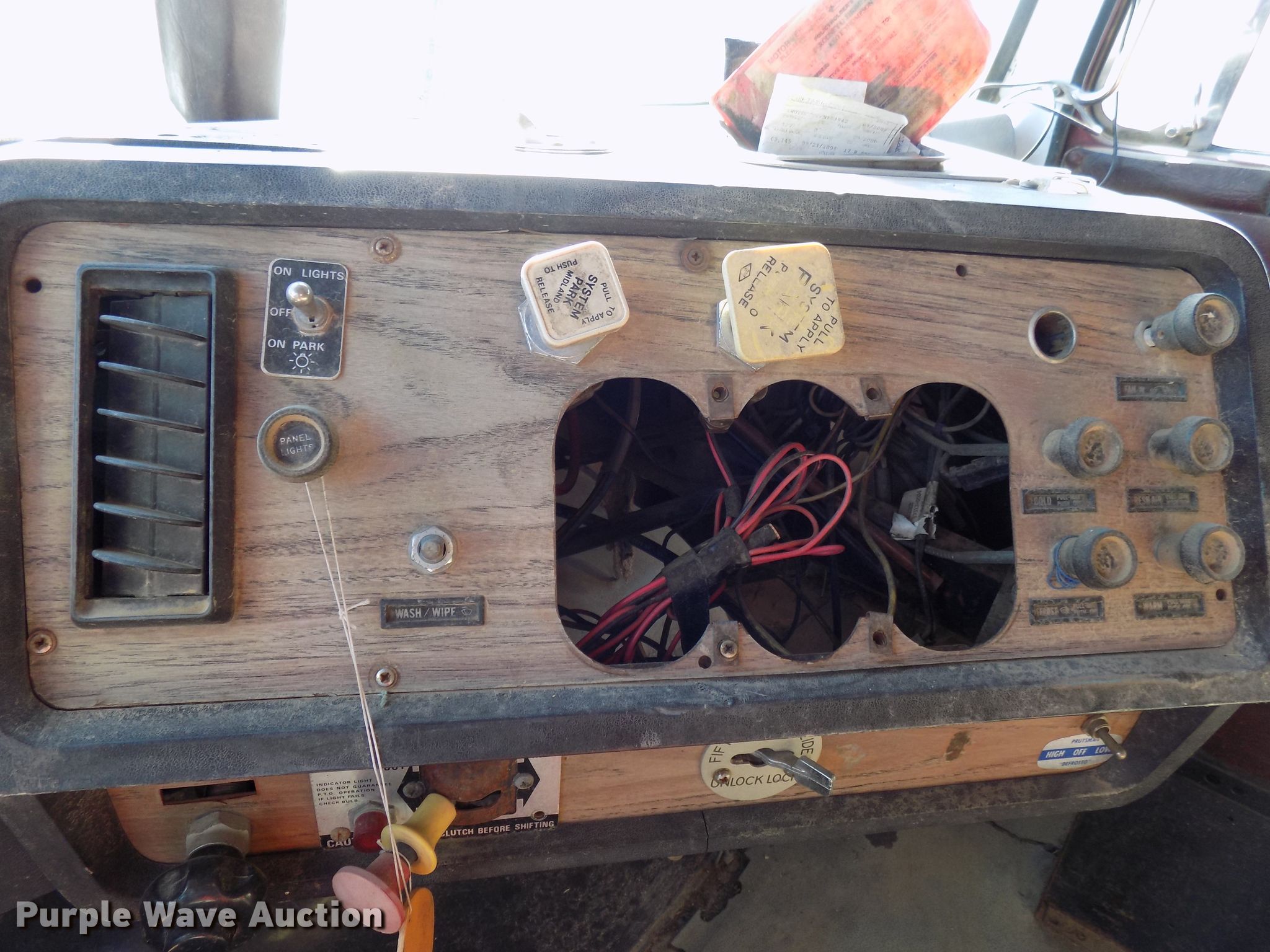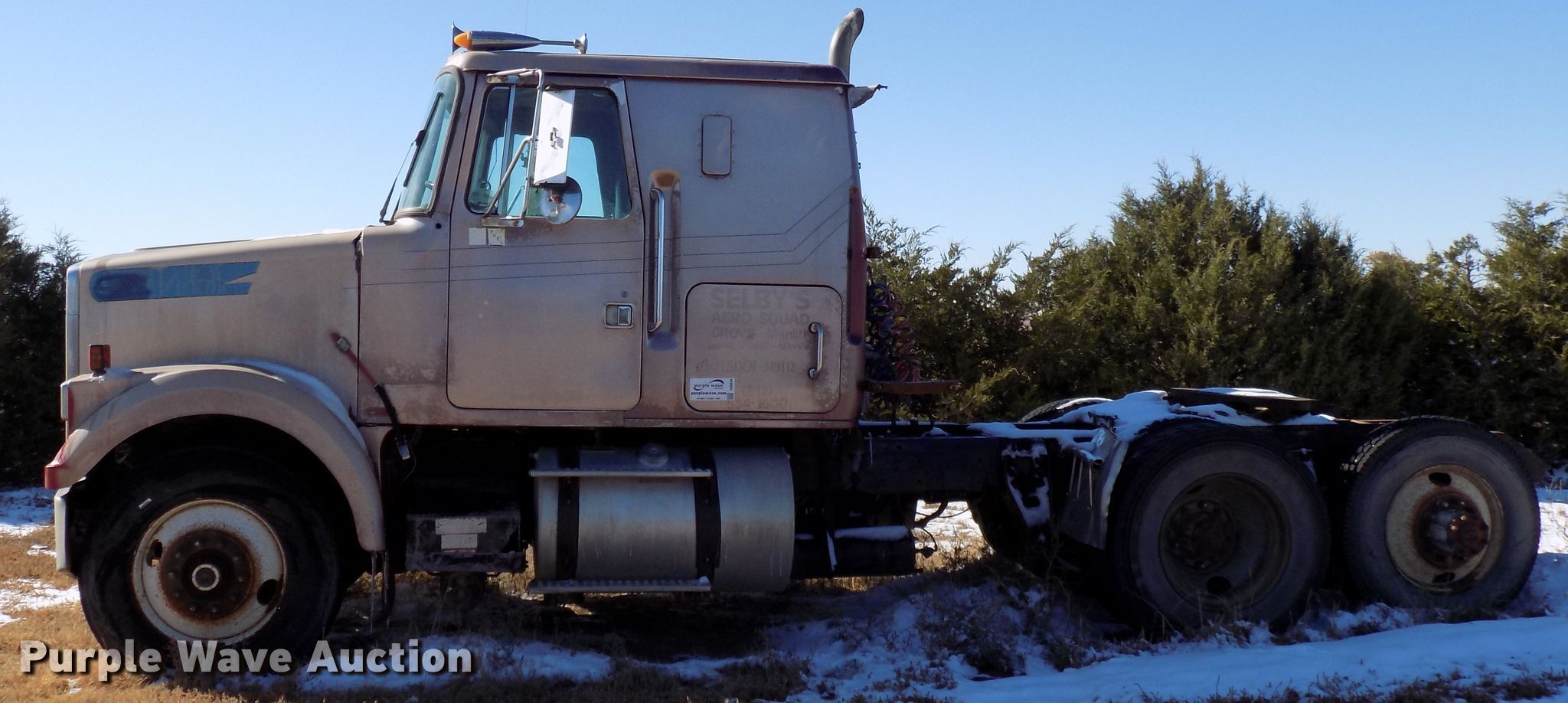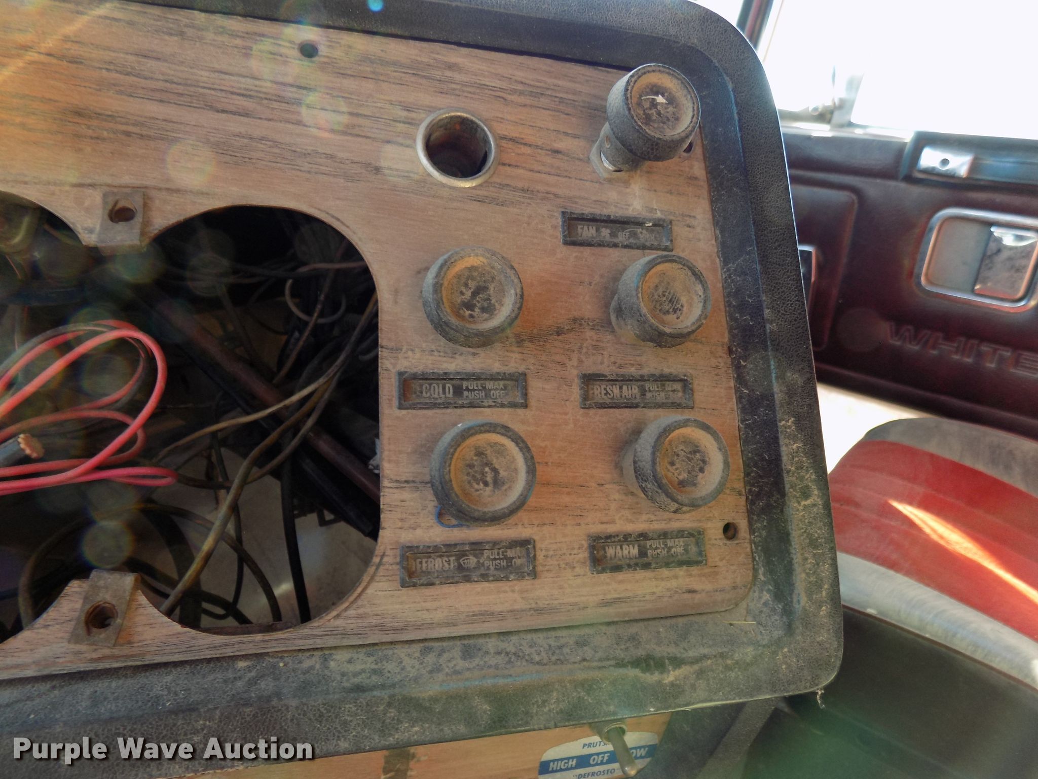 Purple Wave is selling a used Truck Tractor in Colorado. This item is a 1985 White WIM semi truck with the following: 133,566 miles on odometer, Caterpillar 3406 14.6L L6 diesel engine, Manual transmission, Tandem axle, Inter-axle differential lock, Sleeper, 36"L, PTO, Wet kit, Air operated sliding fifth wheel plate, Dual fuel tanks, Air suspension, Air brakes, 207" wheelbase, 11R24.5 tires, (2) tires missing, Non-operational clutch, Non-operational unit