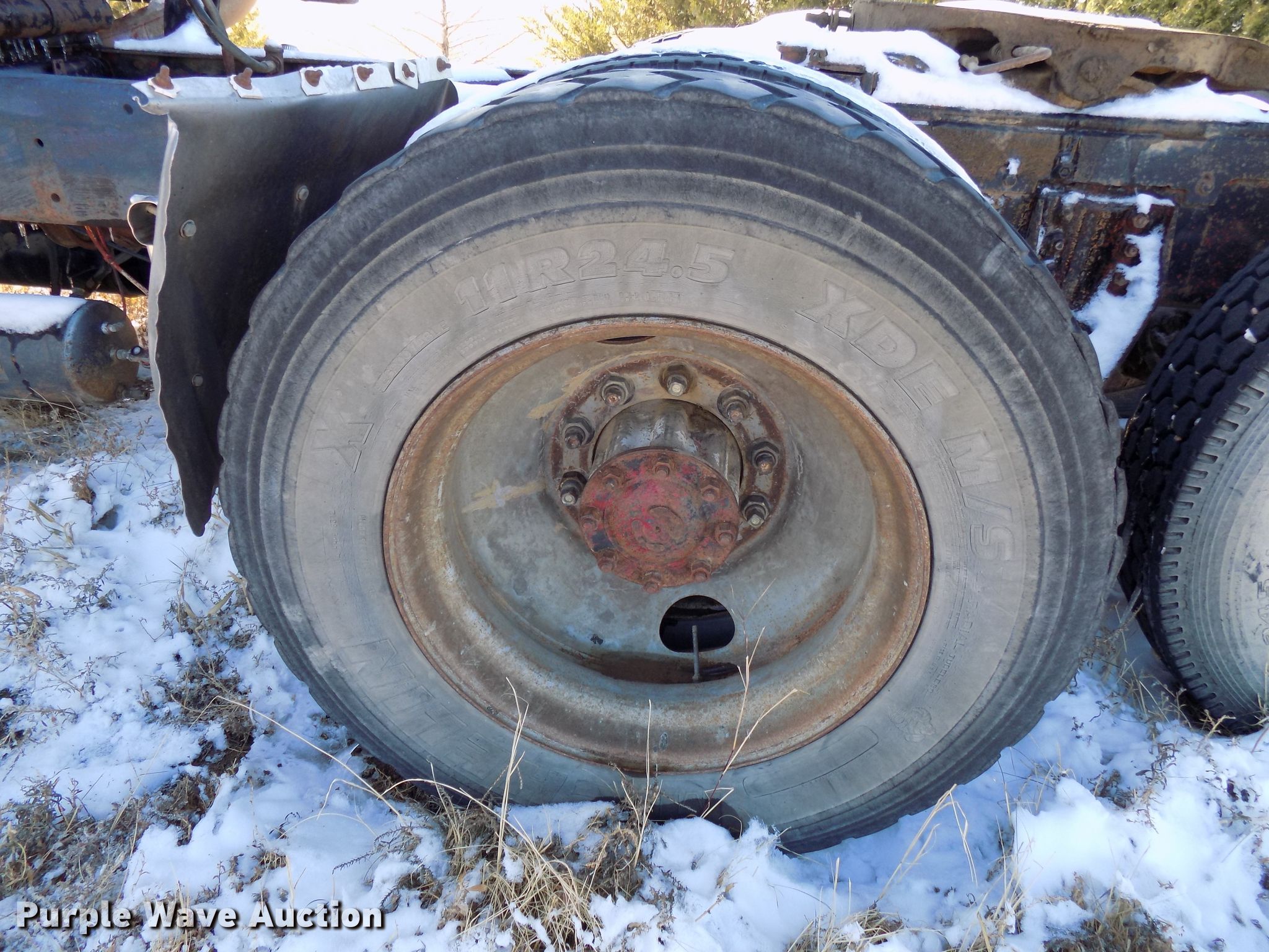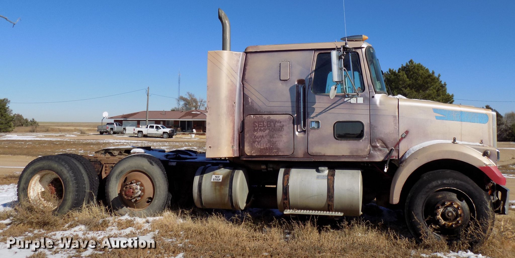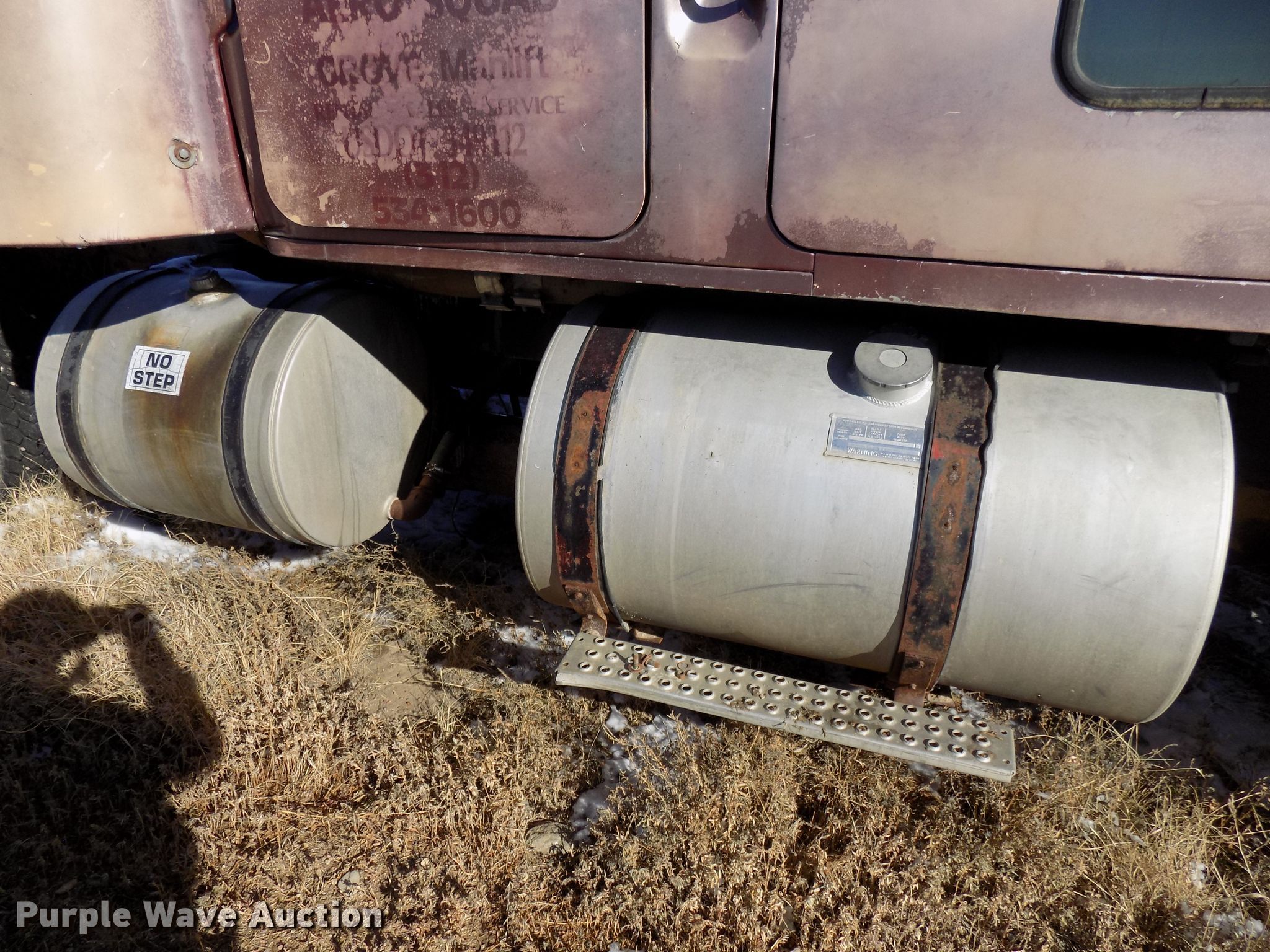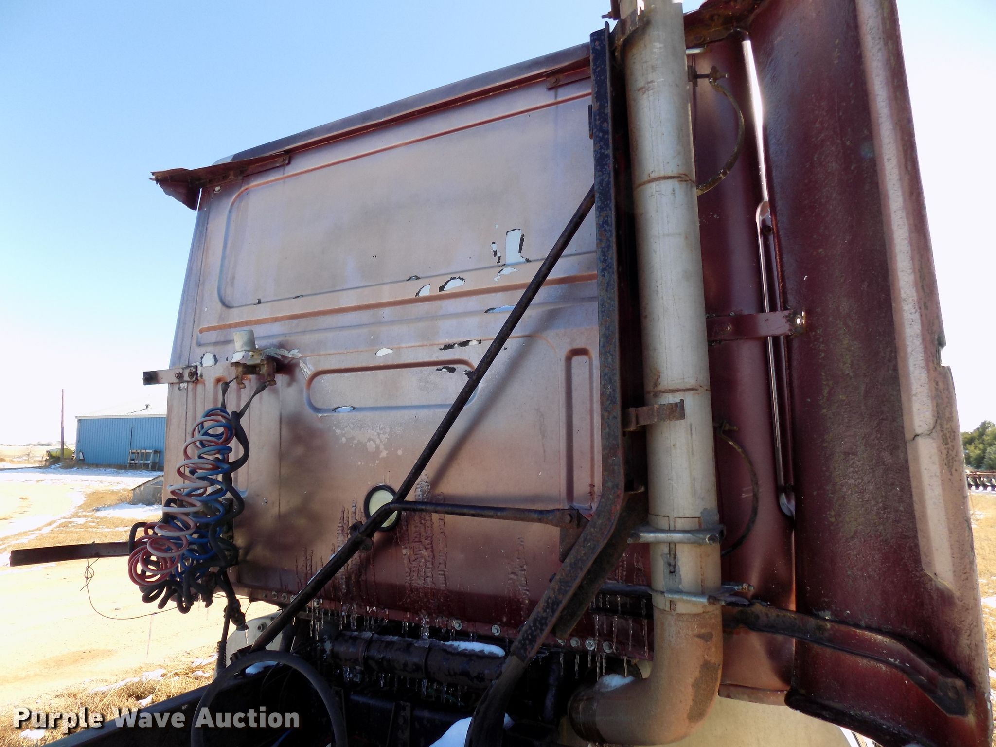 Purple Wave is selling a used Truck Tractor in Colorado. This item is a 1985 White WIM semi truck with the following: 133,566 miles on odometer, Caterpillar 3406 14.6L L6 diesel engine, Manual transmission, Tandem axle, Inter-axle differential lock, Sleeper, 36"L, PTO, Wet kit, Air operated sliding fifth wheel plate, Dual fuel tanks, Air suspension, Air brakes, 207" wheelbase, 11R24.5 tires, (2) tires missing, Non-operational clutch, Non-operational unit