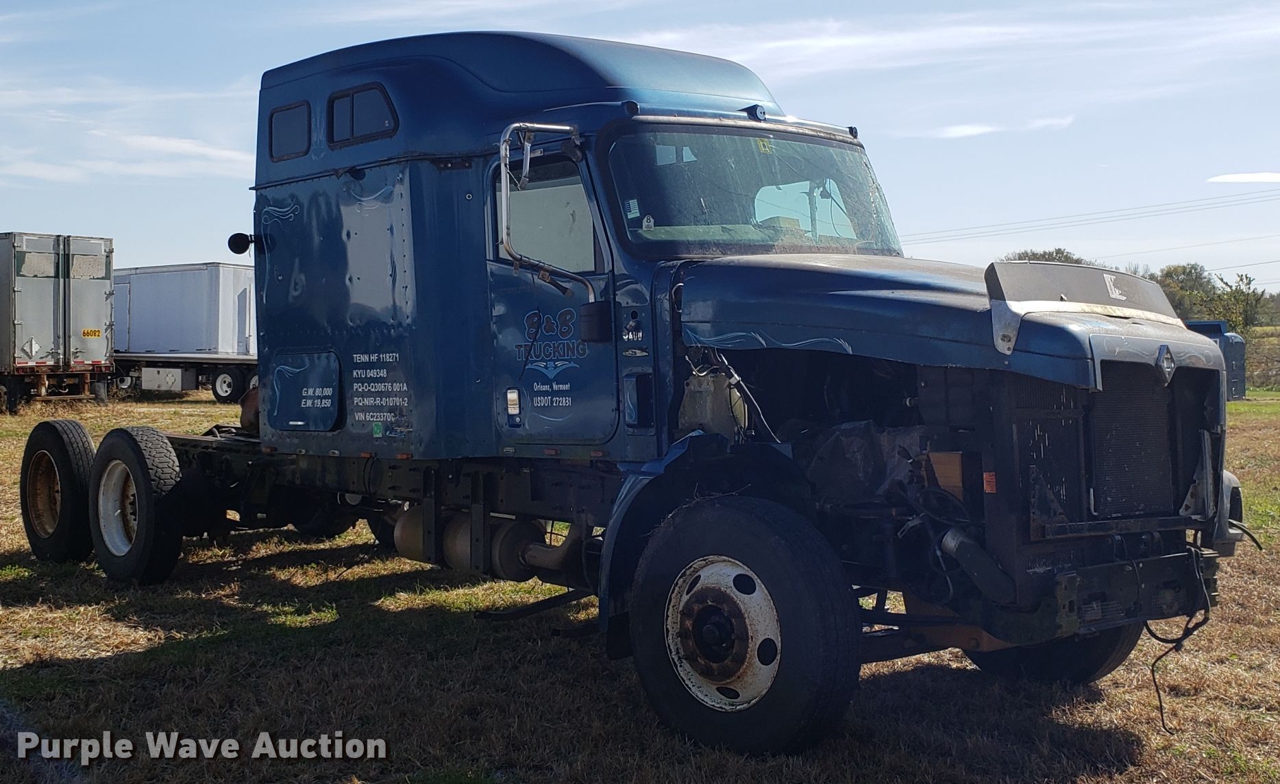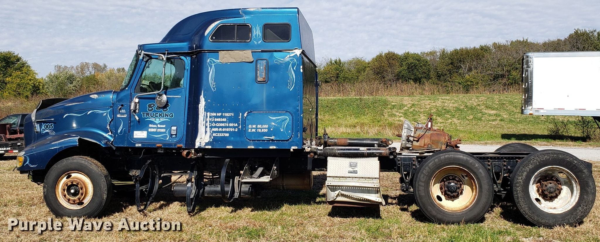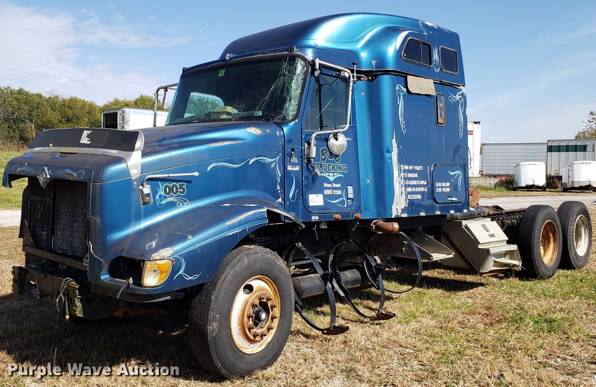 Purple Wave is selling a used Truck Chassis in Missouri. This item is a 2006 International 9400i truck cab and chassis with the following: Unknown miles on odometer, Caterpillar C15 15.2L L6 diesel engine, Tandem axle, Sleeper, Single bed, Air suspension, 11R24.5 tires, GVWR 52,000 lbs, FAWR 12,000 lbs, IAWR 20,000 lbs, RAWR 20,000 lbs, Parts missing, Non-operational unit, parts only