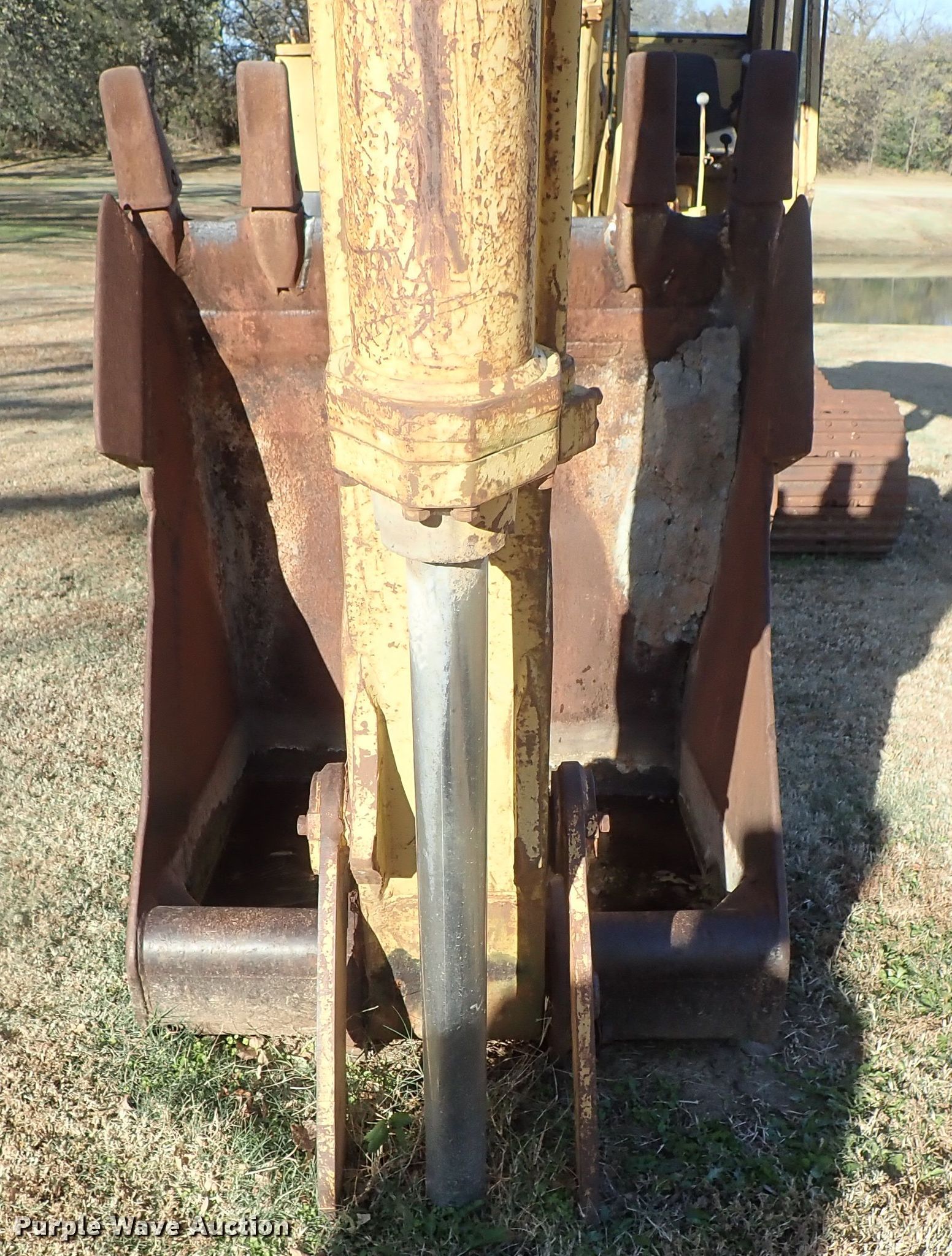 Purple Wave is selling a used Hydraulic Excavator in Kansas. This item is a Caterpillar 225 excavator with the following: Unknown hours on meter, No engine, Hydrostatic transmission, Enclosed cab, Standard boom, 10' stick length, 47"W bucket, Weld-on cutting edge, (6) teeth, 22"W steel track pads, Glass cracked, Non-operational unit
