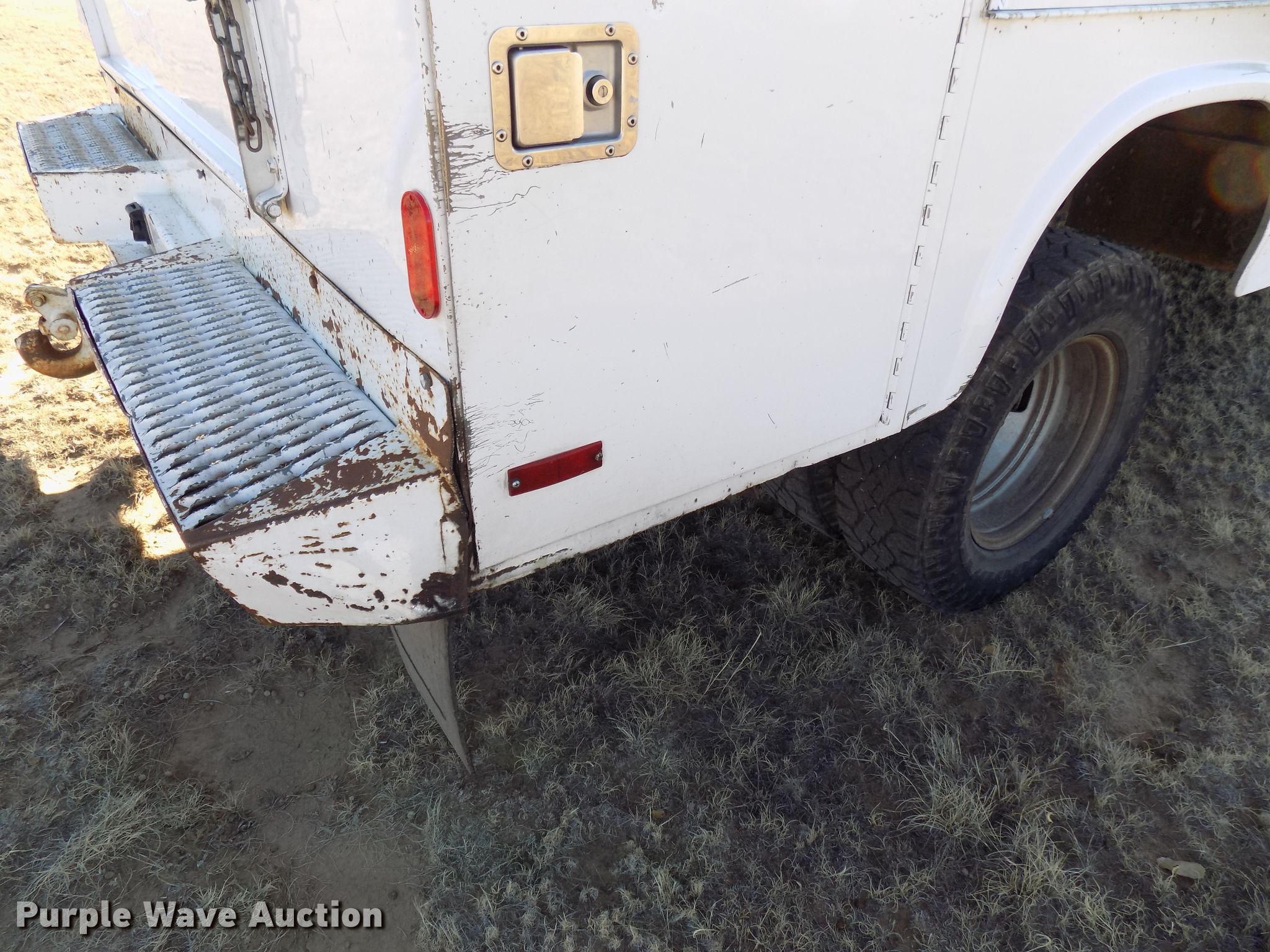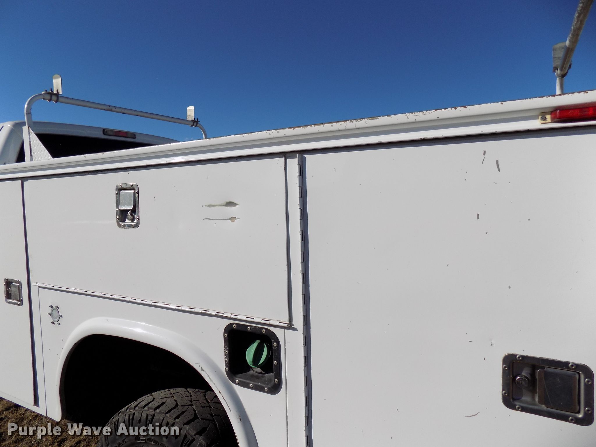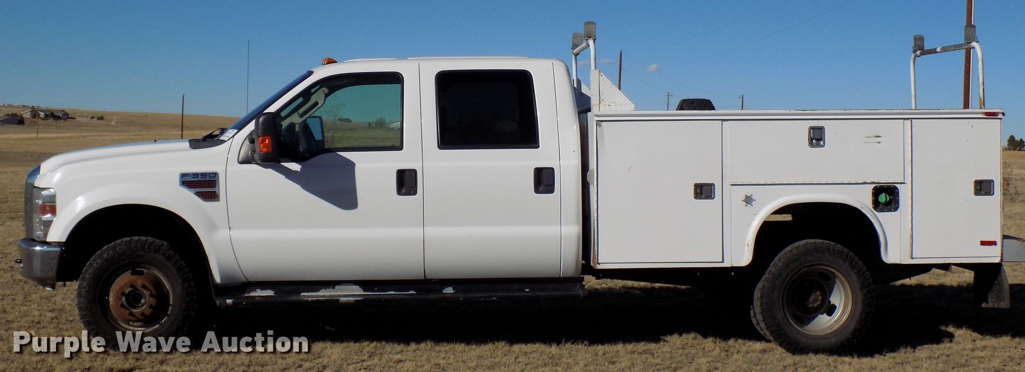 Purple Wave is selling a used 3/4 or 1 Ton Pickup or Van in Colorado. This item is a 2009 Ford F350 Super Duty Crew Cab utility bed pickup truck with the following: 199,299 miles on odometer, Miles may vary, unit still in use, 6.4L V8 OHV 32V diesel engine, Automatic transmission, Four wheel drive, AC, 10'L x 94"W utility bed, 245/75R17 tires, Windshield cracked, Contents not included