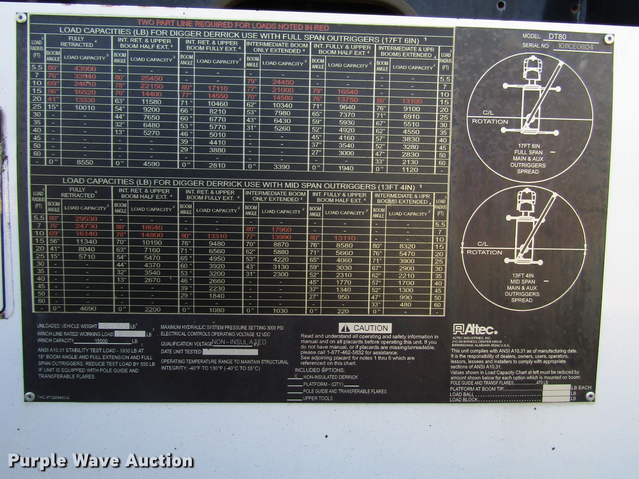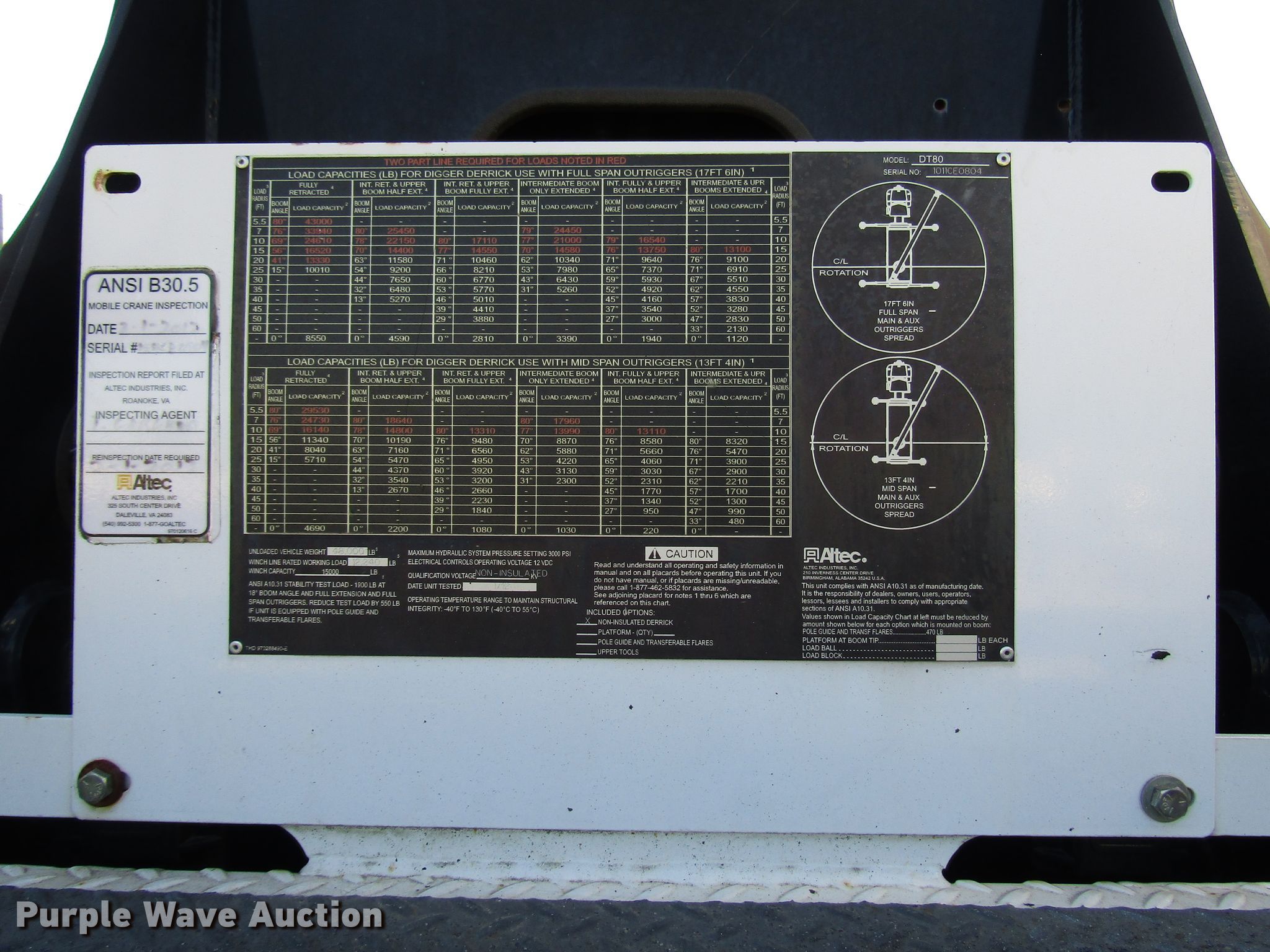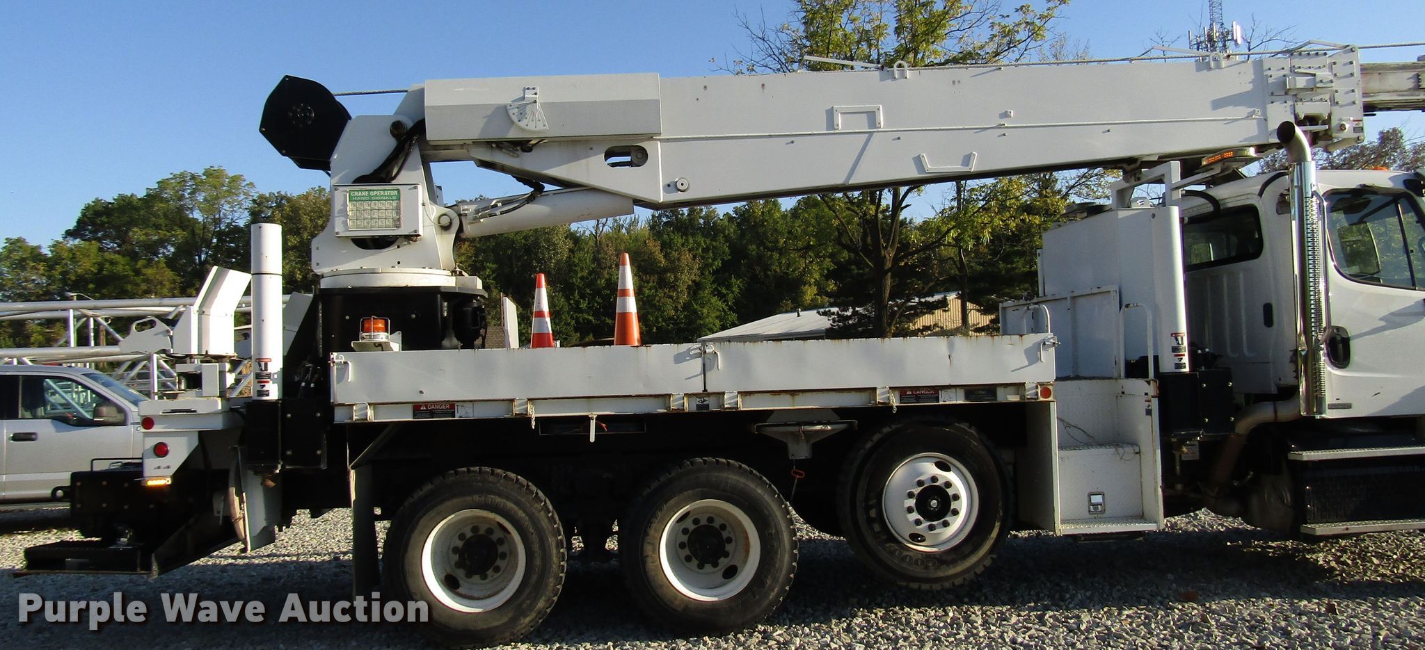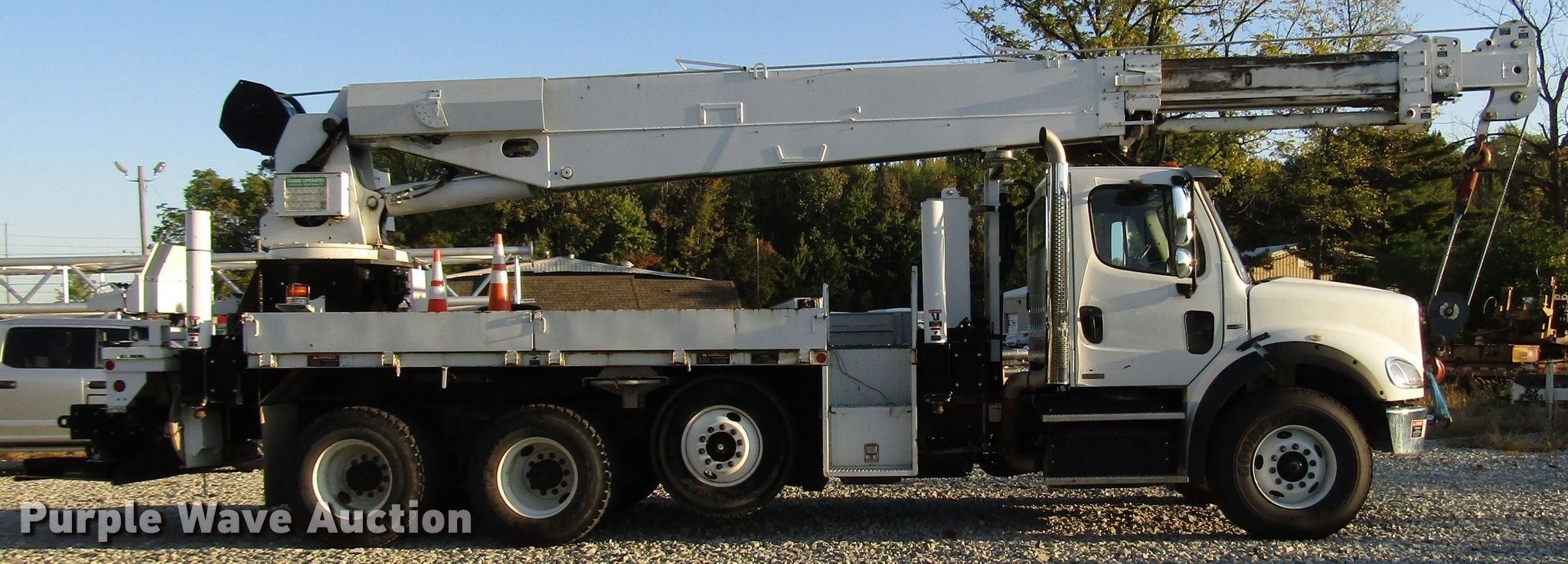 Purple Wave is selling a used Crane Truck in Indiana. This item is a 2012 Freightliner Business Class M2 crane truck with the following: 12,511 miles on odometer, 2,335 hours on meter, Detroit Diesel DD13 12.8L L6 diesel engine, Automatic transmission, Triple axle, AC and heat, Power windows and locks, Heated mirrors, Brake controller, PTO, Altec 22'L flatbed, Serial 94-1979-516, Altec DT80 telescopic boom, 15,000 lbs maximum lift capacity, 79.8' maximum lift height, Platform controls, Material handler, Serial 1011CE0804, Spring suspension, Air brakes, 425/65R22.5 front tires, 11R22.5 rear tires, GVWR 68,000 lbs, ABS light on