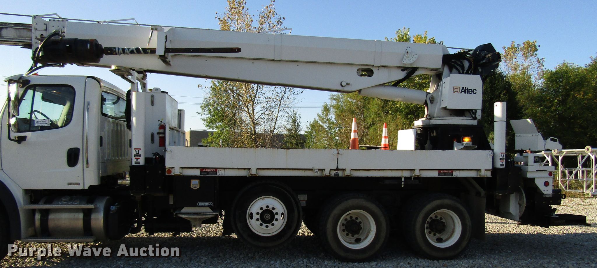 2012 Freightliner Business Class M2 crane truck. 12,511 miles on odometer, 2,335 hours on meter, Detroit Diesel DD13 12.8L L6 diesel engine, Automatic transmission, Triple axle, AC and heat, Power windows and locks, Heated mirrors, Brake controller, PTO, Altec 22'L flatbed Serial 94-1979-516, Altec DT80 telescopic boom 15,000 lbs maximum lift capacity, 79.8' maximum lift height, Platform controls, Material handler, Serial 1011CE0804, Spring suspension, Air brakes, 425/65R22.5 front tires, 11R22.5 rear tires, GVWR 68,000 lbs, ABS light on. Indiana title. 1FVMC5DV7CHBN3550. James H. Drew Corp... 8701 Zionsville Rd. Indianapolis, IN 46268
