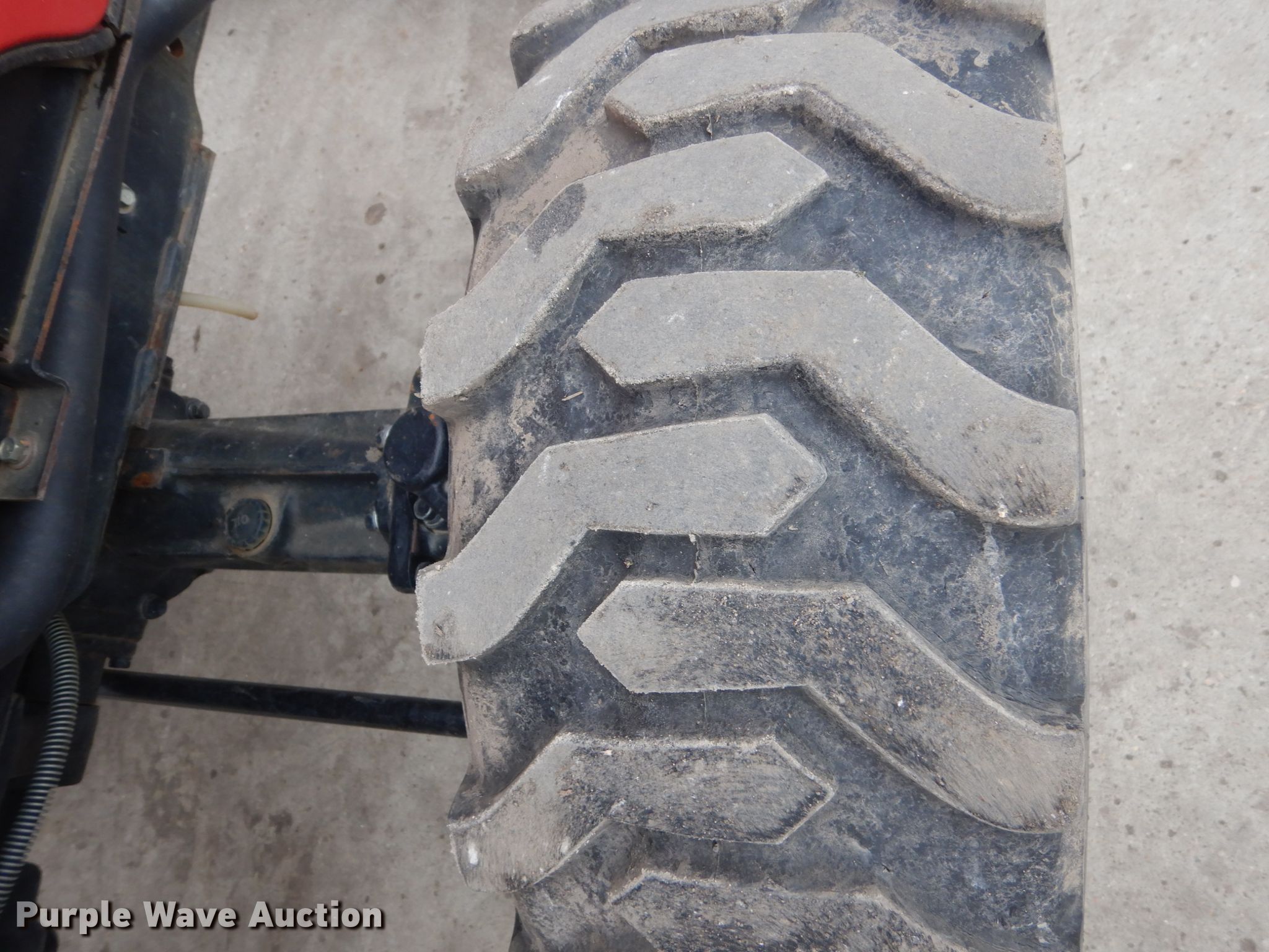 Purple Wave is selling a used Tractor in Iowa. This item is a 2014 Mahindra 1533 HST MFWD tractor with the following: 281 hours on meter, Four cylinder diesel engine, Model CE-33, Hydrostatic transmission, Differential lock, Loader, Model 1538L, 57"W bucket, Quick attach, Joystick controls, Three point, Top link, 540 PTO, Rear hydraulic remote, 27x8.50-15 front tires, 15-19.5 rear tires, Serial 33H141120035