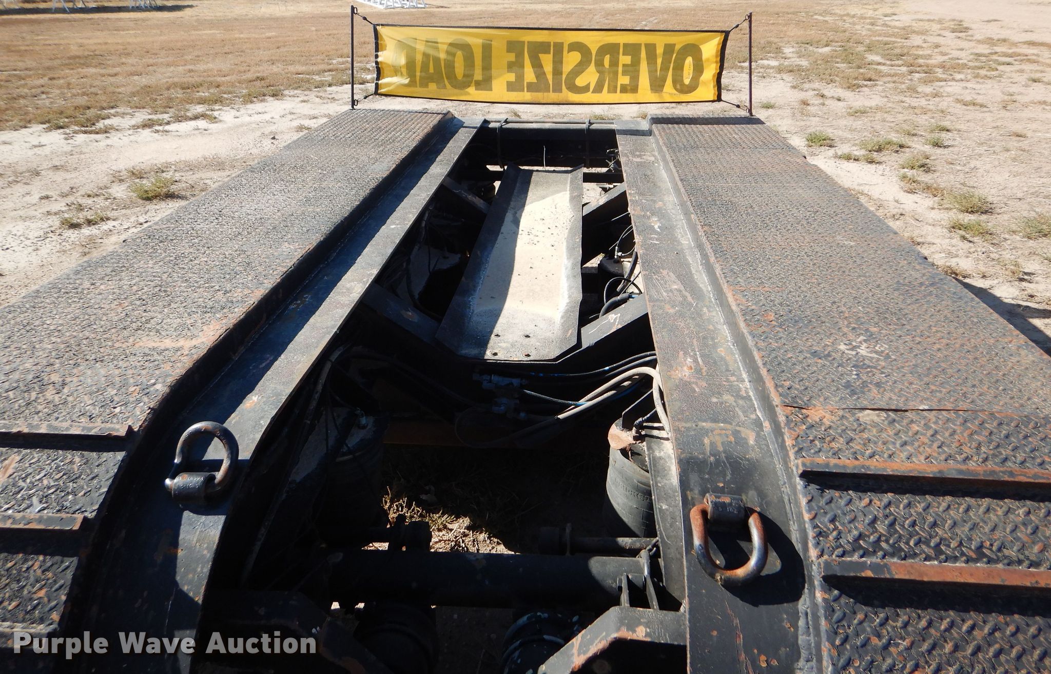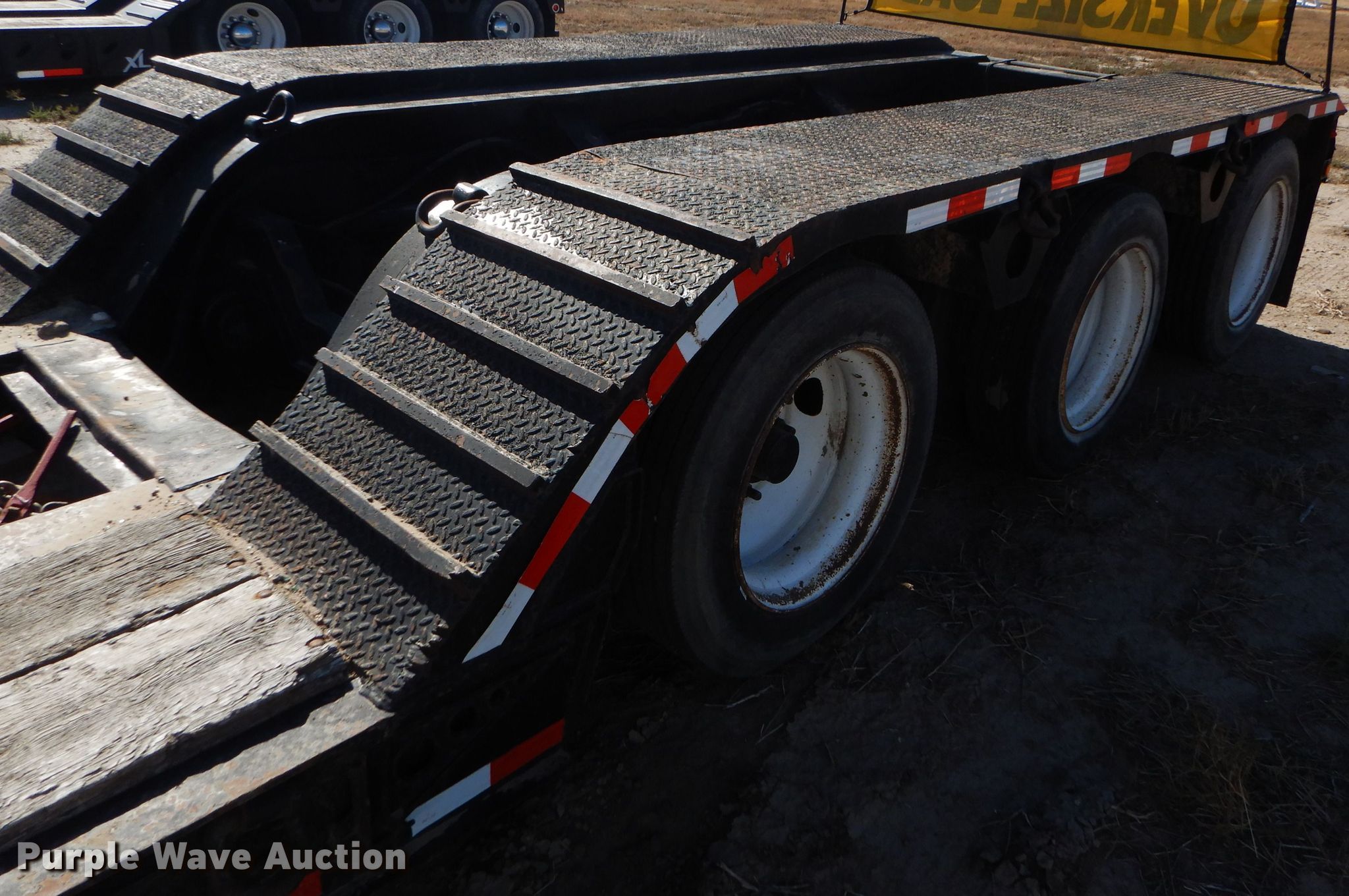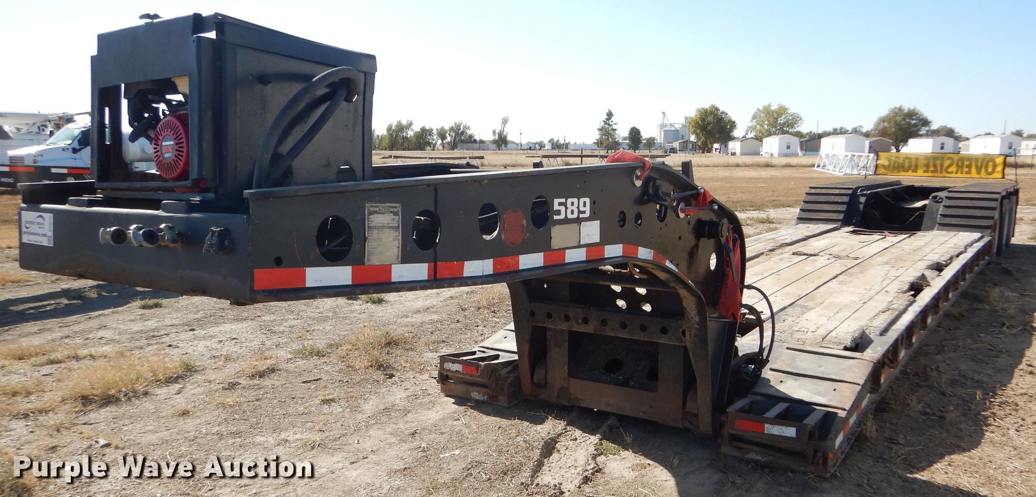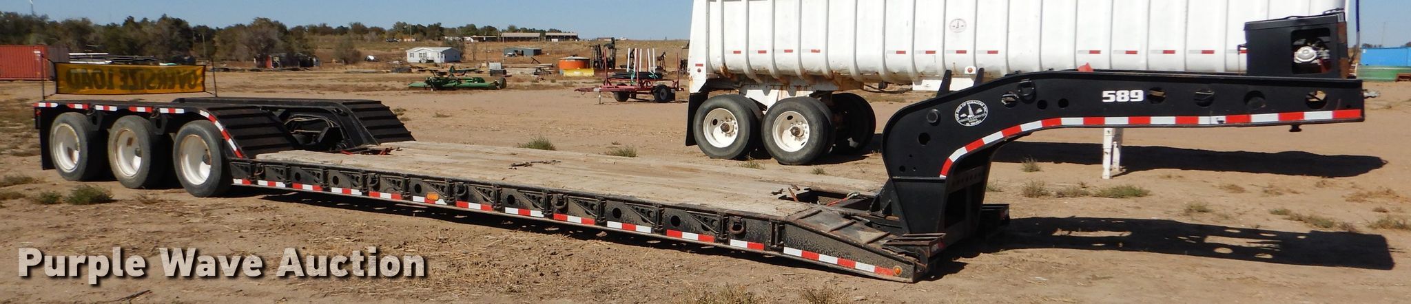 Purple Wave is selling a used Equip. Trailer in Kansas. This item is a 2000 Fontaine HRGTT-7-50NGBAW lowboy equipment trailer with the following: 50'L x 102"W overall, 22'L steel and wood main deck, 11'L rear deck, 15"L ramps, 12"W swing-out outriggers, 50 ton capacity, Detachable neck, Self contained hydraulics, Honda gas engine, Air suspension, Air brakes, Triple axle, Steel wheels, 255/70R22.5 tires, GVWR 118,686 lbs, Unit# 589