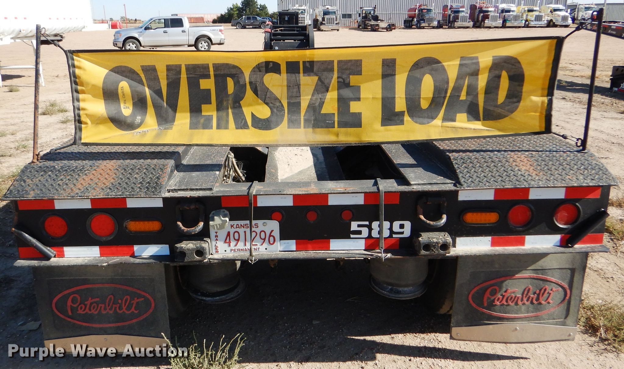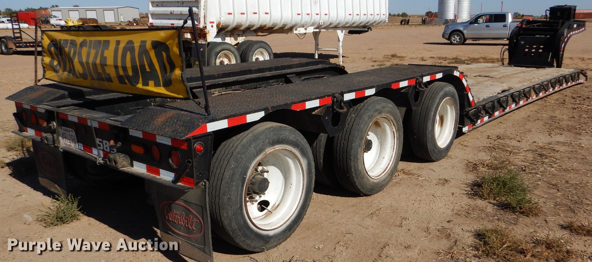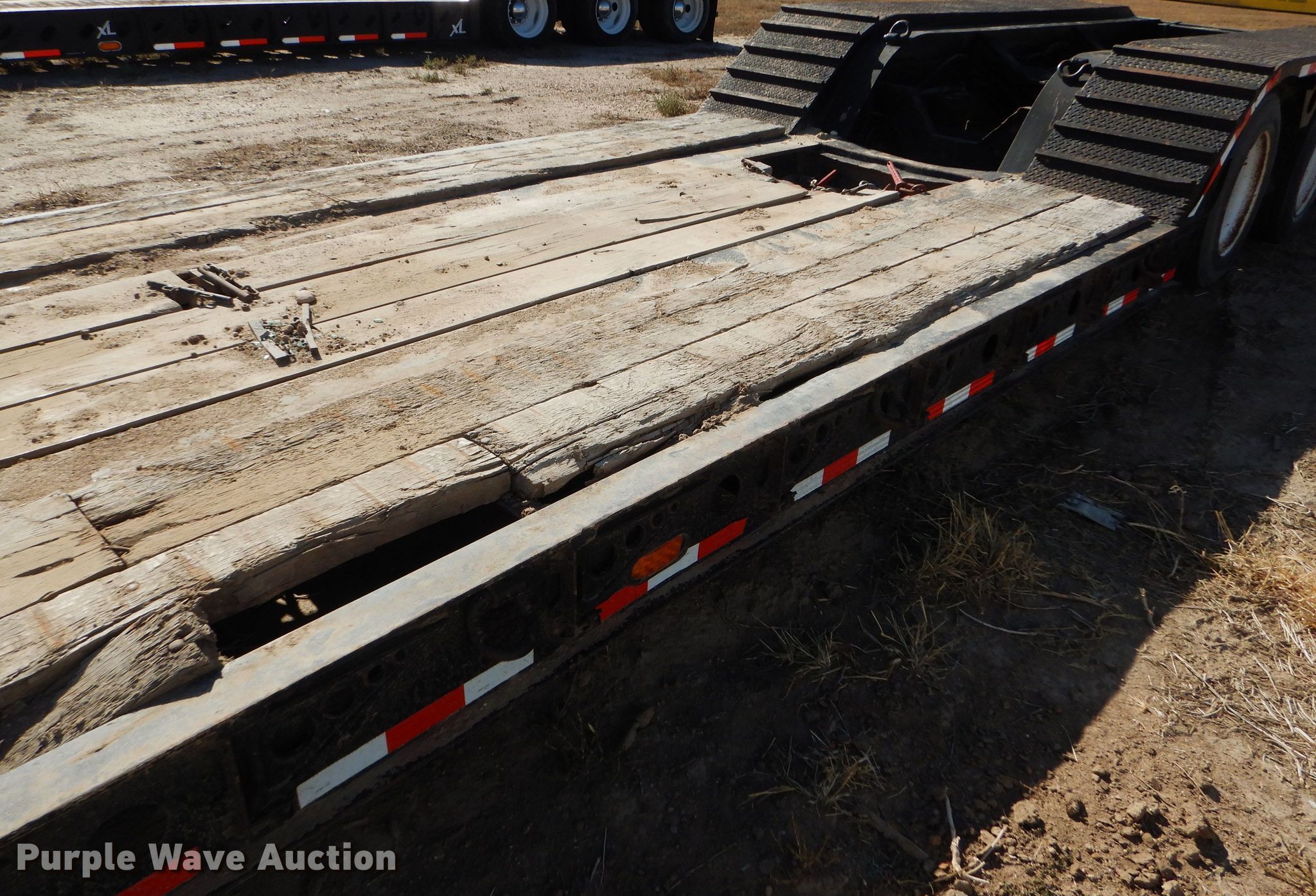 Purple Wave is selling a used Equip. Trailer in Kansas. This item is a 2000 Fontaine HRGTT-7-50NGBAW lowboy equipment trailer with the following: 50'L x 102"W overall, 22'L steel and wood main deck, 11'L rear deck, 15"L ramps, 12"W swing-out outriggers, 50 ton capacity, Detachable neck, Self contained hydraulics, Honda gas engine, Air suspension, Air brakes, Triple axle, Steel wheels, 255/70R22.5 tires, GVWR 118,686 lbs, Unit# 589