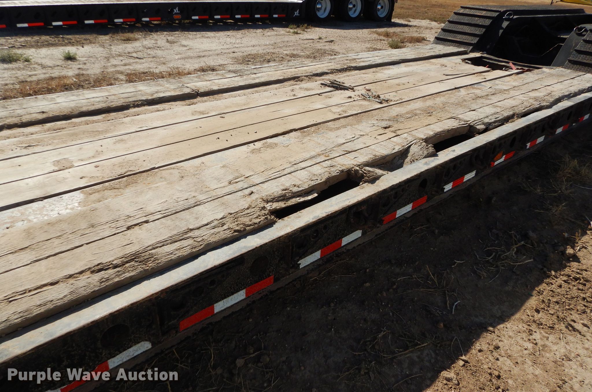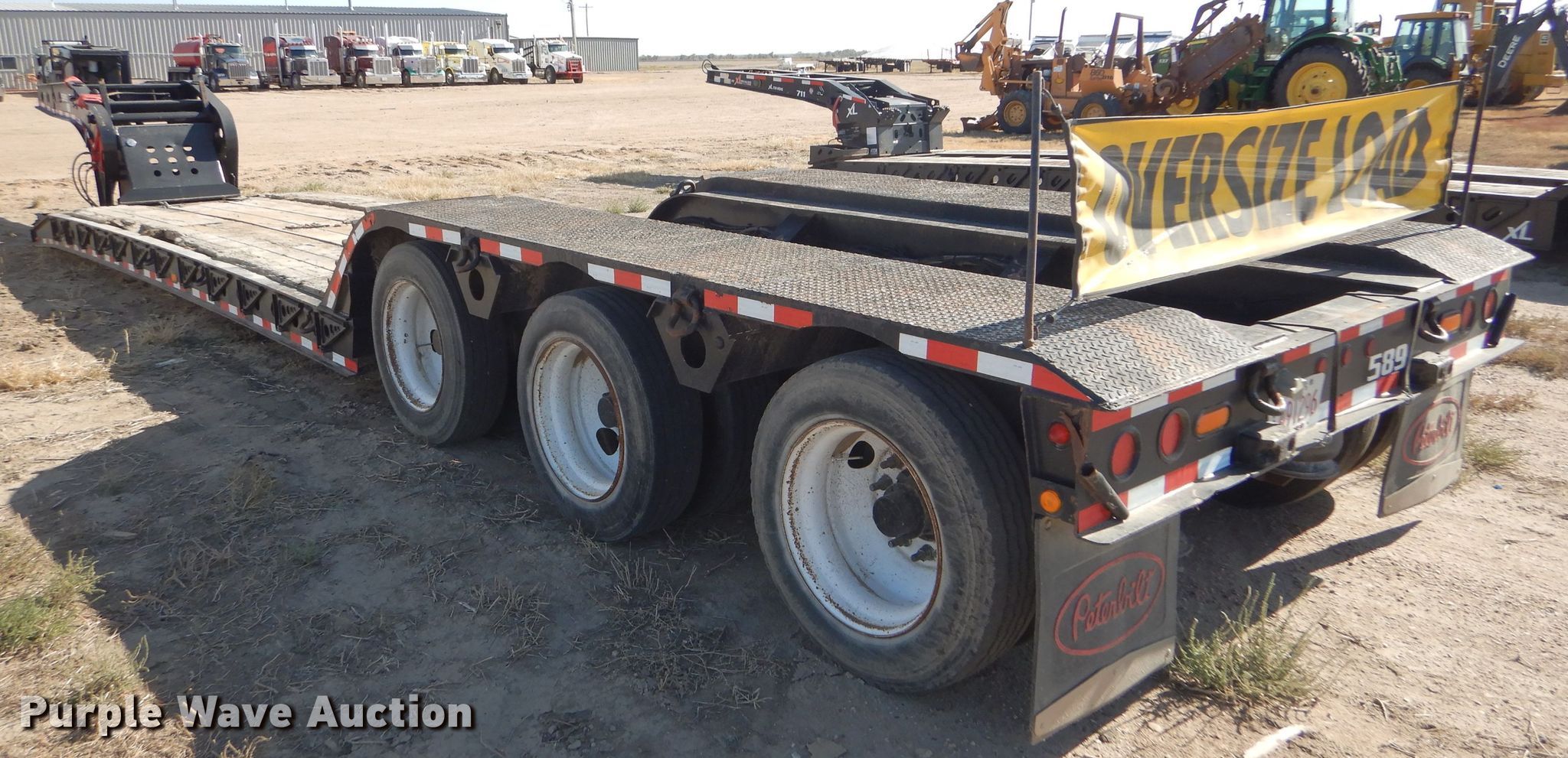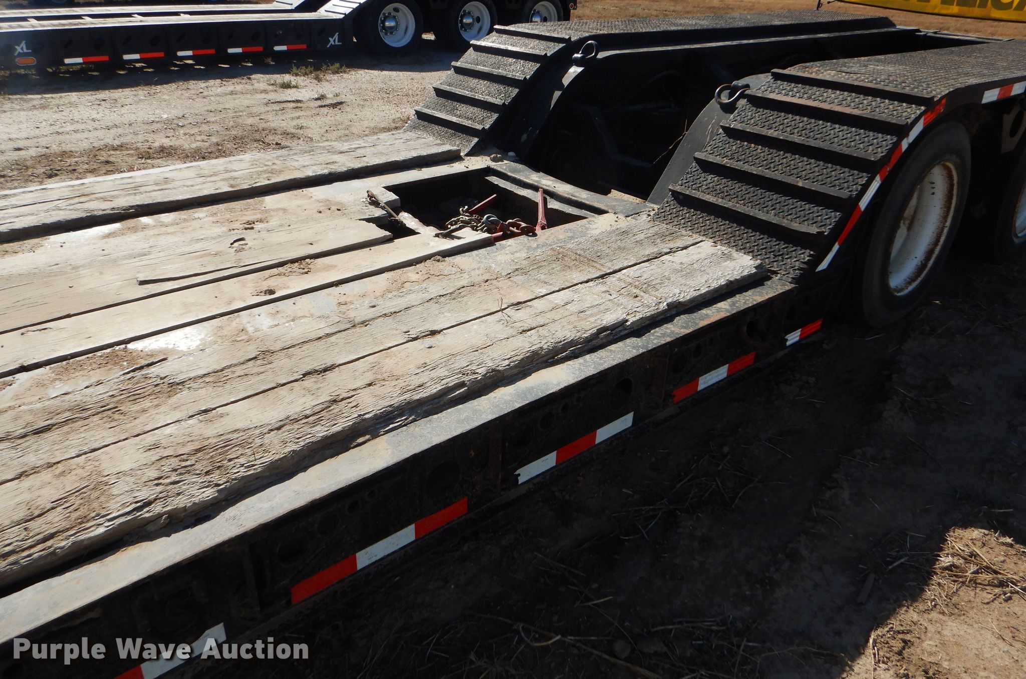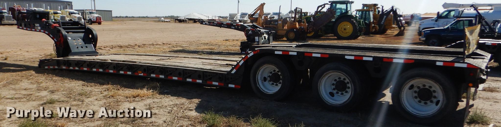 Purple Wave is selling a used Equip. Trailer in Kansas. This item is a 2000 Fontaine HRGTT-7-50NGBAW lowboy equipment trailer with the following: 50'L x 102"W overall, 22'L steel and wood main deck, 11'L rear deck, 15"L ramps, 12"W swing-out outriggers, 50 ton capacity, Detachable neck, Self contained hydraulics, Honda gas engine, Air suspension, Air brakes, Triple axle, Steel wheels, 255/70R22.5 tires, GVWR 118,686 lbs, Unit# 589