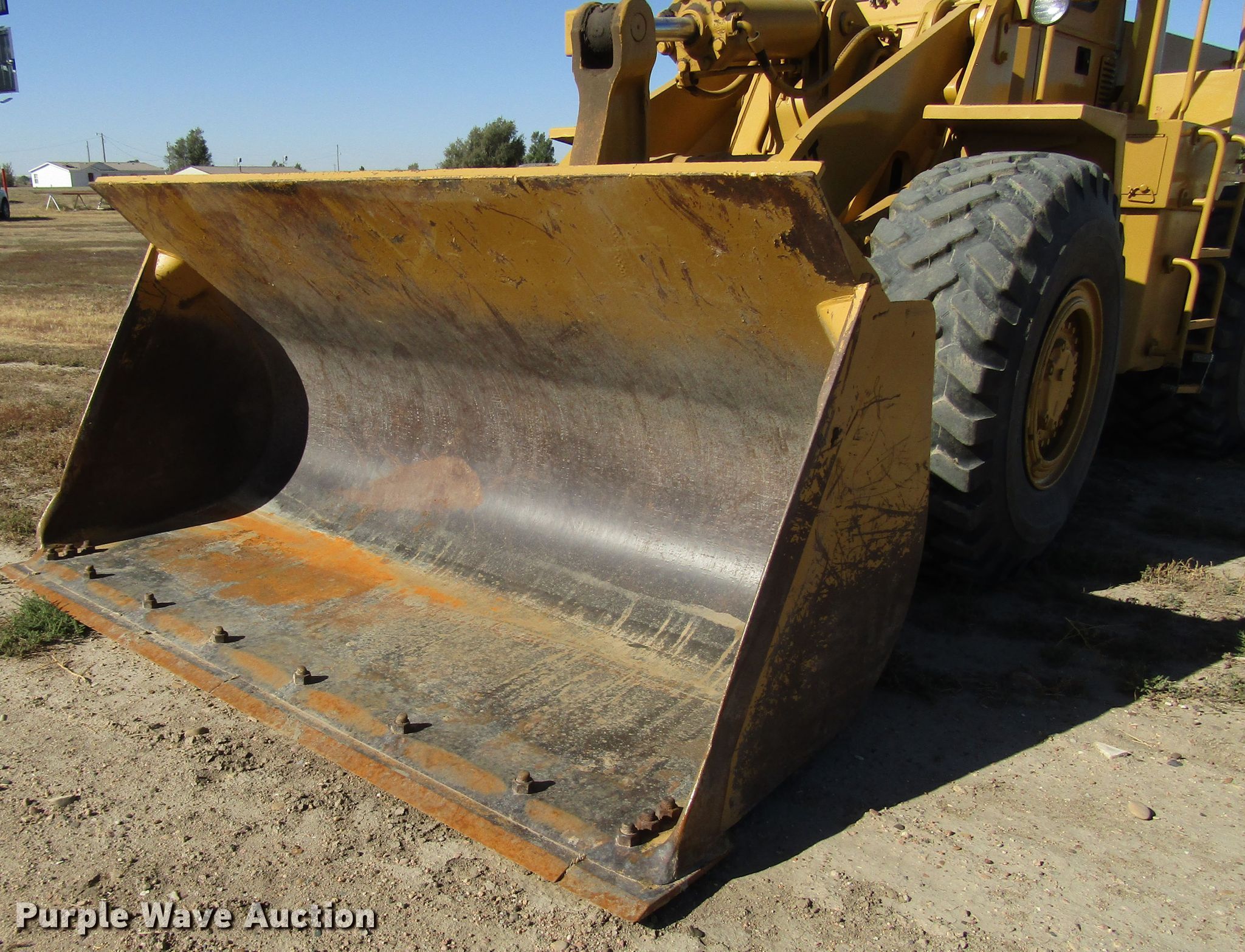 Purple Wave is selling a used Wheel Loader in Kansas. This item is a 1983 Caterpillar 966D wheel loader with the following: 8,802 hours on meter, Hours may vary, unit in use, Caterpillar six cylinder diesel engine, Powershift transmission, 4F-4R gears, Enclosed cab, AC and heat, Two-lever bucket controls, 120"W general purpose bucket, Bolt-on cutting edge, 23.5R25 tires, Serial 99Y02436, Unit# 436
