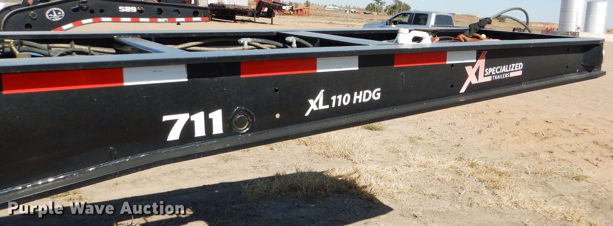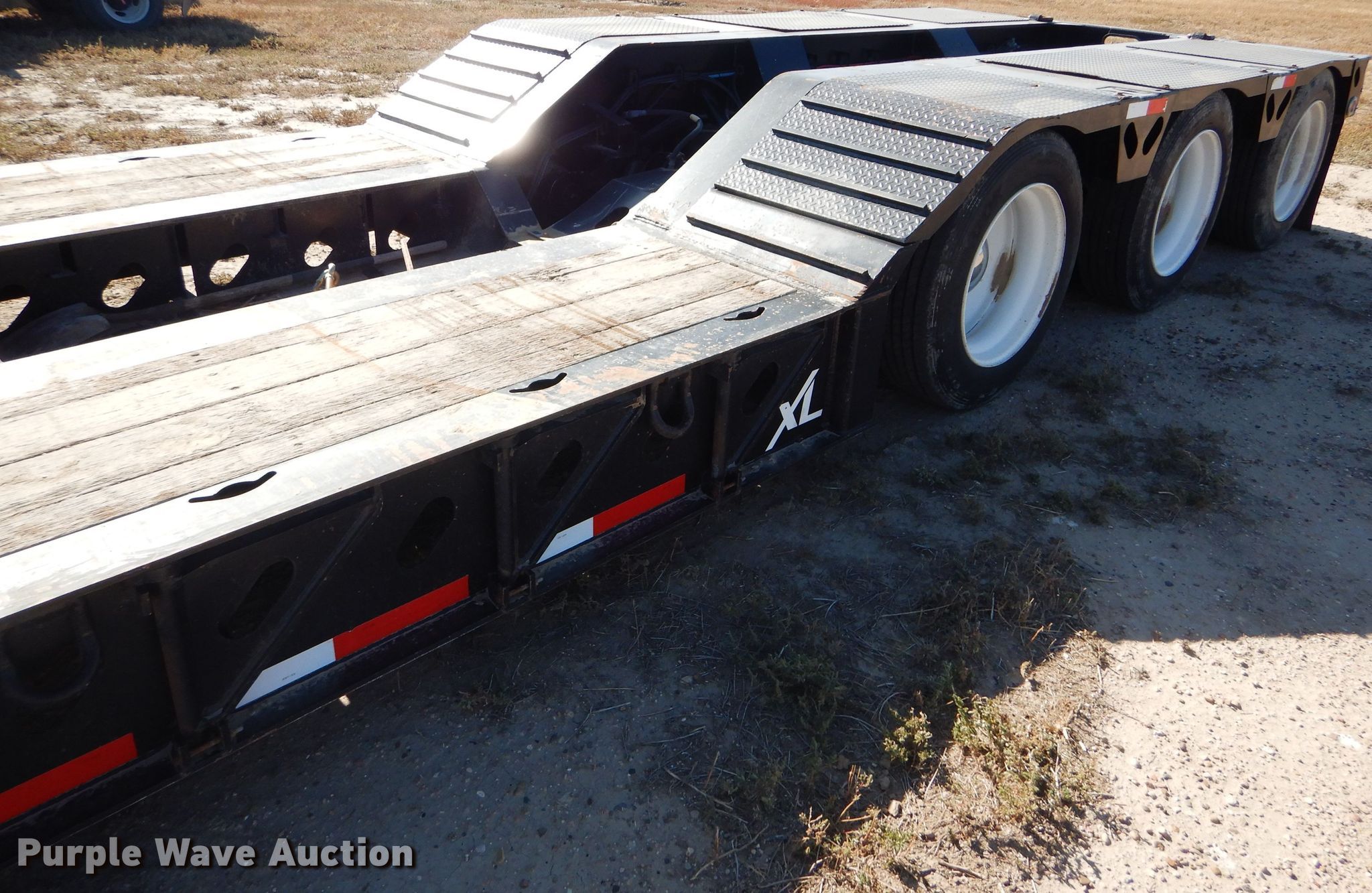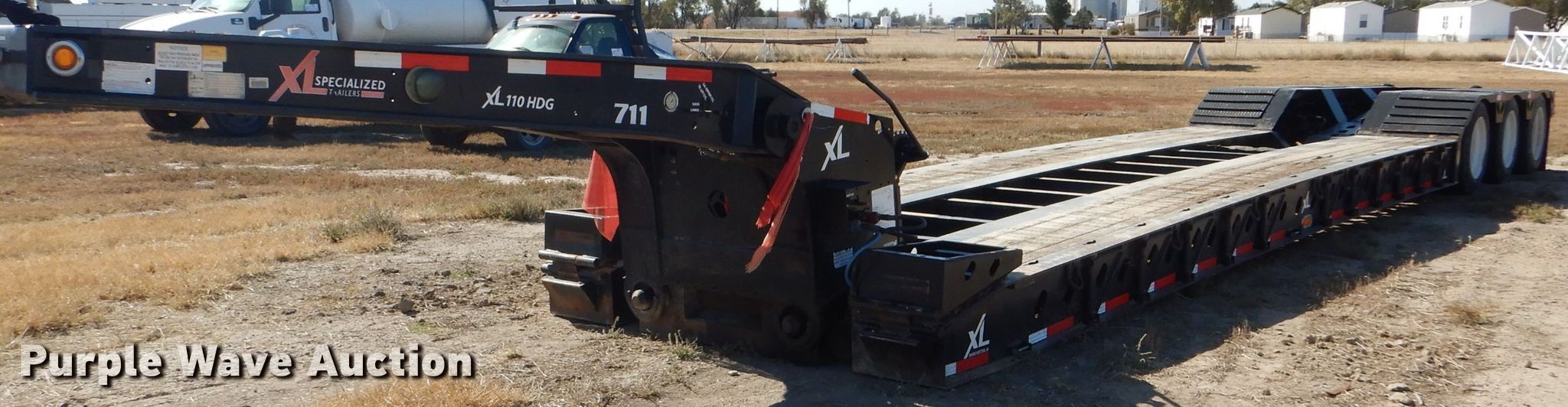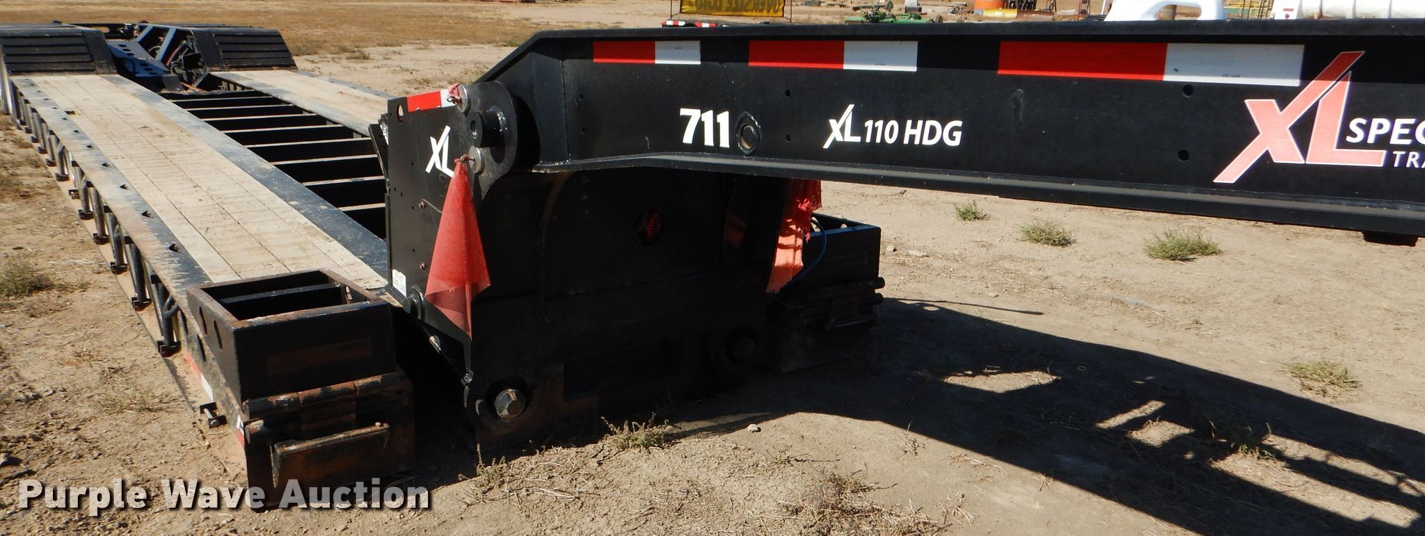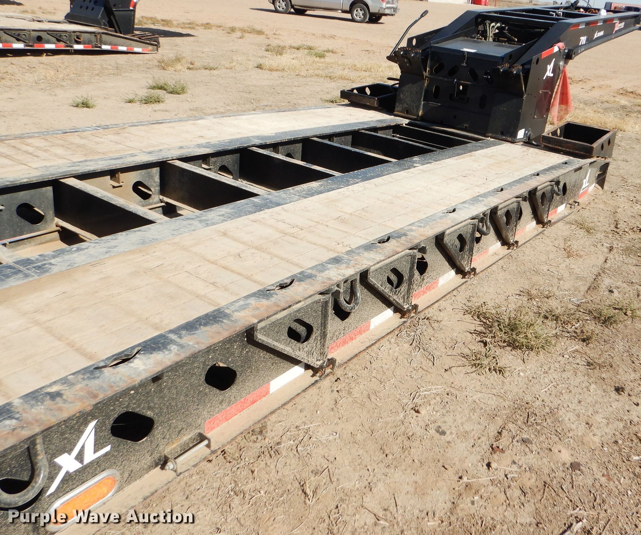 Purple Wave is selling a used Equip. Trailer in Kansas. This item is a 2016 XL Specialized XL110HDG lowboy equipment trailer with the following: 53'L x 102"W overall, 25'L steel and wood main deck, 12'L rear deck, 2'L ramps, 12"W swing-out outriggers, 55 ton capacity, 100,000 lbs concentrated load rating, Detachable neck, Self-contained hydraulics, Air suspension, Air brakes, Triple axle, Steel wheels, 255/70R22.5 tires, GVWR 131,420 lbs, GAWR 20,280 lbs, Unit# 711