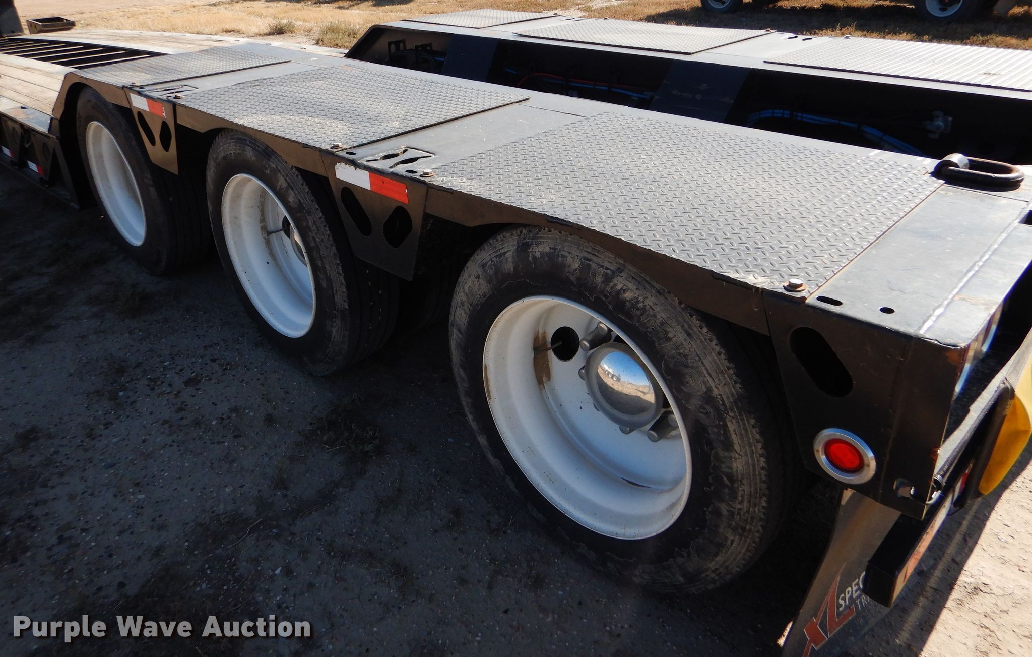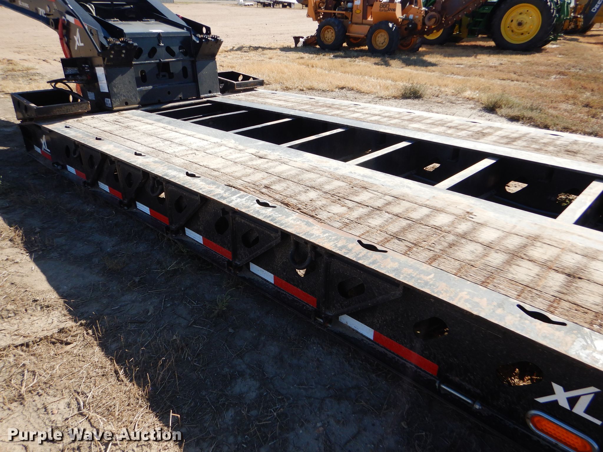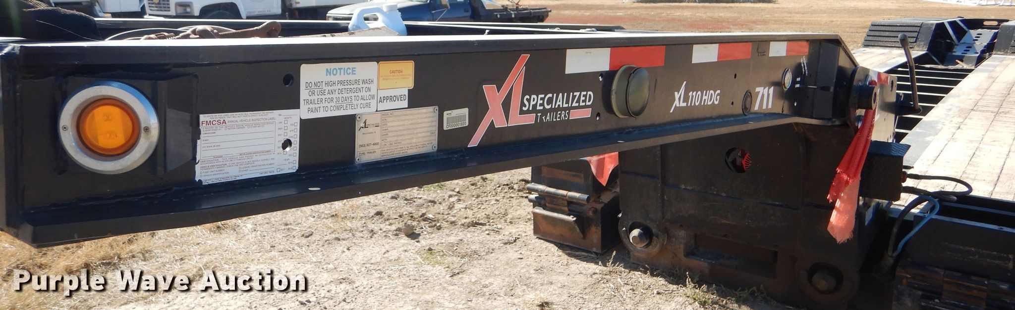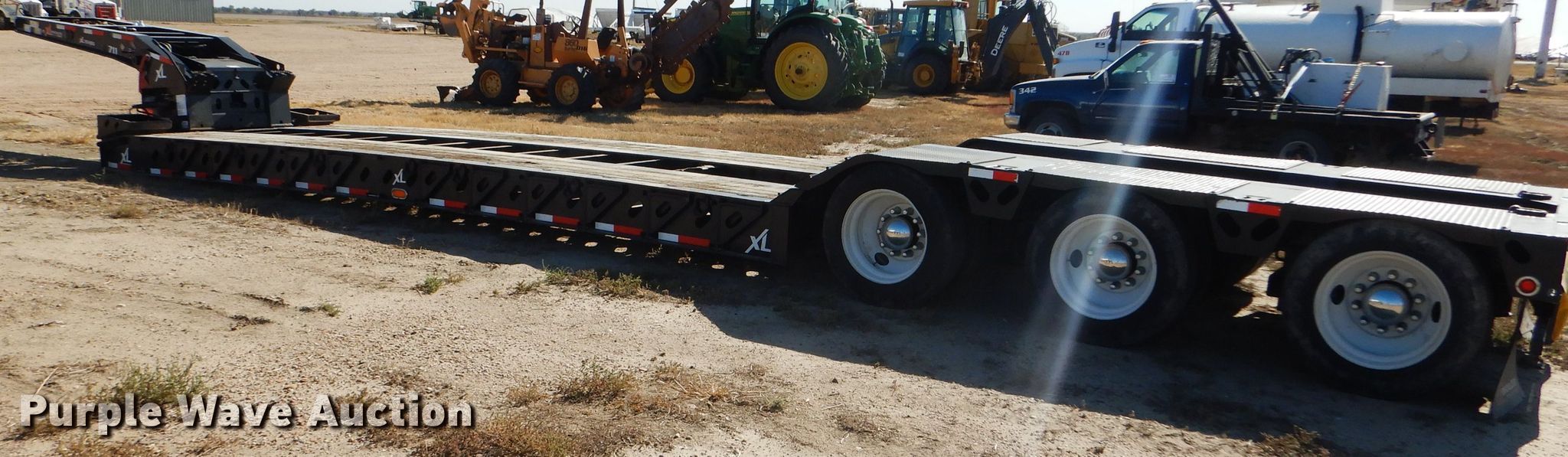 Purple Wave is selling a used Equip. Trailer in Kansas. This item is a 2016 XL Specialized XL110HDG lowboy equipment trailer with the following: 53'L x 102"W overall, 25'L steel and wood main deck, 12'L rear deck, 2'L ramps, 12"W swing-out outriggers, 55 ton capacity, 100,000 lbs concentrated load rating, Detachable neck, Self-contained hydraulics, Air suspension, Air brakes, Triple axle, Steel wheels, 255/70R22.5 tires, GVWR 131,420 lbs, GAWR 20,280 lbs, Unit# 711