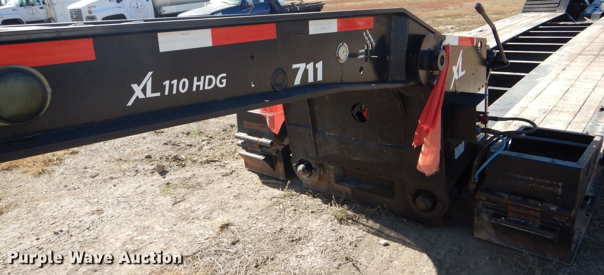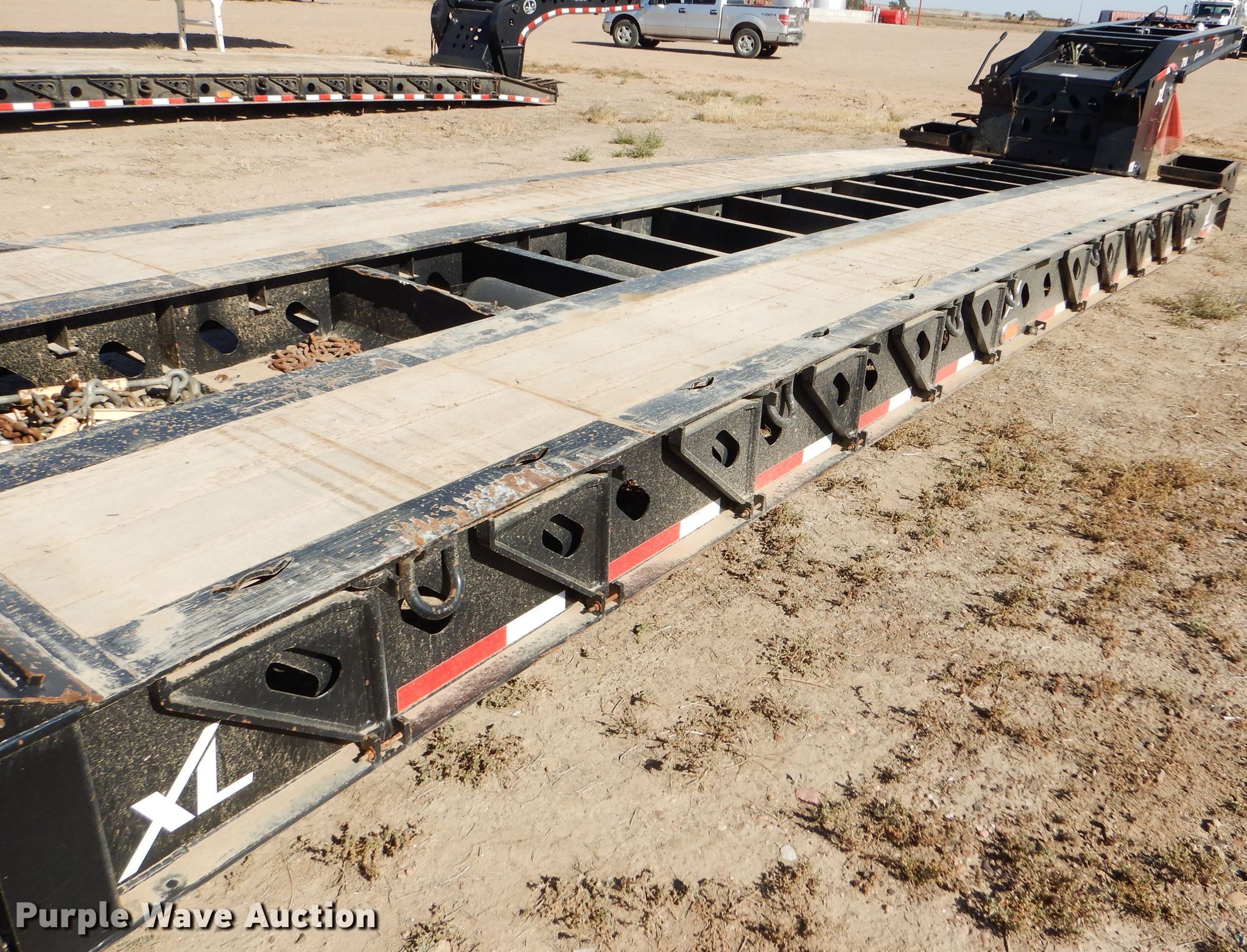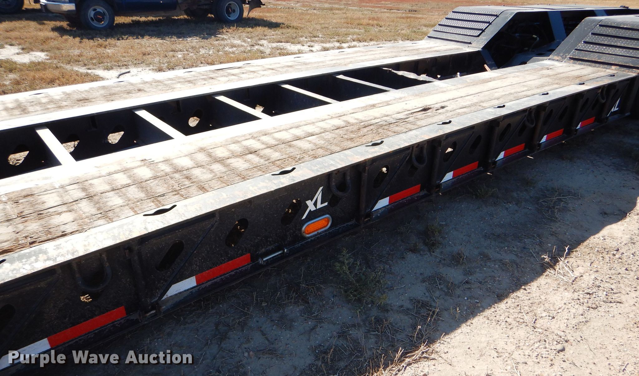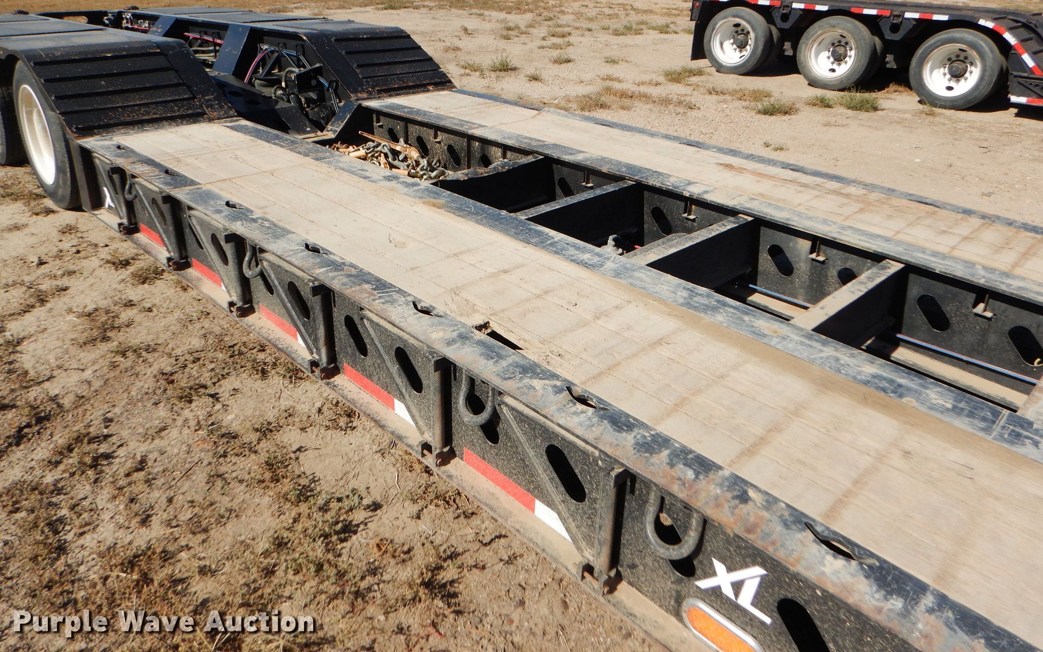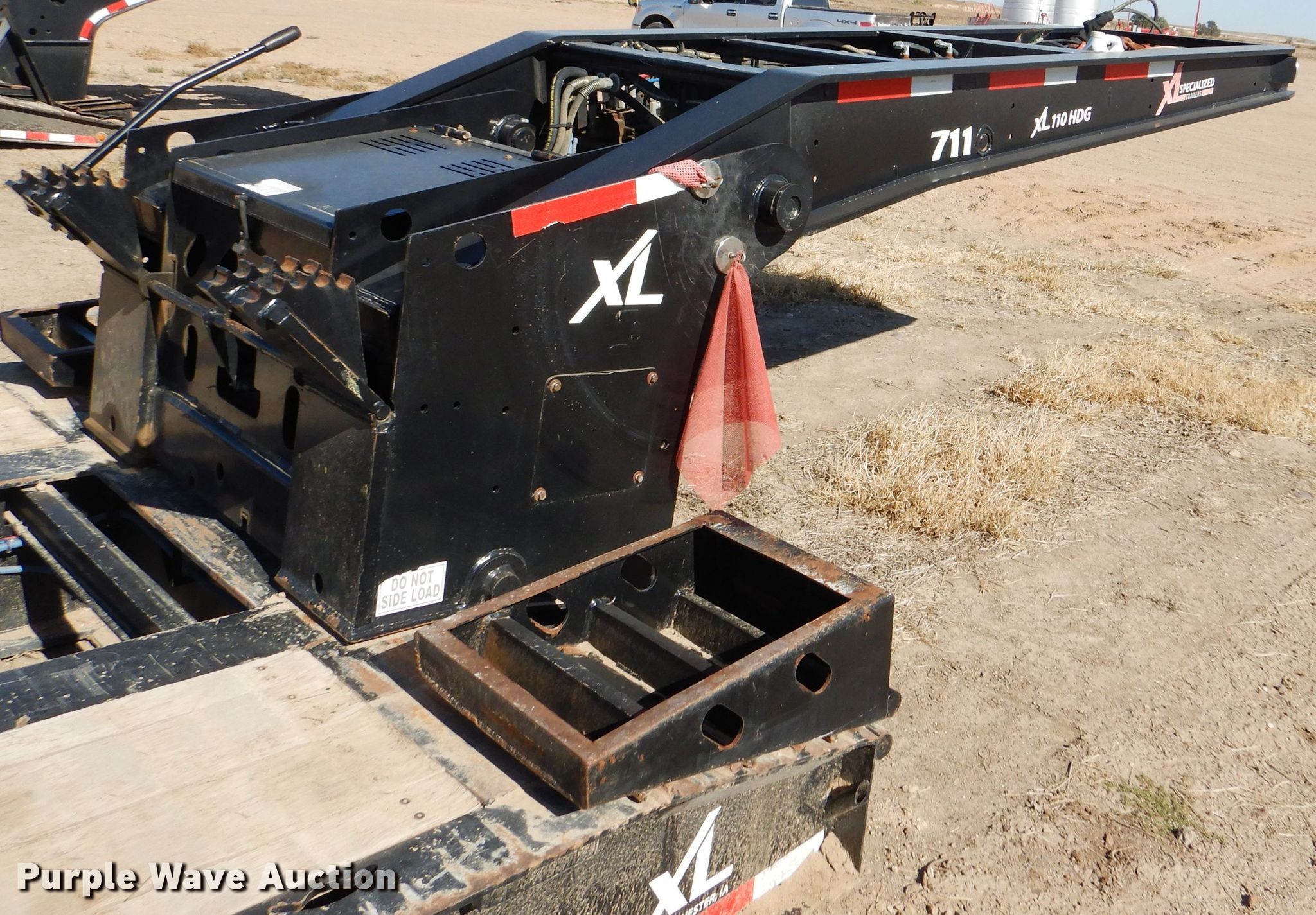 Purple Wave is selling a used Equip. Trailer in Kansas. This item is a 2016 XL Specialized XL110HDG lowboy equipment trailer with the following: 53'L x 102"W overall, 25'L steel and wood main deck, 12'L rear deck, 2'L ramps, 12"W swing-out outriggers, 55 ton capacity, 100,000 lbs concentrated load rating, Detachable neck, Self-contained hydraulics, Air suspension, Air brakes, Triple axle, Steel wheels, 255/70R22.5 tires, GVWR 131,420 lbs, GAWR 20,280 lbs, Unit# 711