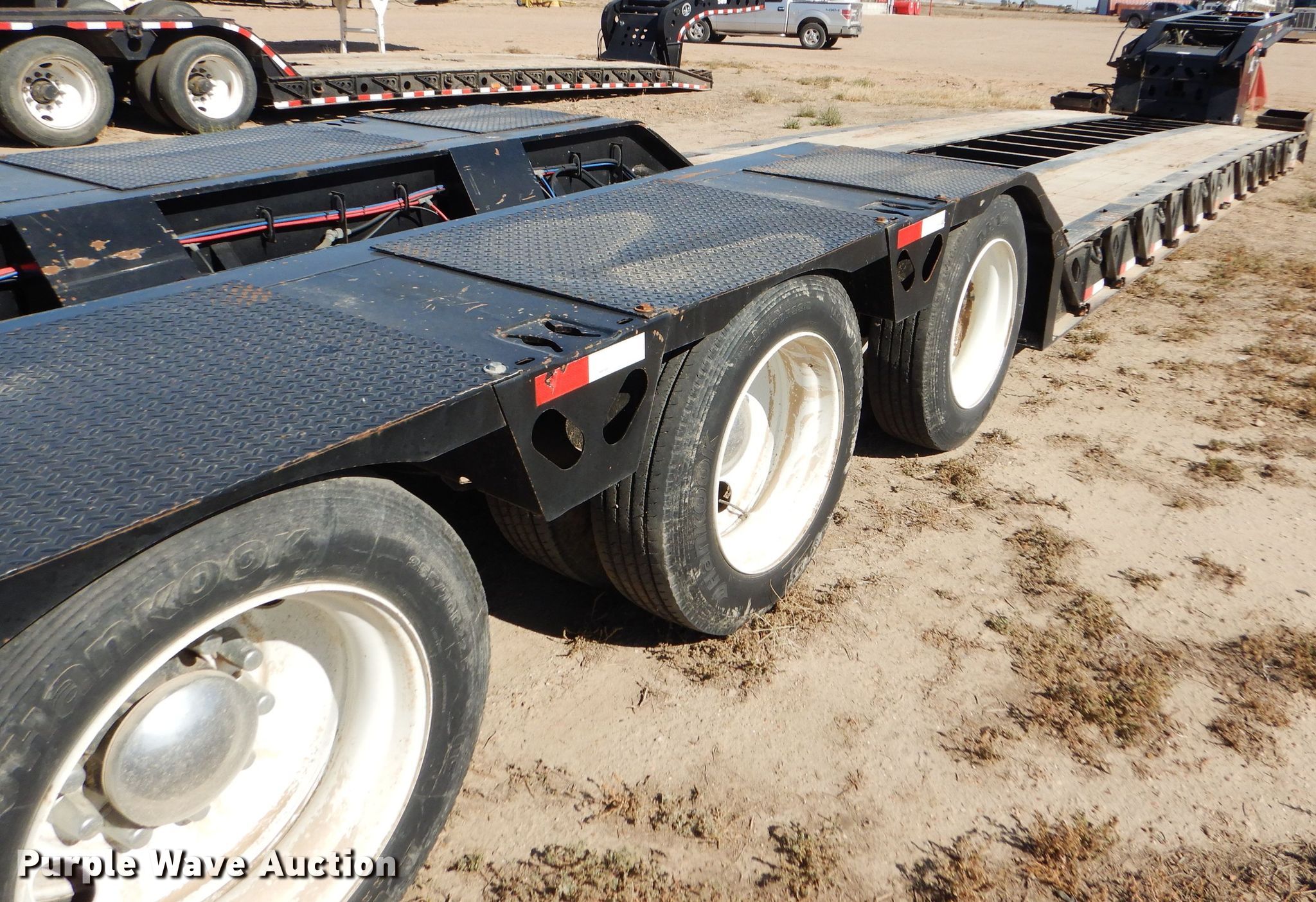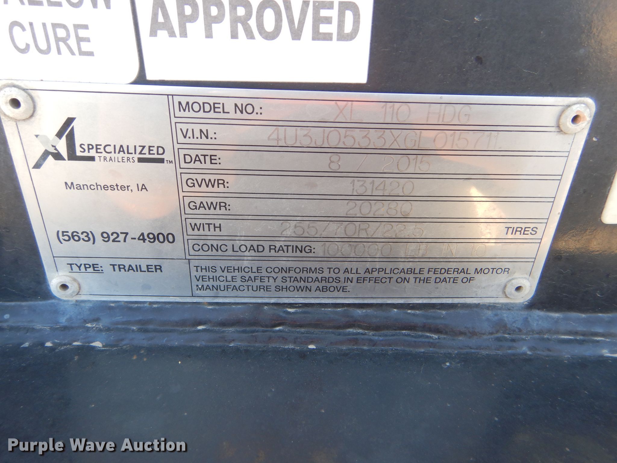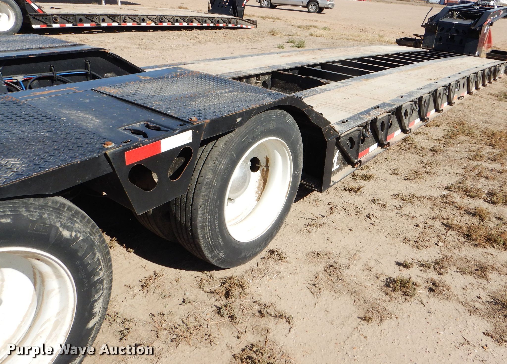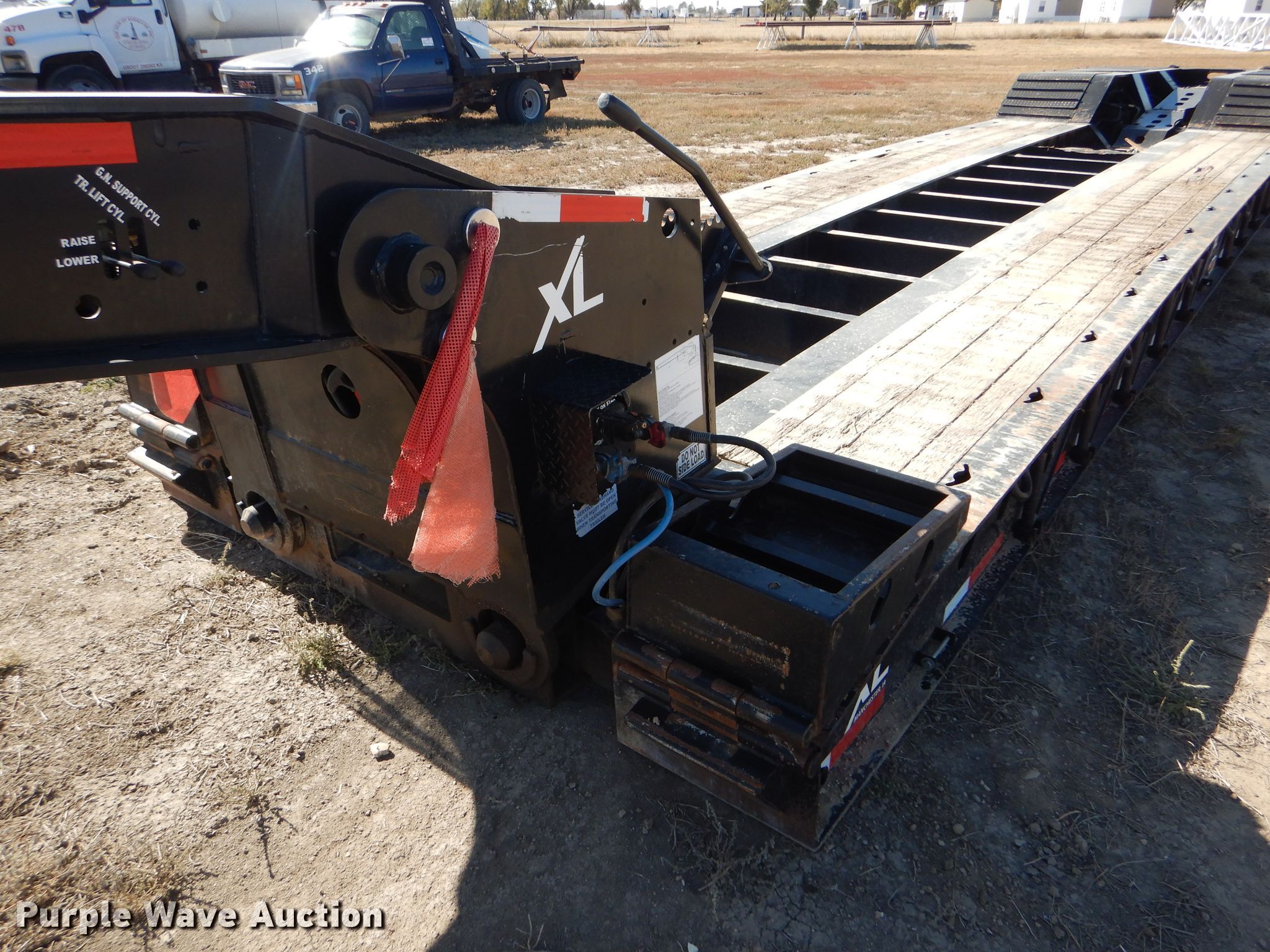 Purple Wave is selling a used Equip. Trailer in Kansas. This item is a 2016 XL Specialized XL110HDG lowboy equipment trailer with the following: 53'L x 102"W overall, 25'L steel and wood main deck, 12'L rear deck, 2'L ramps, 12"W swing-out outriggers, 55 ton capacity, 100,000 lbs concentrated load rating, Detachable neck, Self-contained hydraulics, Air suspension, Air brakes, Triple axle, Steel wheels, 255/70R22.5 tires, GVWR 131,420 lbs, GAWR 20,280 lbs, Unit# 711