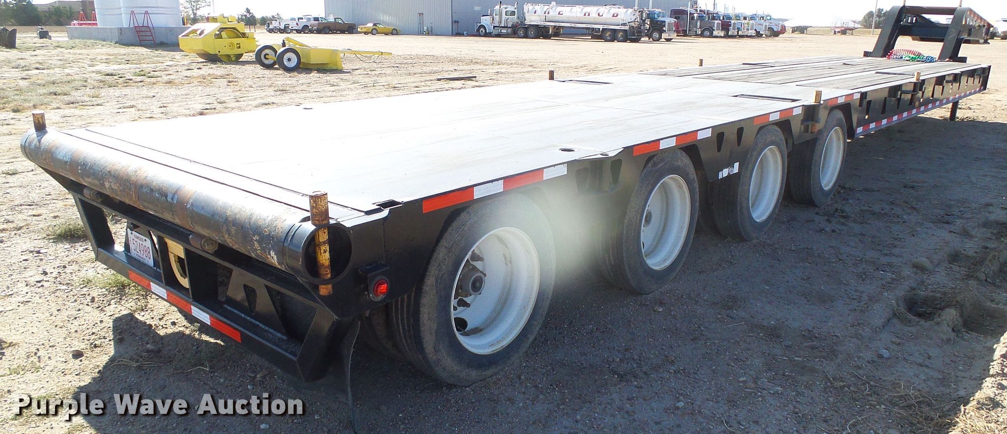 Purple Wave is selling a used Equip. Trailer in Kansas. This item is a 2013 Atoka OFLB604 equipment trailer with the following: 60'L x 114"W overall, 46'L x 108"W deck, 42" floor height, Steel and wood deck, 8'5/8" rolling tailboard, (4) air activated deck rollers, 60 ton capacity, Fifth wheel plate for inverted attachment, Dual leg landing gear, Air suspension, Air brakes, Quad axle, 60" axle spacing, Rear lift axle, Steel wheels, 255/70R22.5 tires, GVWR 120,000 lbs, GAWR 22,500 lbs