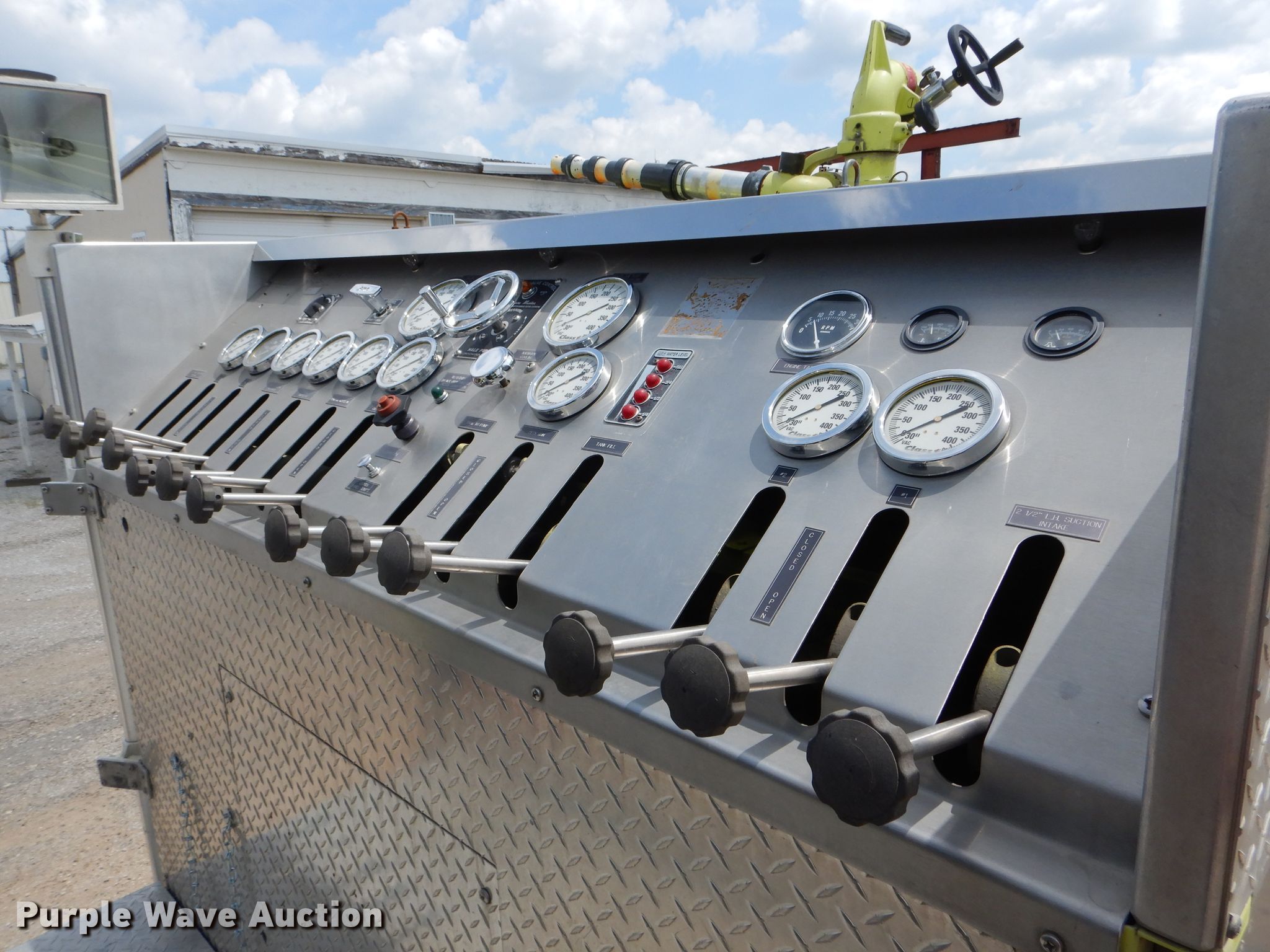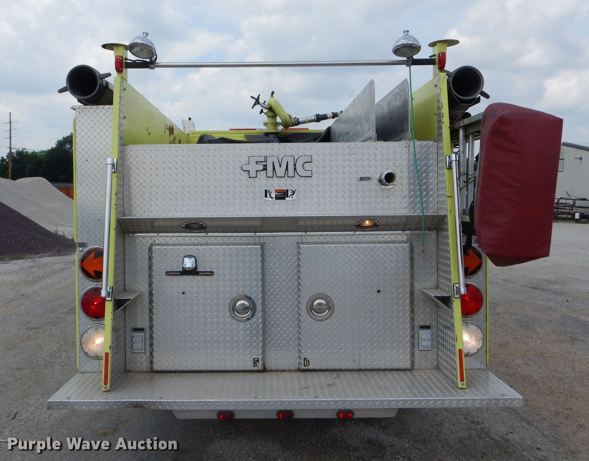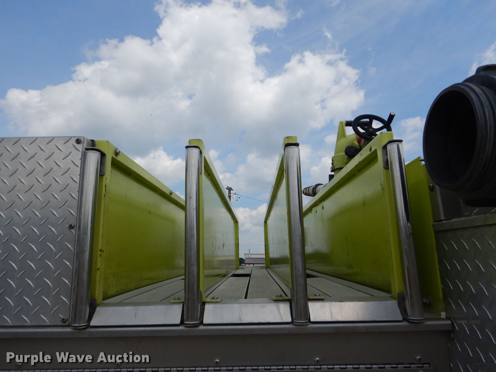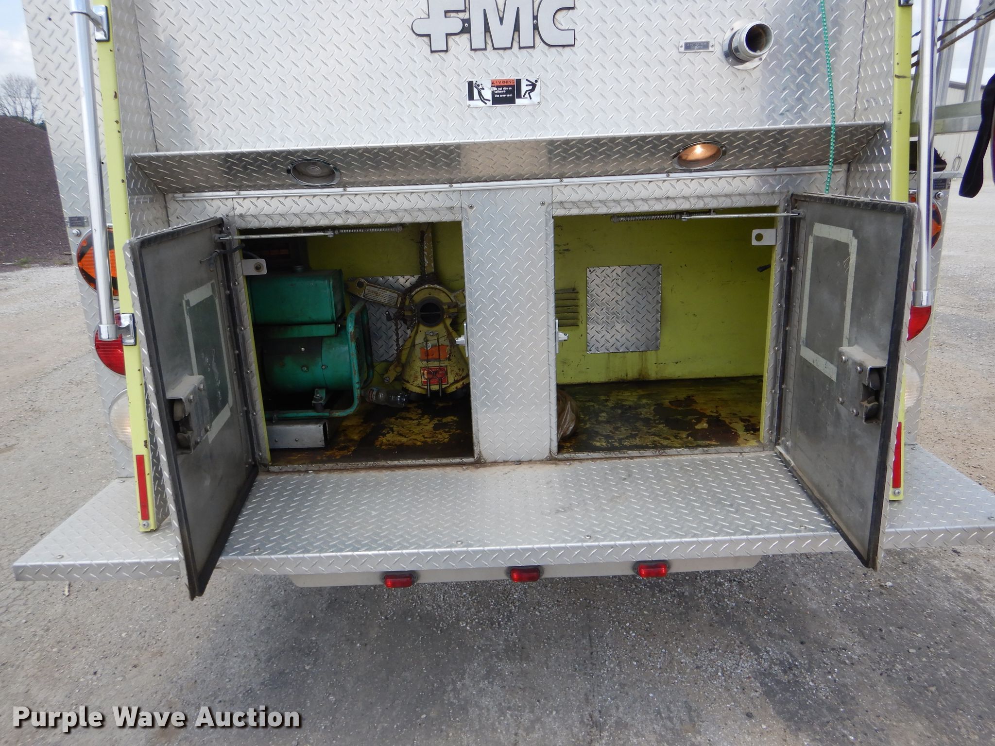 Purple Wave is selling a used Fire Truck or Emergency Vehicle in Missouri. This item is a 1988 Spartan GA26-2142 fire truck with the following: 27,523 miles on odometer, 4,052 hours on meter, Cummins L10 six cylinder diesel engine, Automatic transmission, Single axle, Heat, Elevated deck gun, 1,250 gpm pump, Ground ladder, Onan 2.5AJ-1E/4114K generator, Gas engine, 2,500 watts, Spring suspension, Air brakes, 156" wheelbase, 315/80R22.5 front tires, 11R22.5 rear tires, GVWR 35,220 lbs