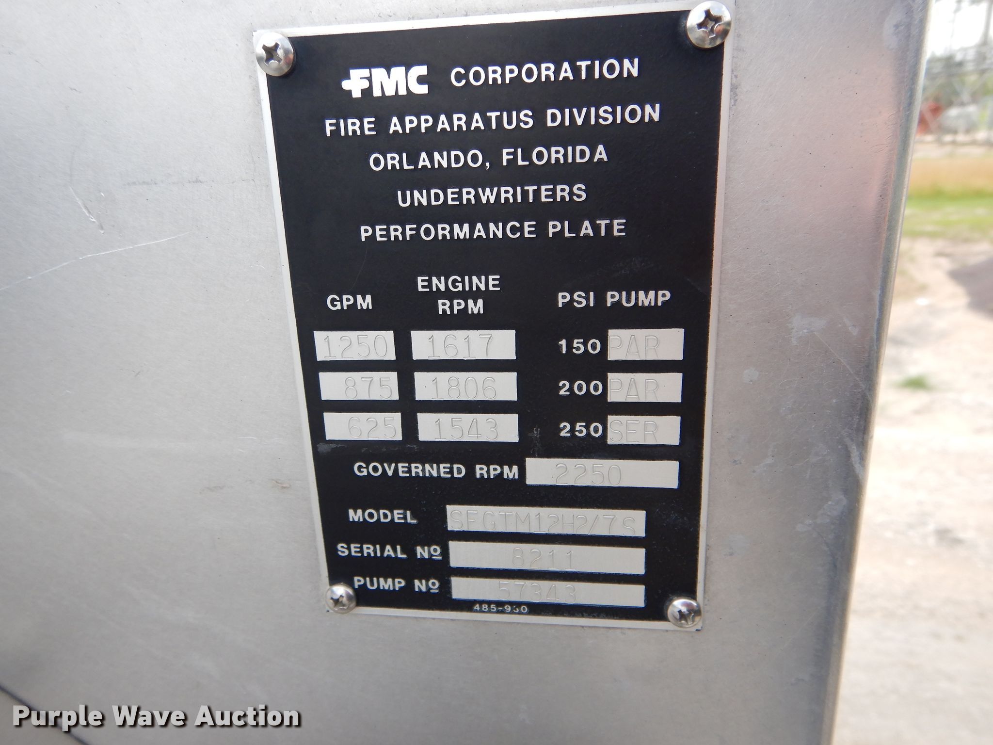 - 1,250 gpm pump
