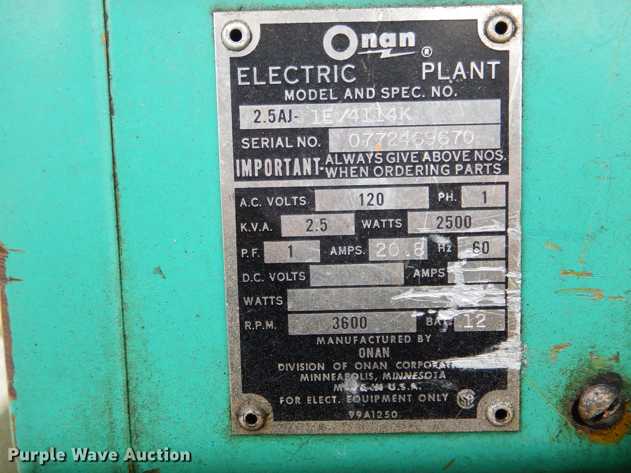 - Onan 2.5AJ-1E/4114K generator