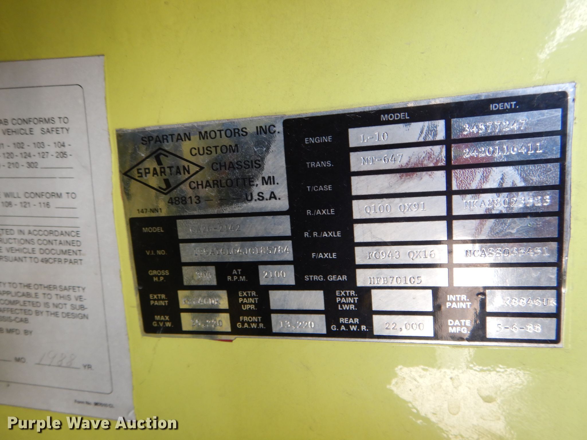 1988 Spartan GA26-2142 fire truck | SOLD! December 3 Government Auction