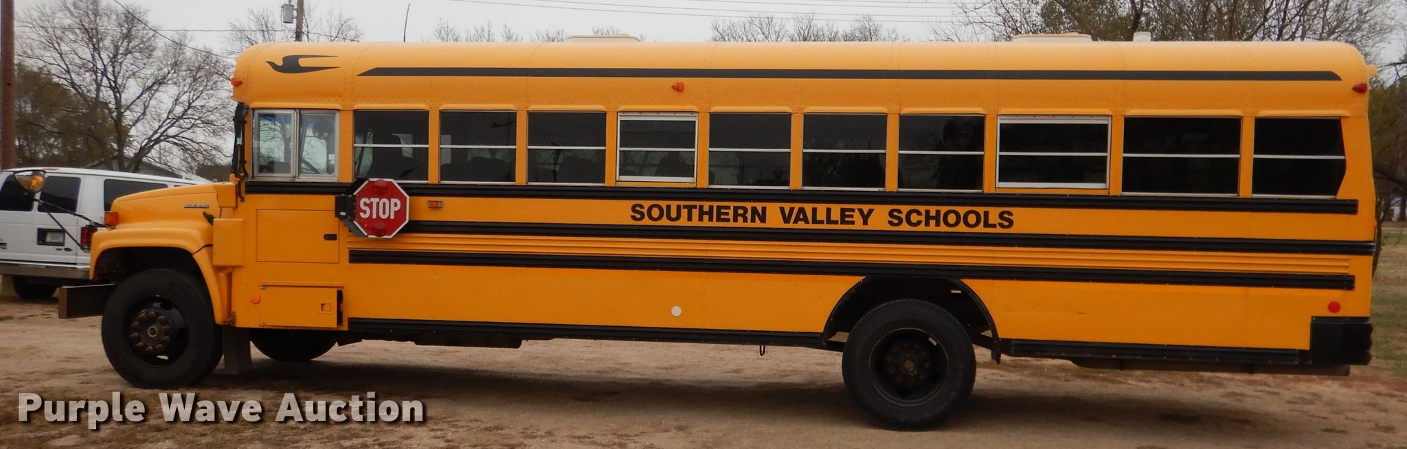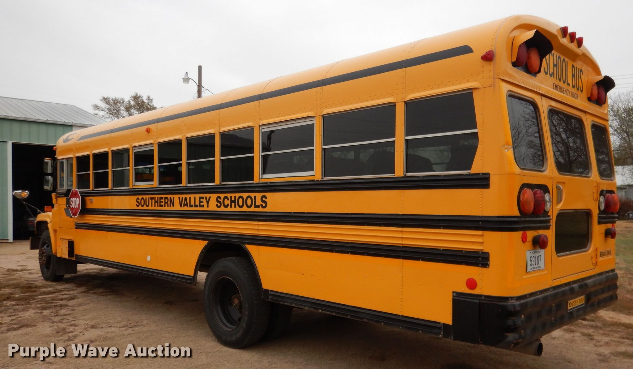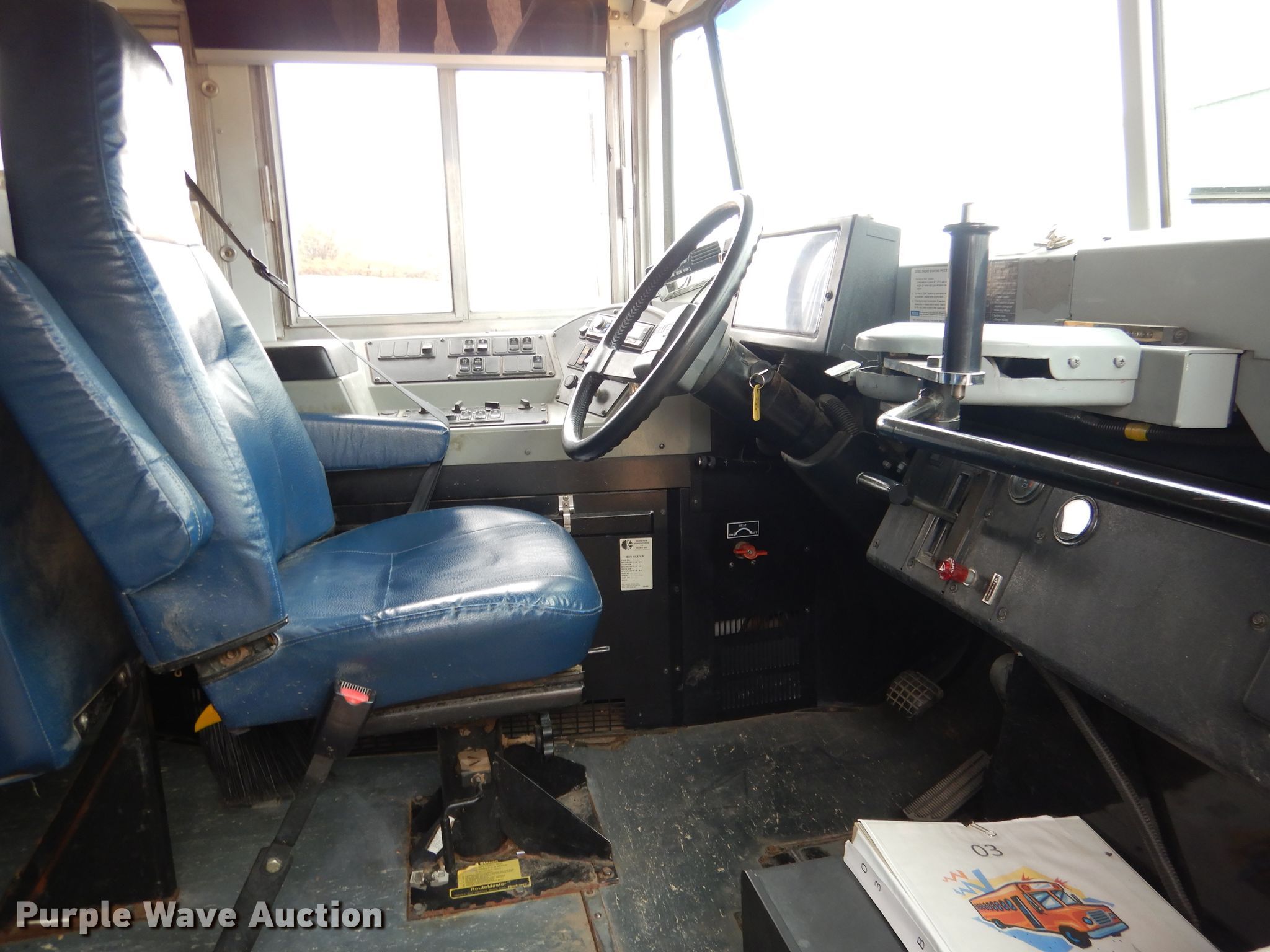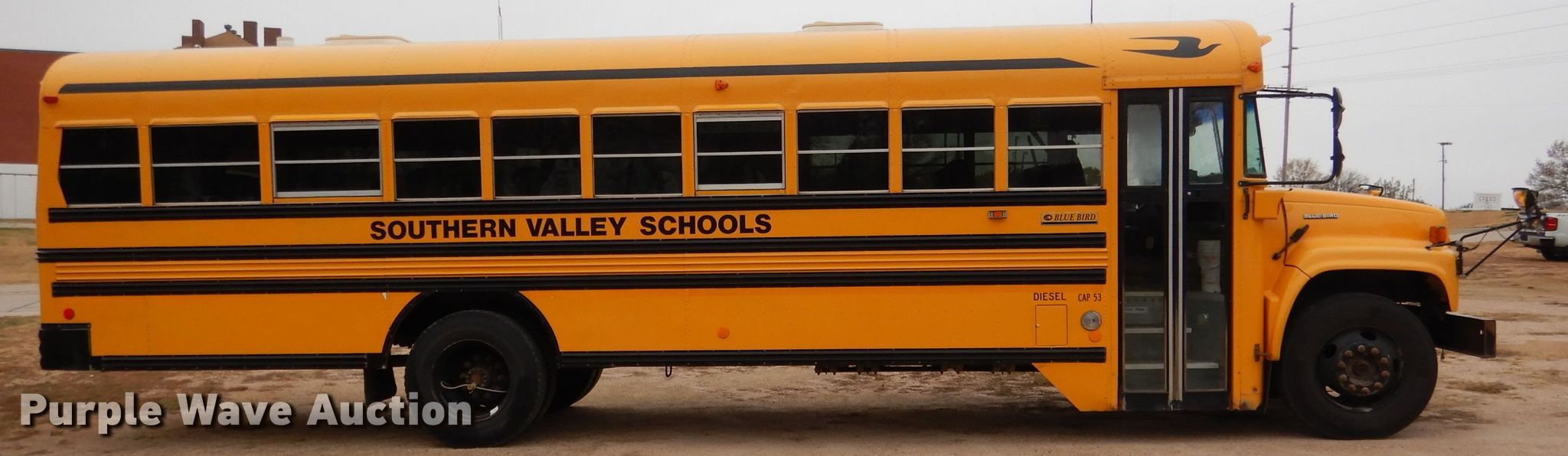 Purple Wave is selling a used Bus in Nebraska. This item is a 2002 GMC Blue Bird CV200G school bus with the following: 156,608 miles on odometer, 4,638 hours on meter, Caterpillar 3126 7.2L L6 diesel engine, Serial CKM37391, Allison automatic transmission, Single axle, Heat, Heated mirrors, Auxiliary controls, 52 passenger capacity, (18) adult seats, Spring suspension, Hydraulic brakes, 240" wheelbase, Firestone 10R22.5 tires, GVWR 27,060 lbs, Heui pump leaks
