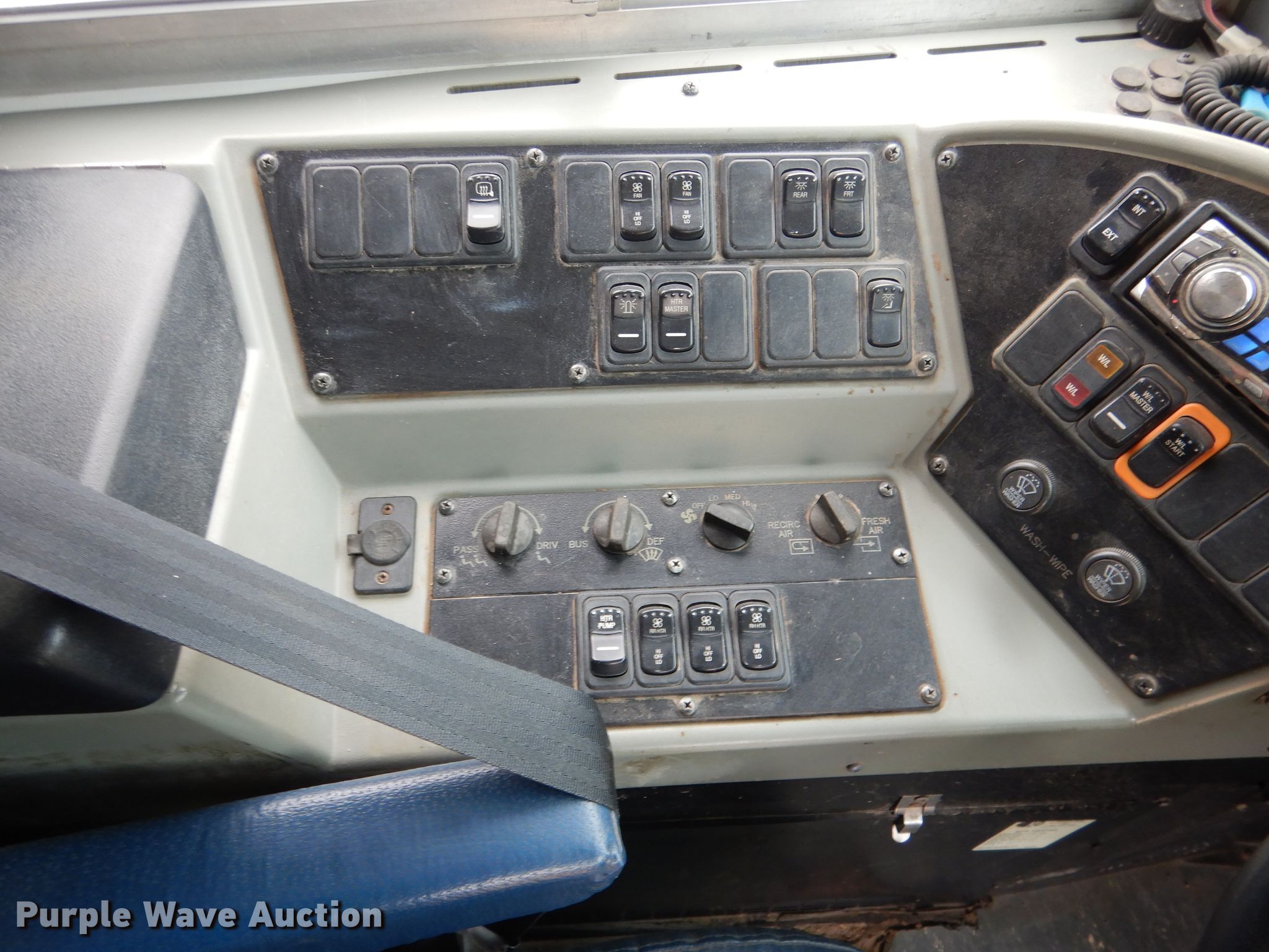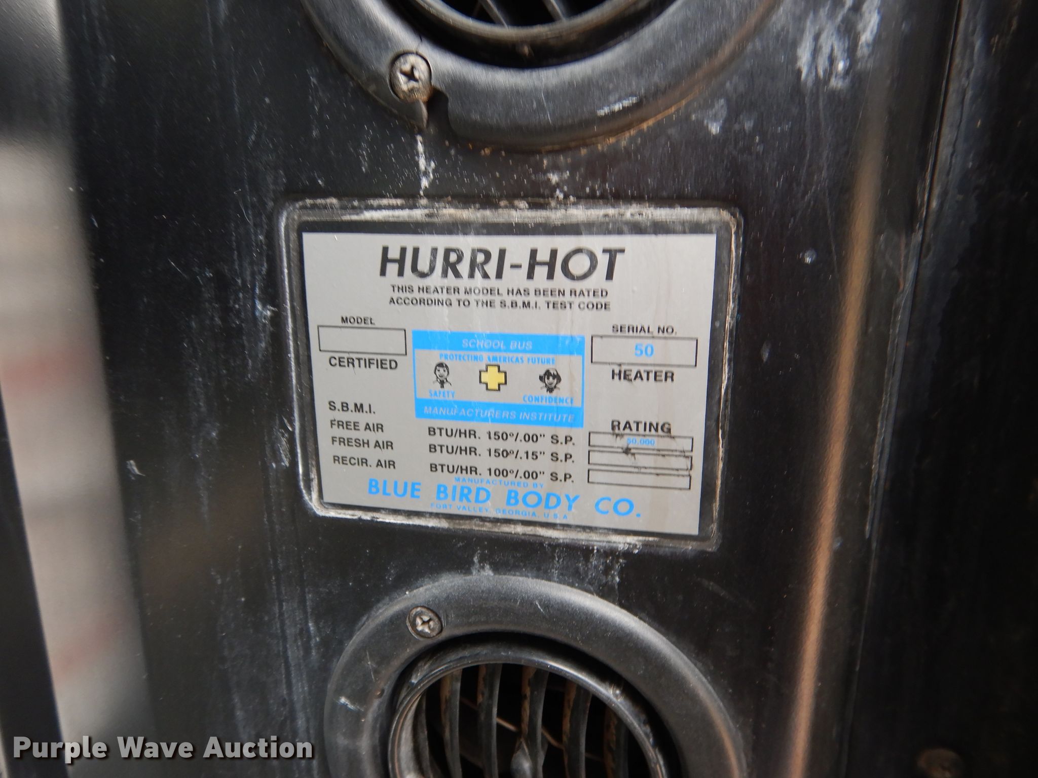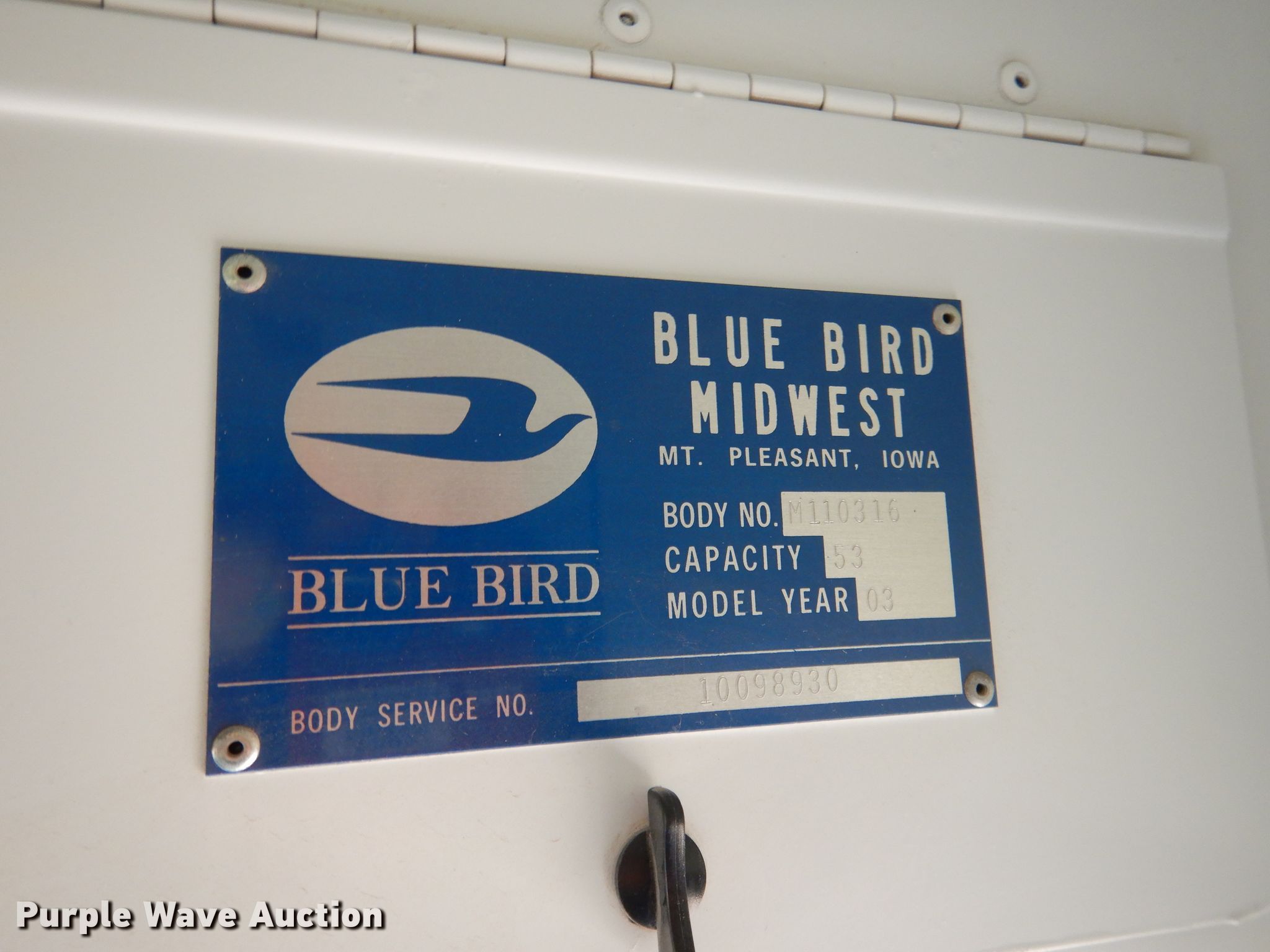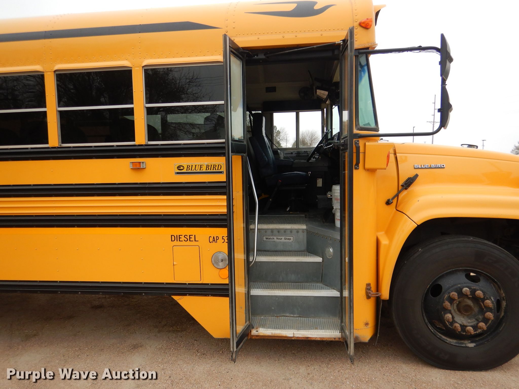 Purple Wave is selling a used Bus in Nebraska. This item is a 2002 GMC Blue Bird CV200G school bus with the following: 156,608 miles on odometer, 4,638 hours on meter, Caterpillar 3126 7.2L L6 diesel engine, Serial CKM37391, Allison automatic transmission, Single axle, Heat, Heated mirrors, Auxiliary controls, 52 passenger capacity, (18) adult seats, Spring suspension, Hydraulic brakes, 240" wheelbase, Firestone 10R22.5 tires, GVWR 27,060 lbs, Heui pump leaks