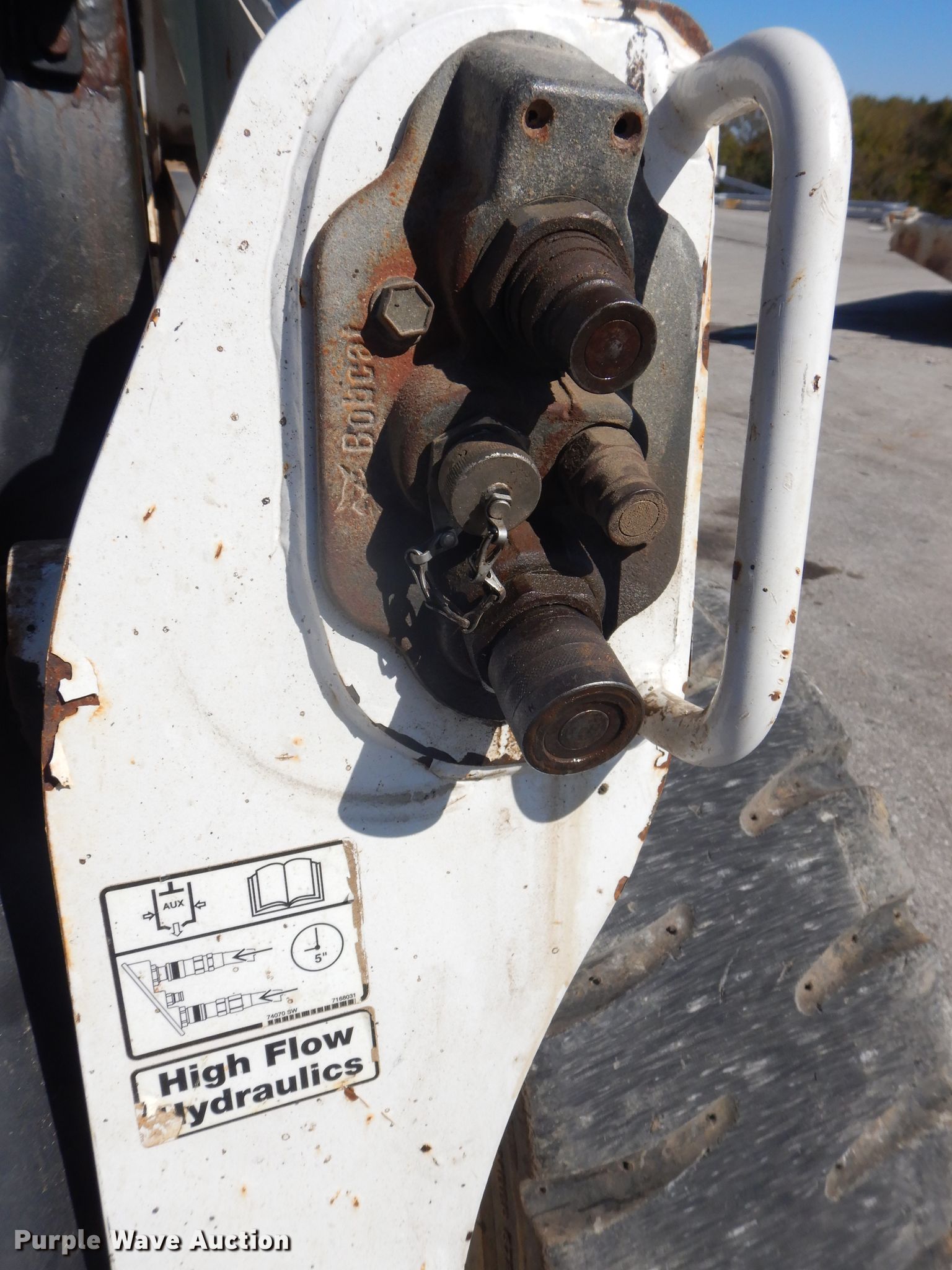 Purple Wave is selling a used Skid Steer Loader in Kansas. This item is a 2010 Bobcat S650 skid steer with the following: 2,439 hours on meter, Kubota V3307-DI-T-EU3 3.3L four cylinder diesel engine, 55 kW, Two speed hydrostatic transmission, Enclosed cab, AC and heat, Foot bucket controls, Pattern changer, Bobcat 73"W low profile bucket, Hydraulic quick coupler, Auxiliary hydraulics, 12-16.5 tires, Serial A3NV11793