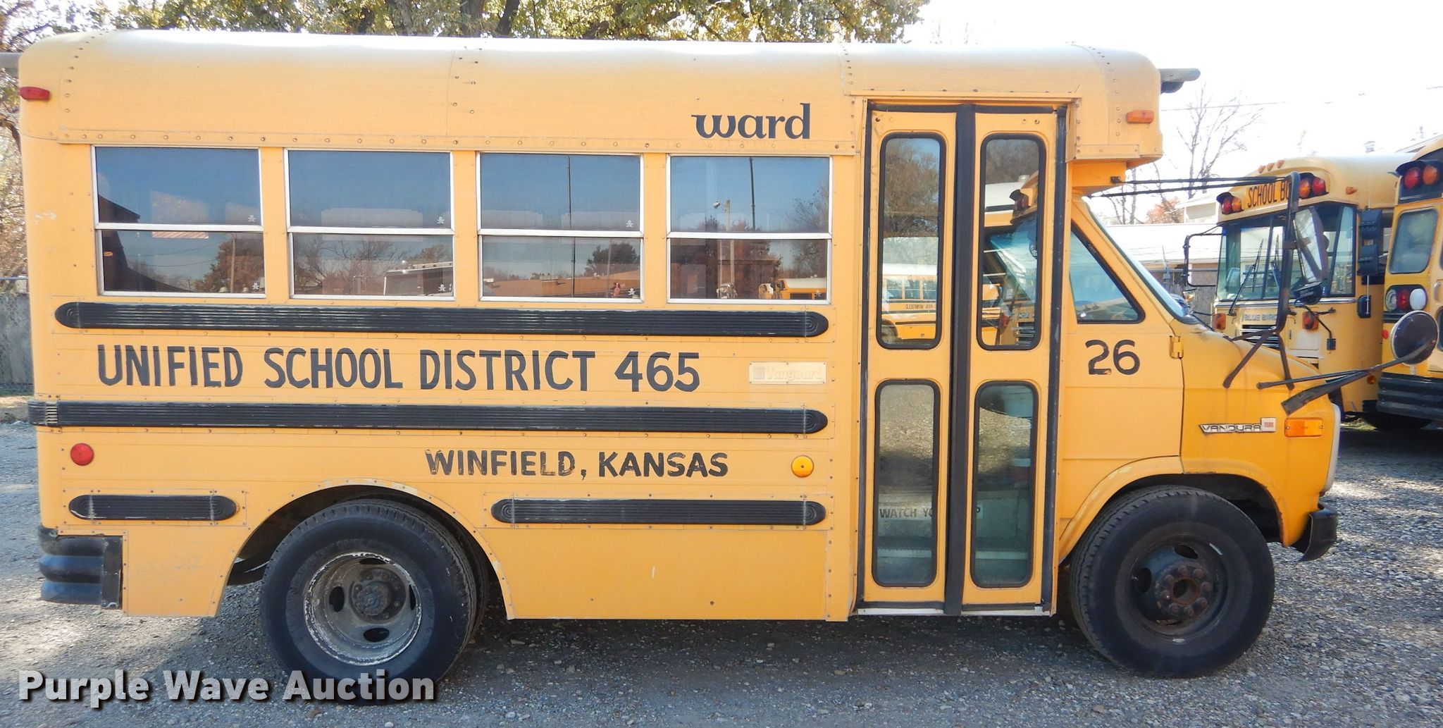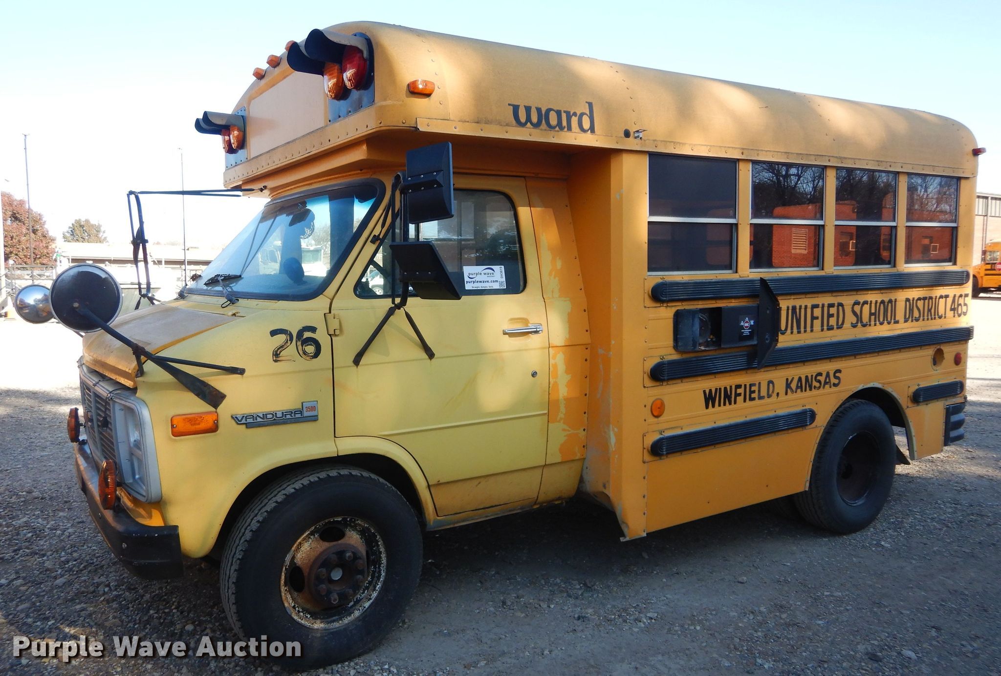 Purple Wave is selling a used Bus in Kansas. This item is a 1991 GMC Vandura school bus with the following: 155,640 miles on odometer, 6.2L V8 OHV 16V diesel engine, Automatic transmission, Single axle, AC and heat, Spring suspension, Hydraulic brakes, 235/85R16 tires, GVWR 10,000 lbs