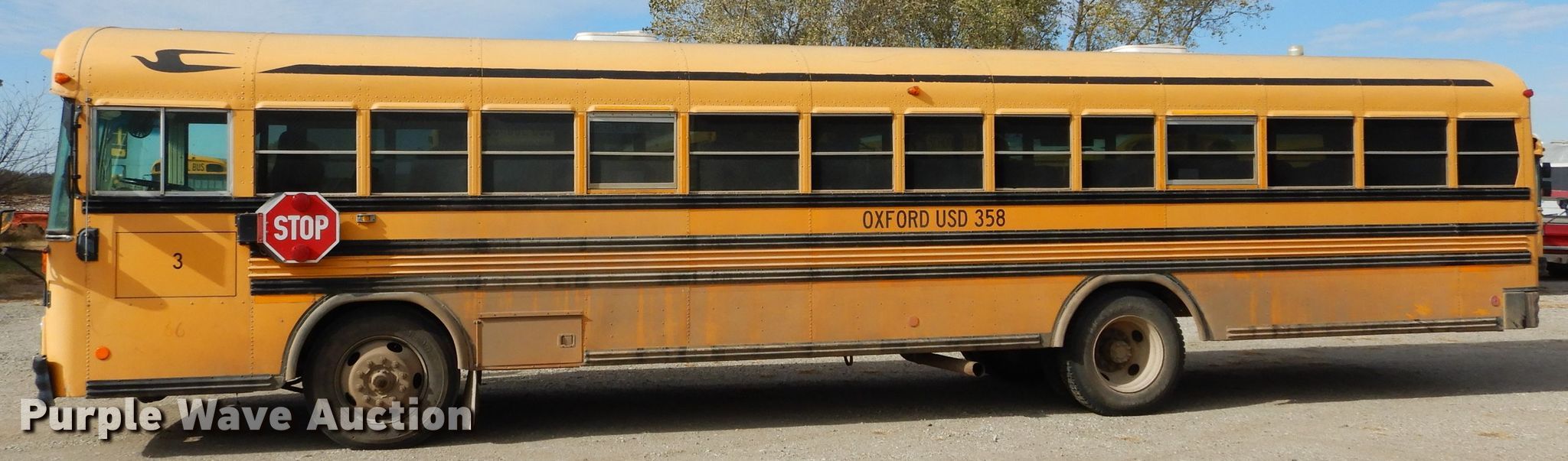 Purple Wave is selling a used Bus in Kansas. This item is a 1999 Blue Bird TC2000 school bus with the following: 166,976 miles on odometer, Cummins ISB 5.9L L6 diesel engine, Allison automatic transmission, Single axle, Heat, 77 passenger capacity, Spring suspension, Hydraulic brakes, 10R22.5 tires, GVWR 27,800 lbs